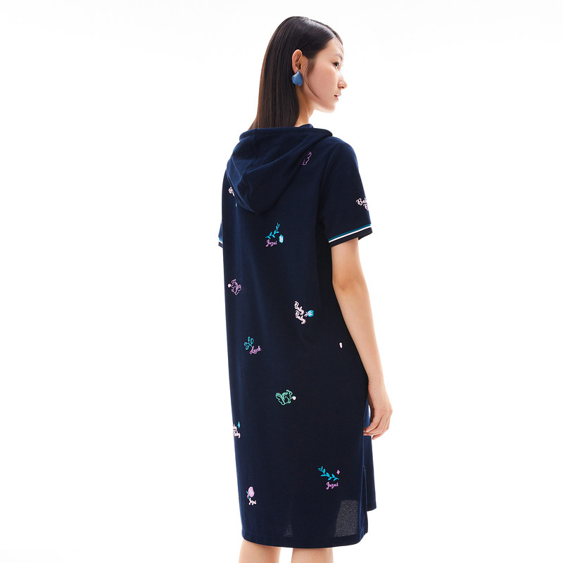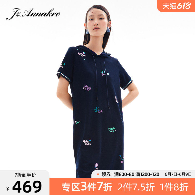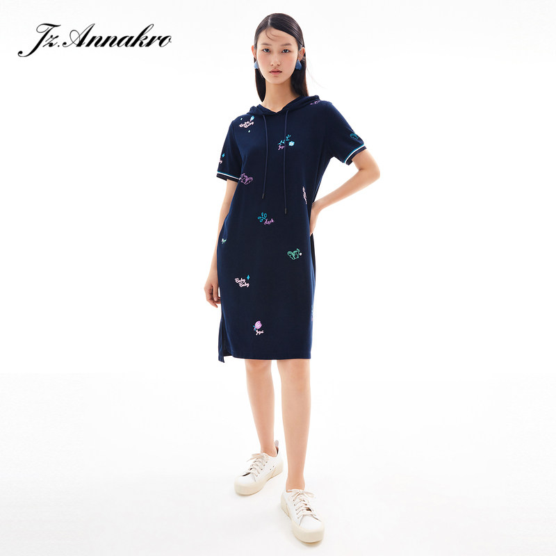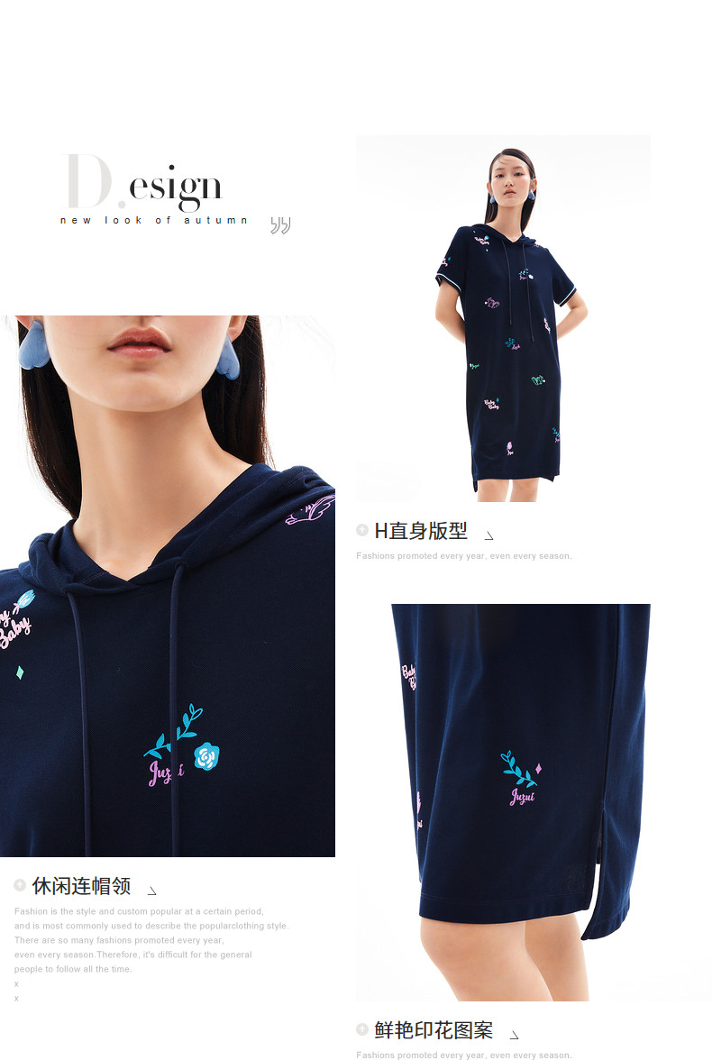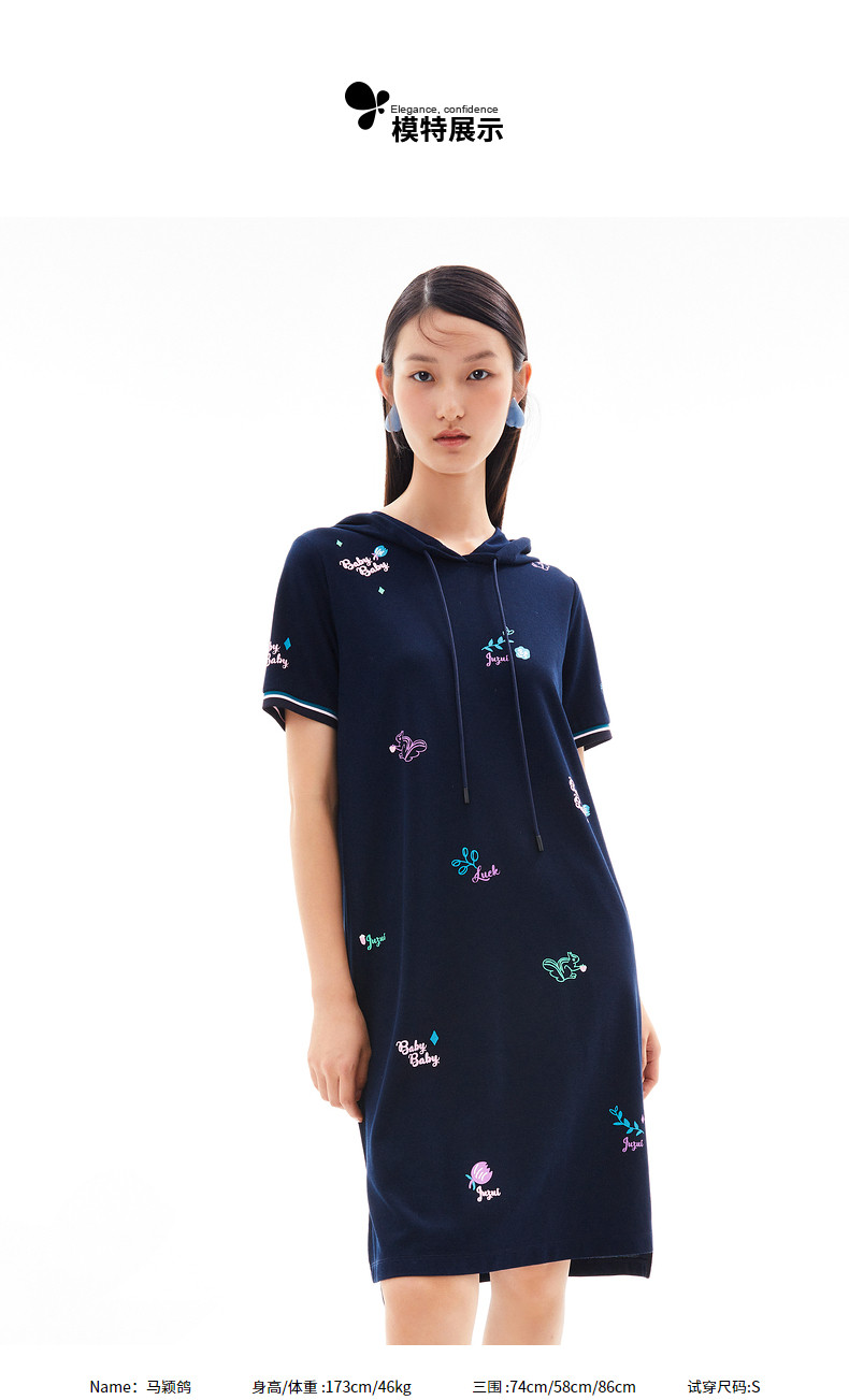 首页 > 玖姿专区 > 玖姿服饰 > 玖姿2021夏季新款安娜蔻系列休闲风趣味连帽直身印花女T恤连衣裙