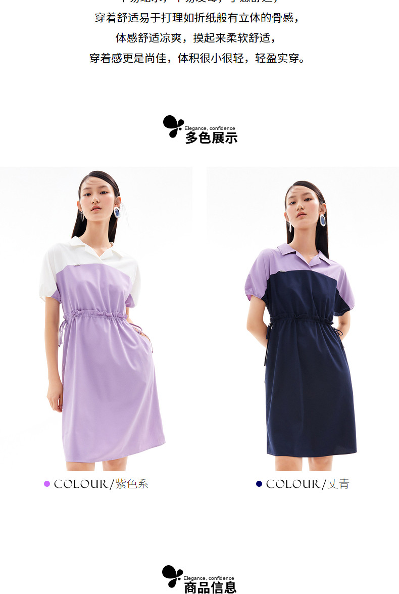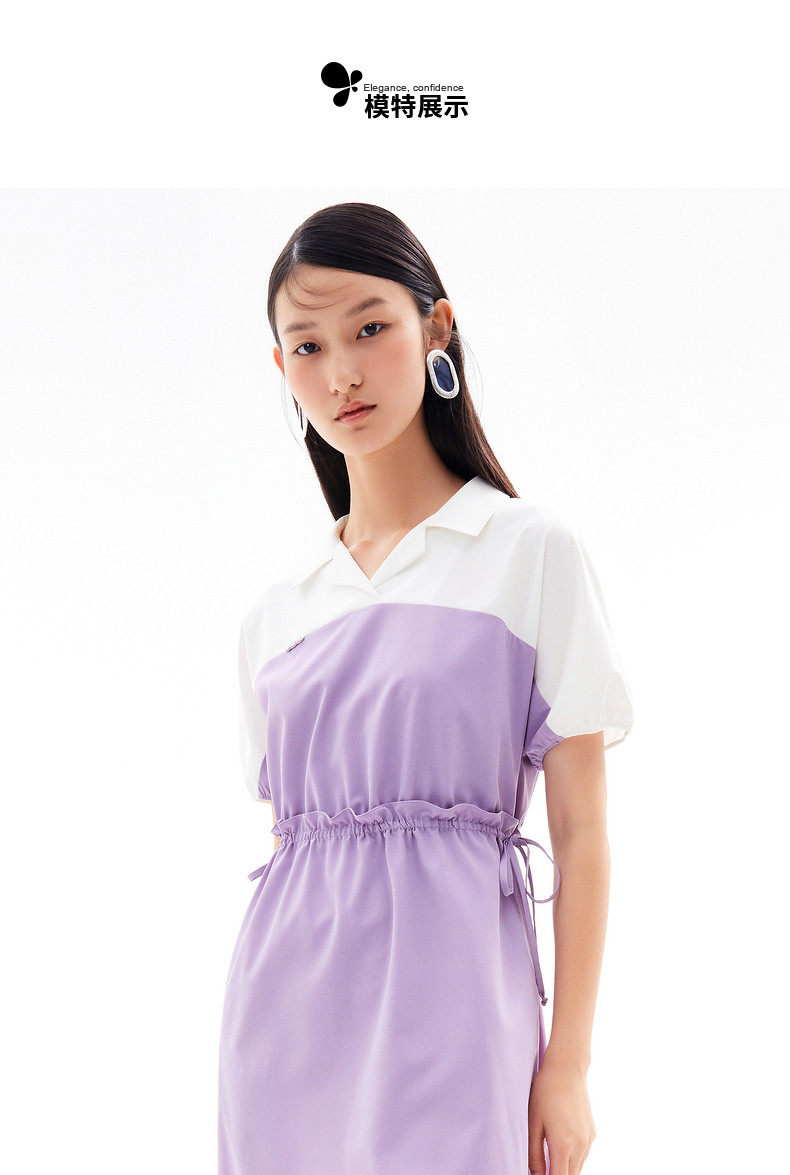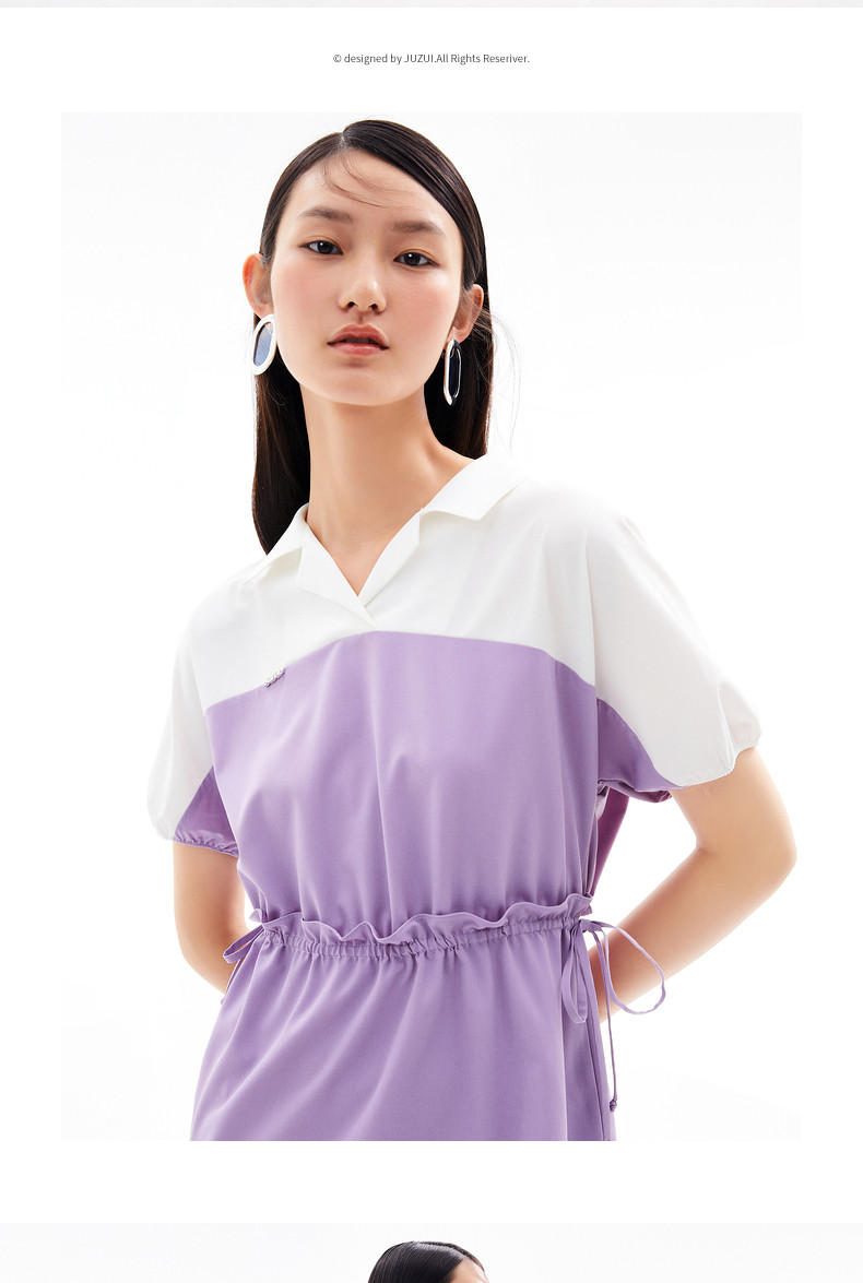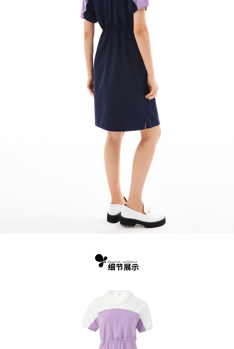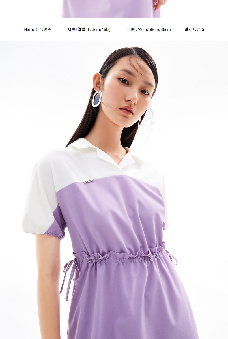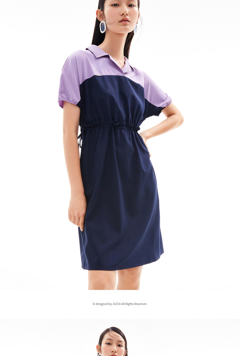 首页 > 玖姿专区 > 玖姿服饰 > 玖姿2021夏季新款安娜蔻系列运动风撞色拼接抽绳收腰中长女连衣裙