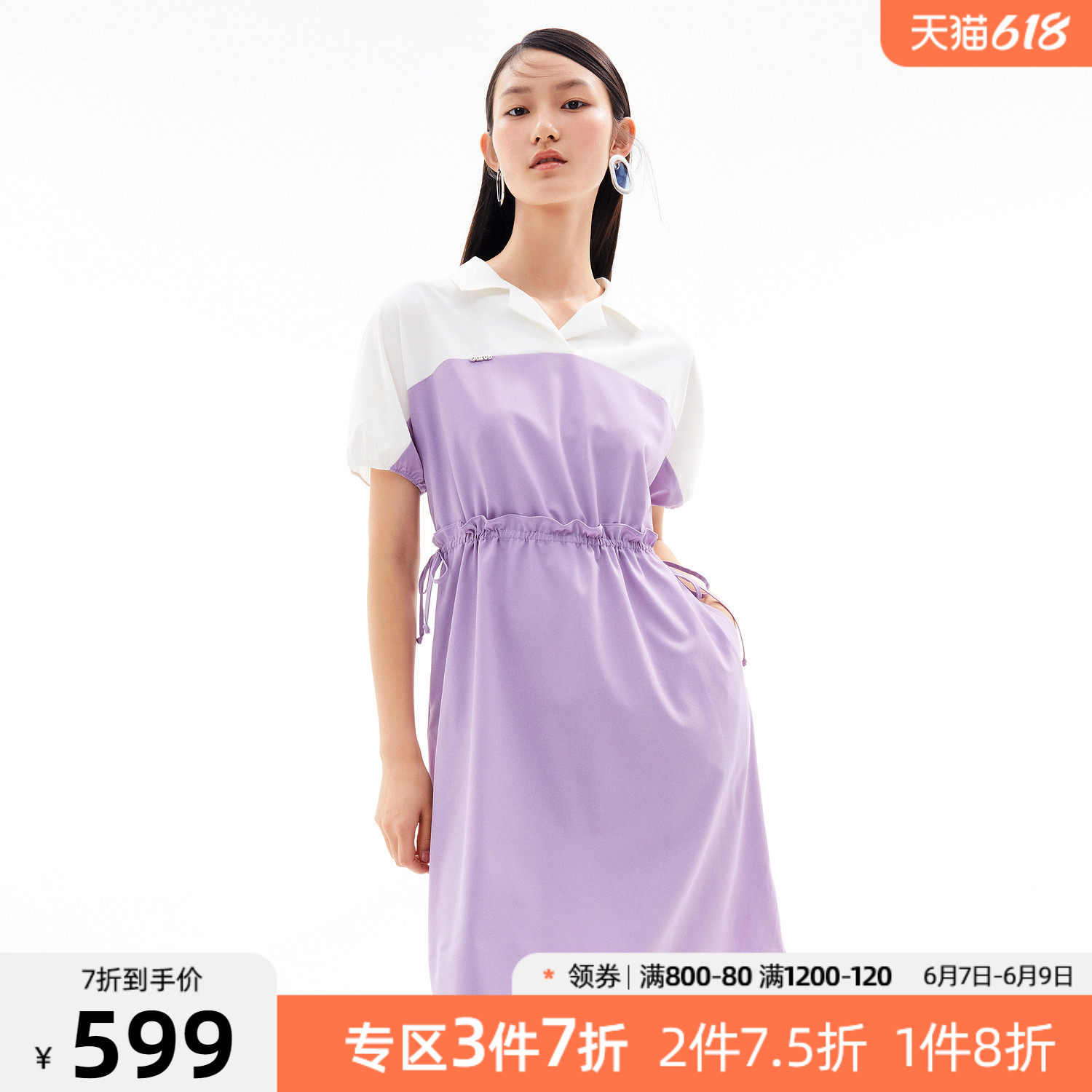 玖姿2021夏季新款安娜蔻系列运动风撞色拼接抽绳收腰中长女连衣裙
