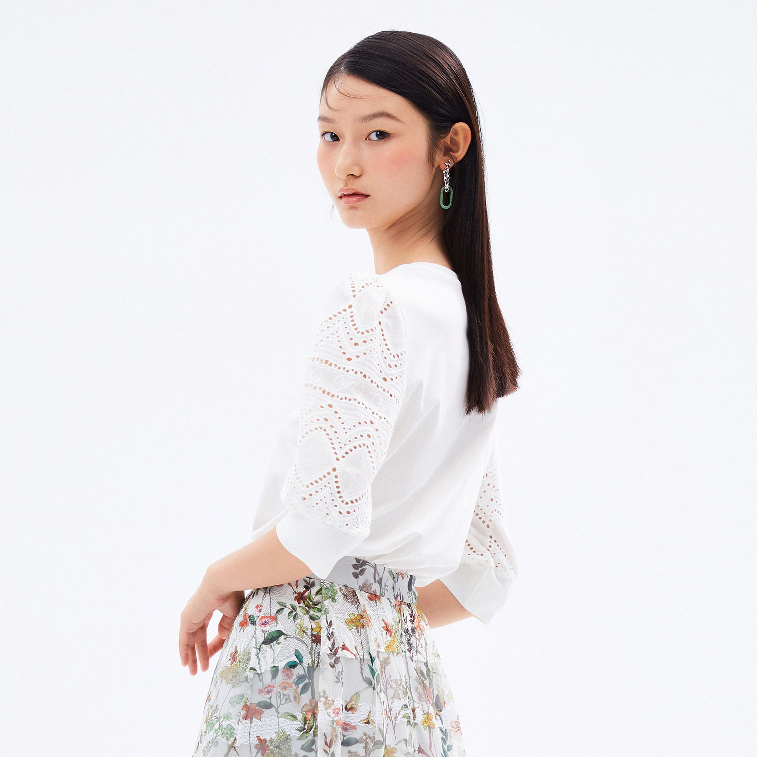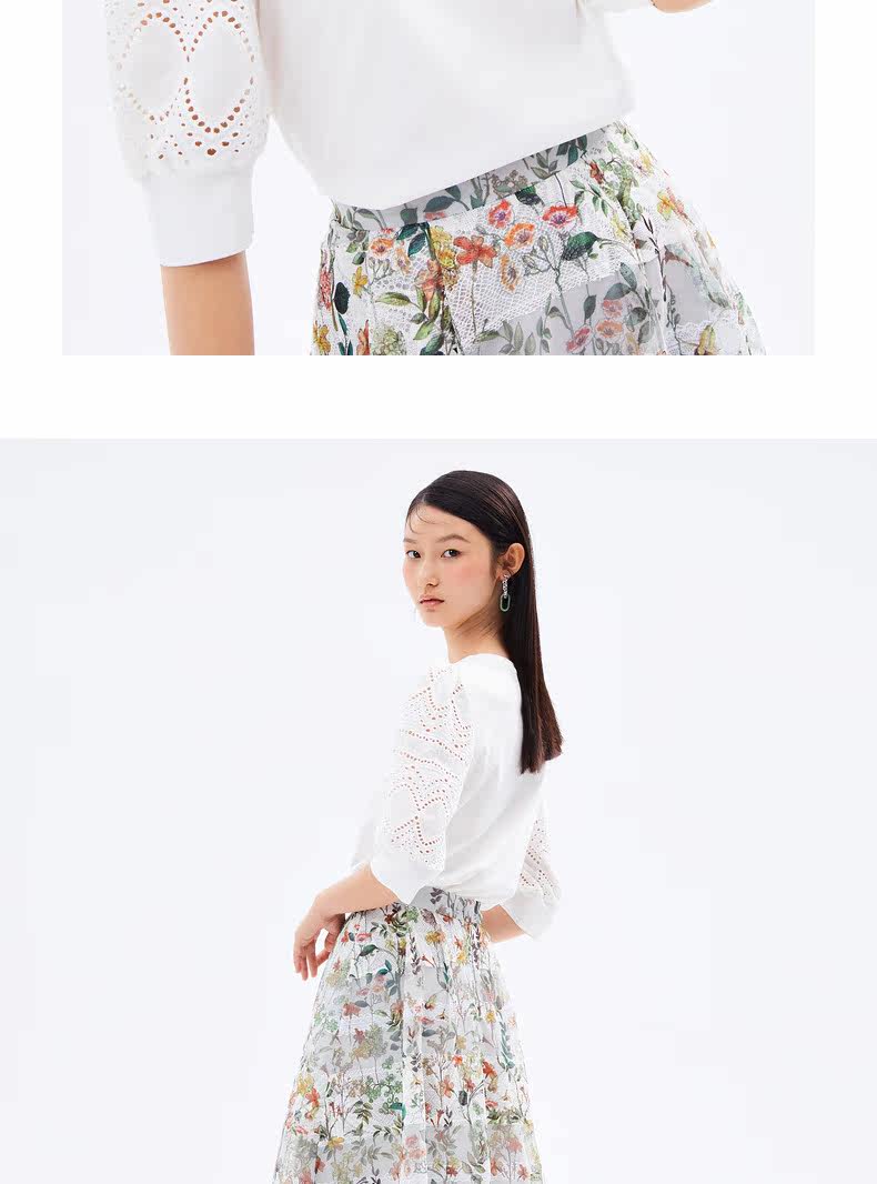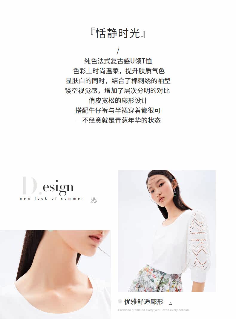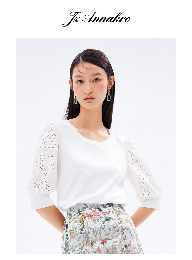 首页 > 玖姿专区 > 玖姿服饰 > 玖姿2021夏季新款安娜蔻系列纯色圆领简约气质款镂空休闲女T恤