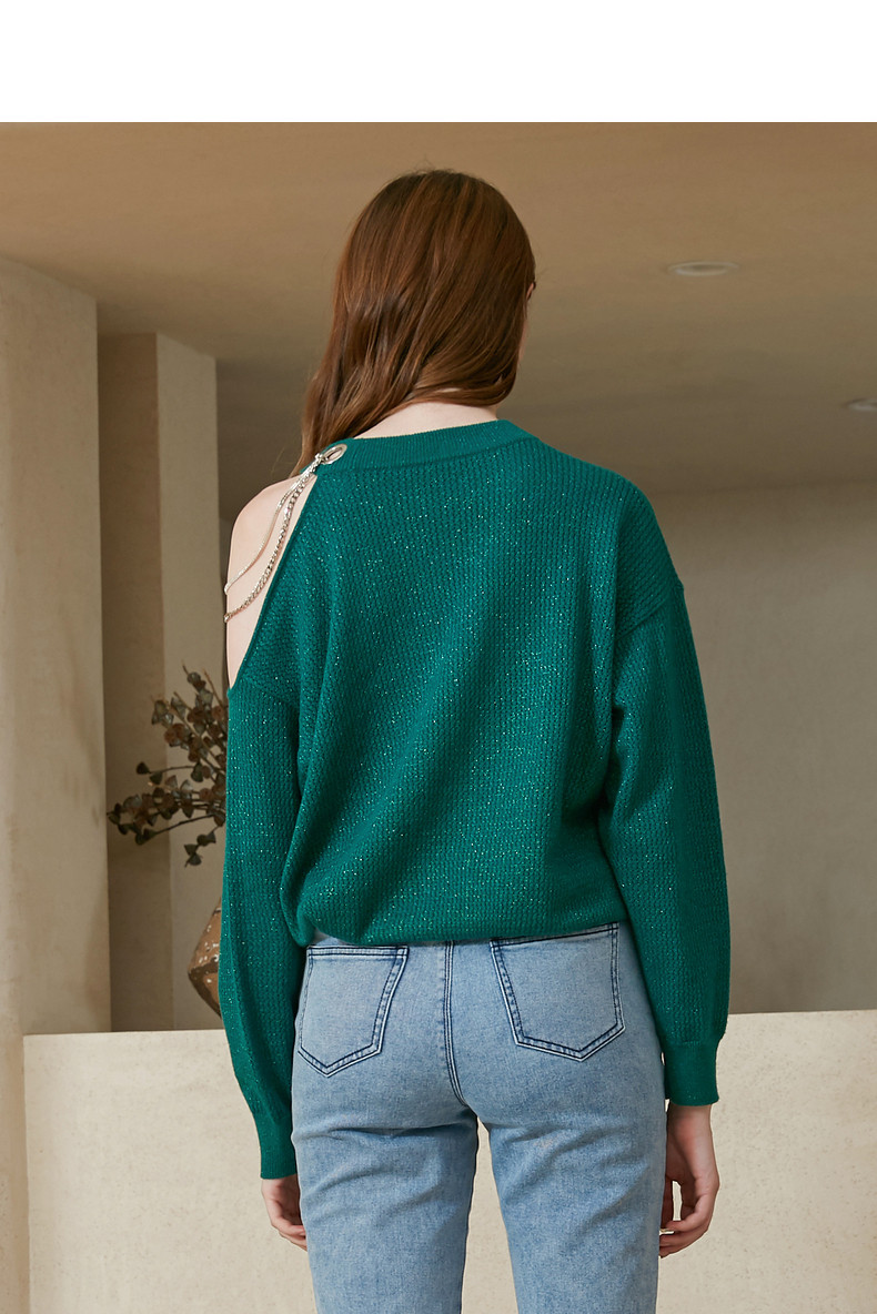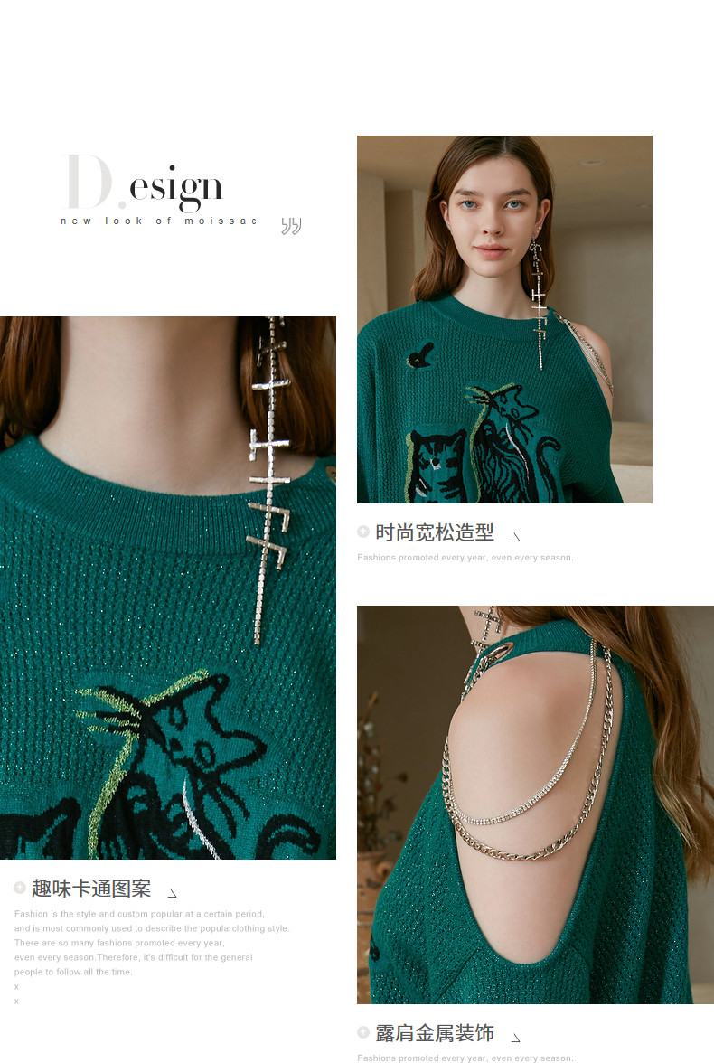 首页 > 玖姿专区 > 玖姿服饰 > MOISSAC/摩萨克2021春季商场同款墨绿色辣妹露肩宽松女套头针织衫