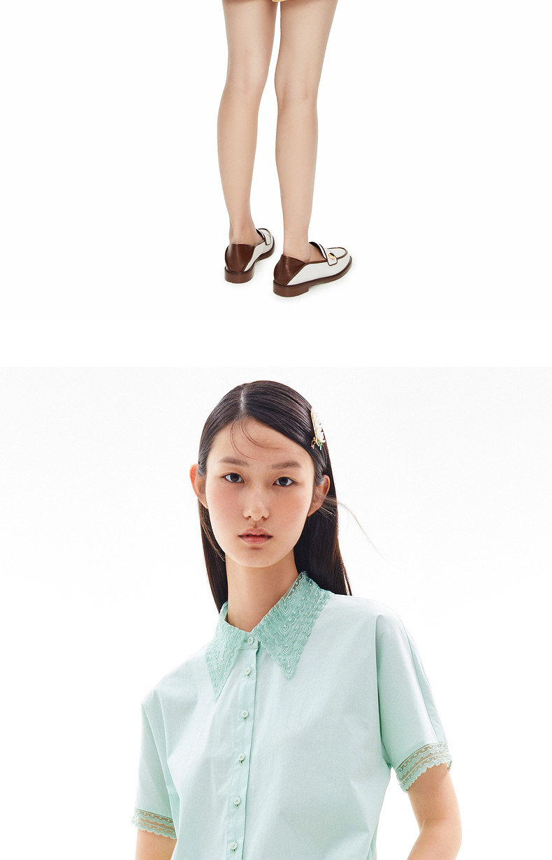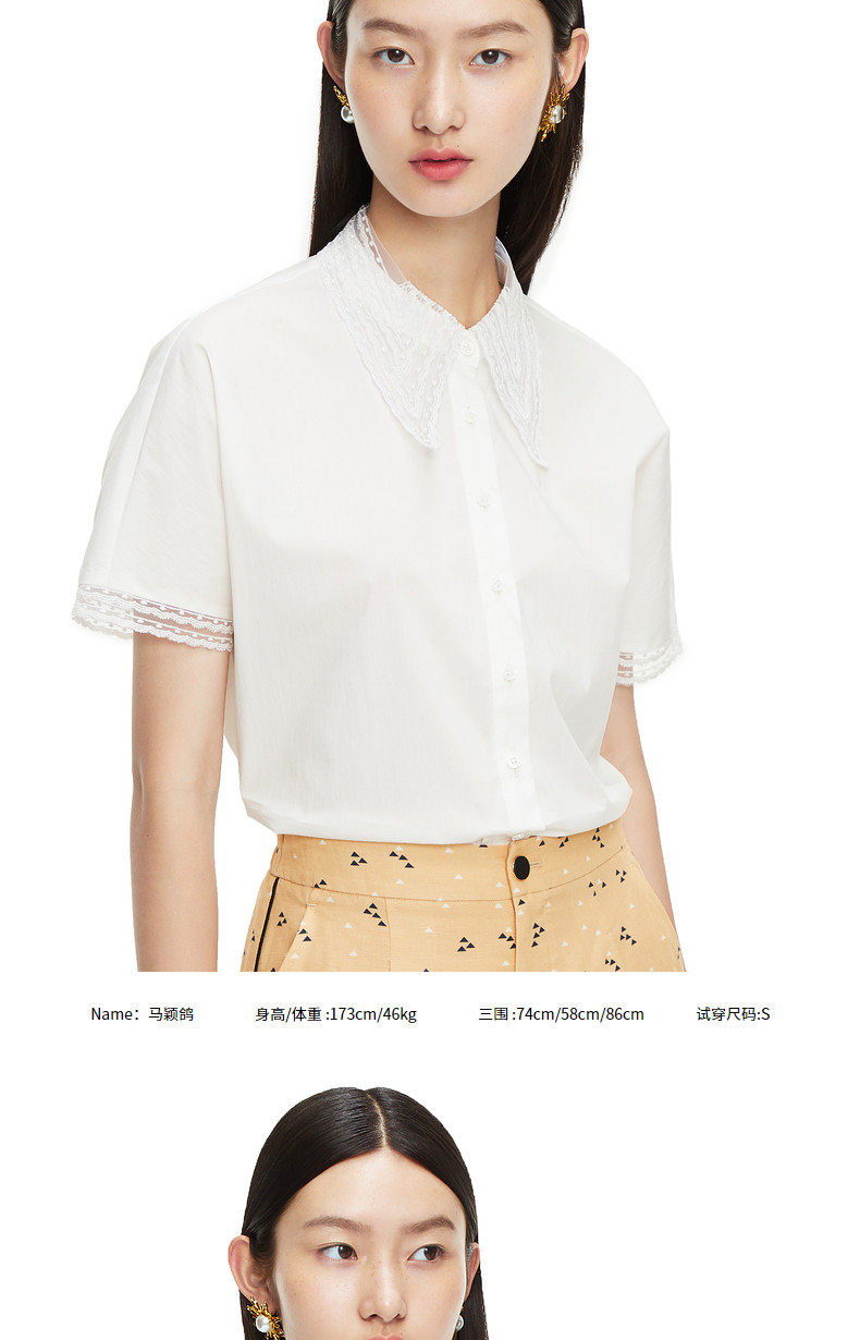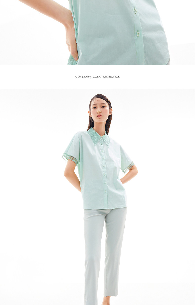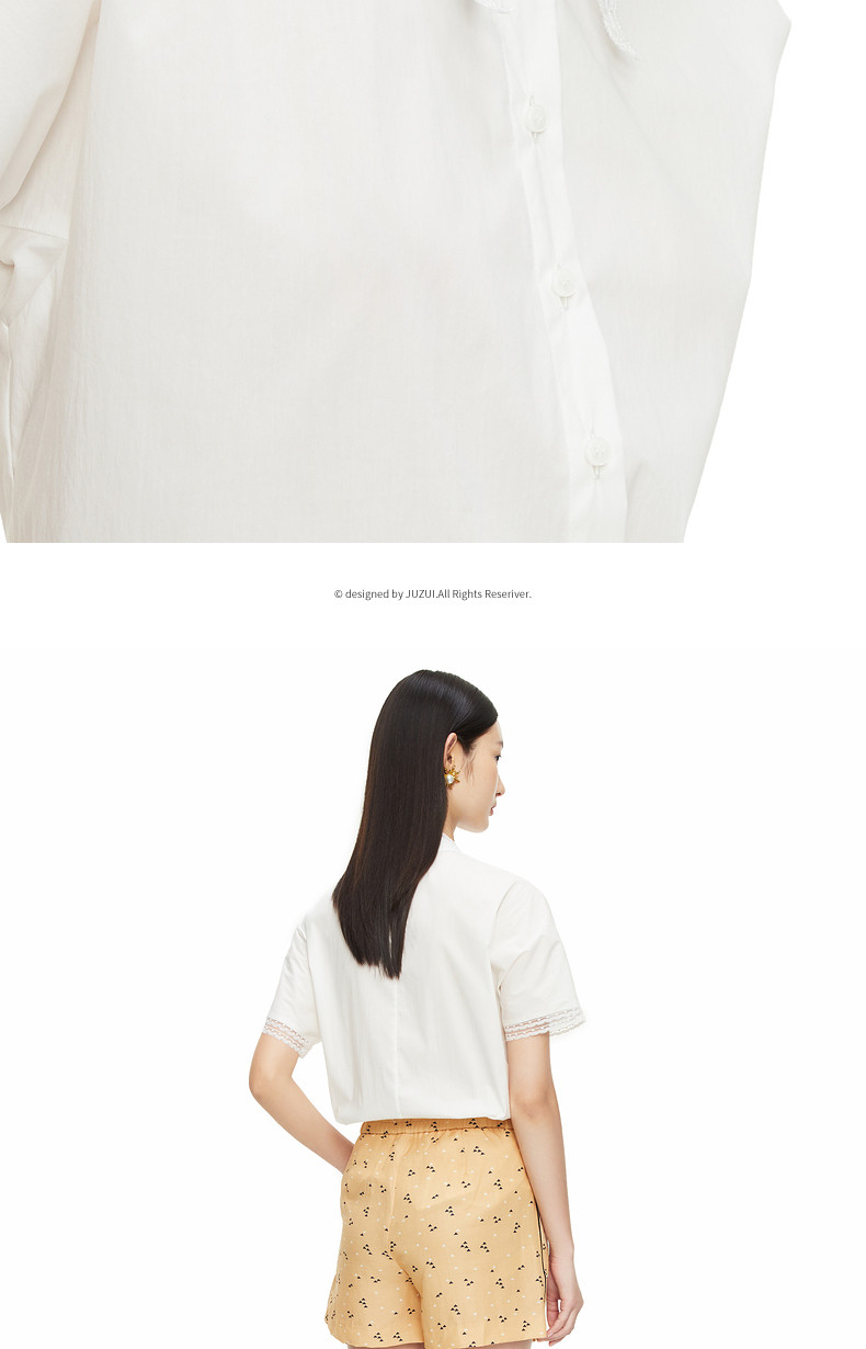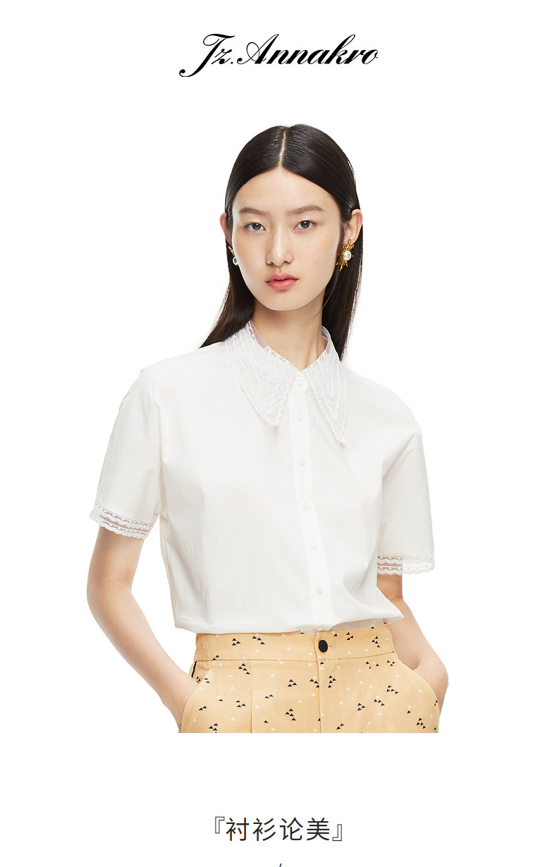 首页 > 玖姿专区 > 玖姿服饰 > 玖姿2021夏季新款安娜蔻系列纯色绣花拼接短袖时尚休闲都市女衬衫