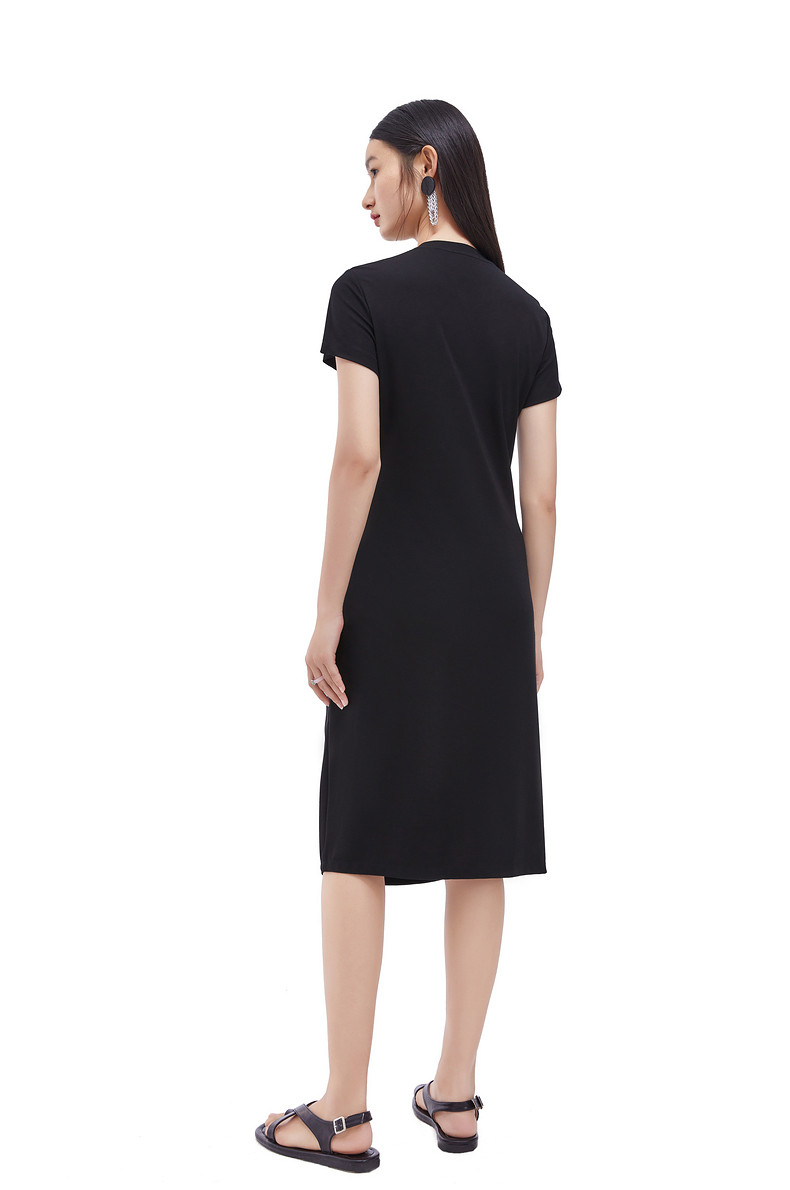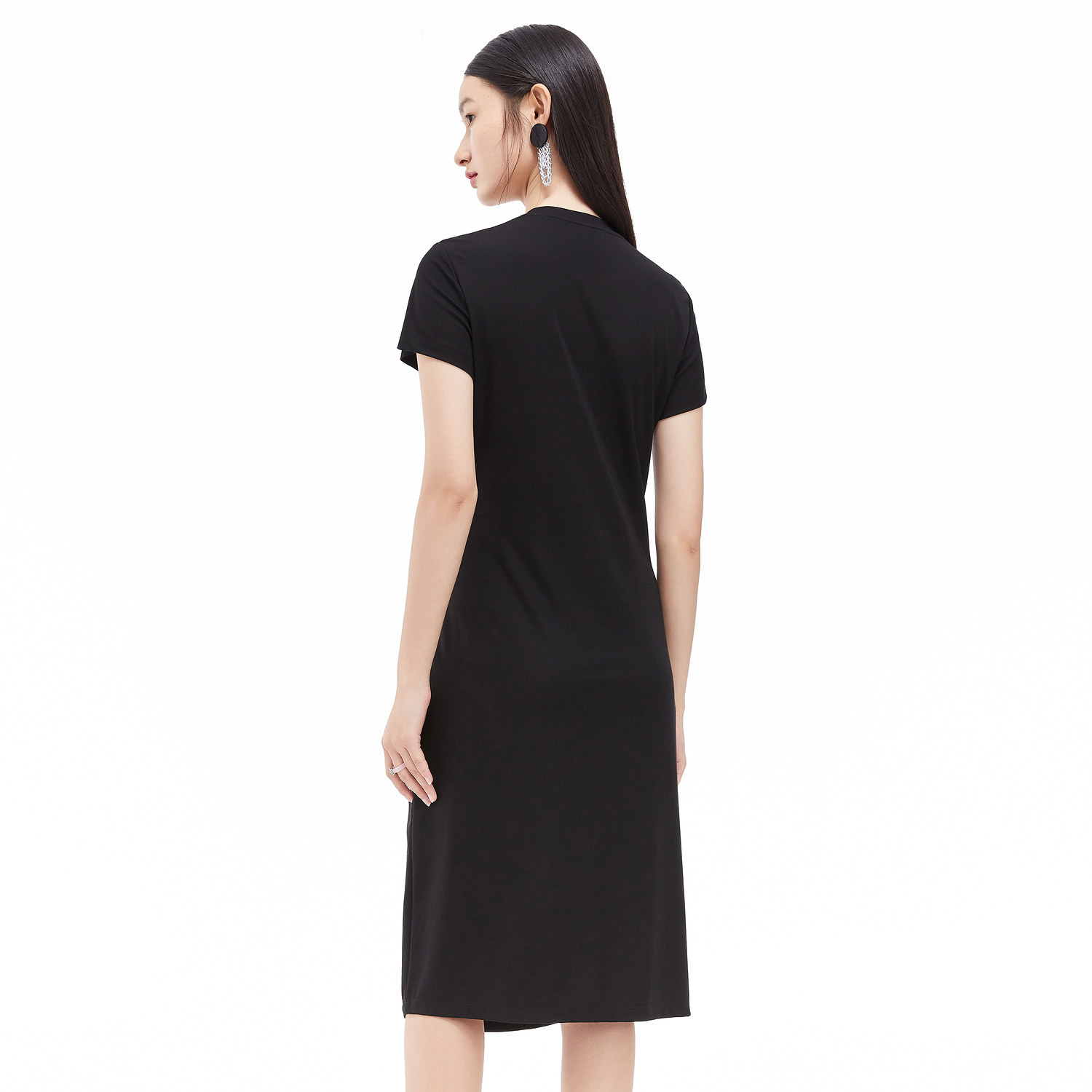 首页 > 玖姿专区 > 玖姿服饰 > 玖姿2021夏季新款安娜蔻系列黑色修身高开叉时尚收褶长款女连衣裙