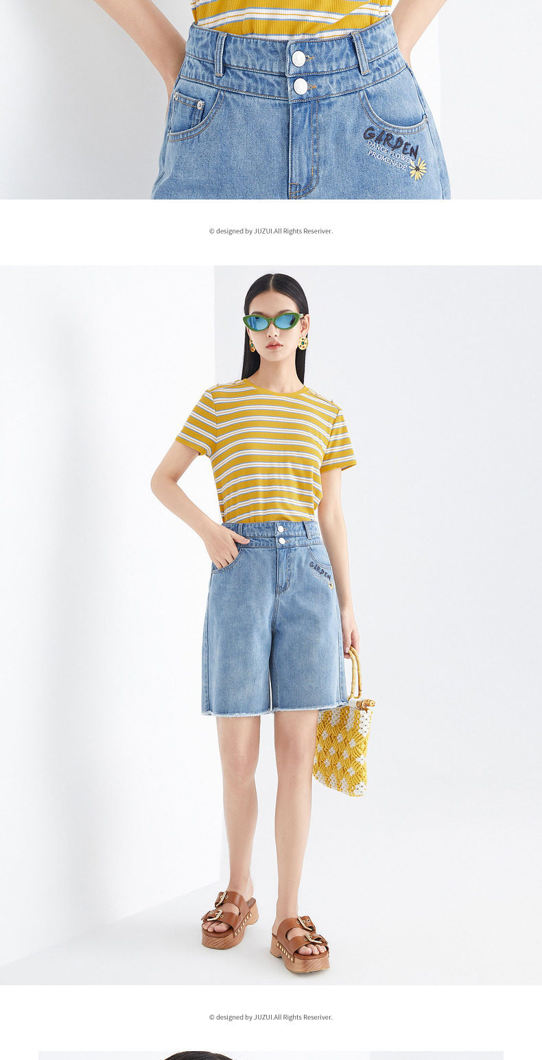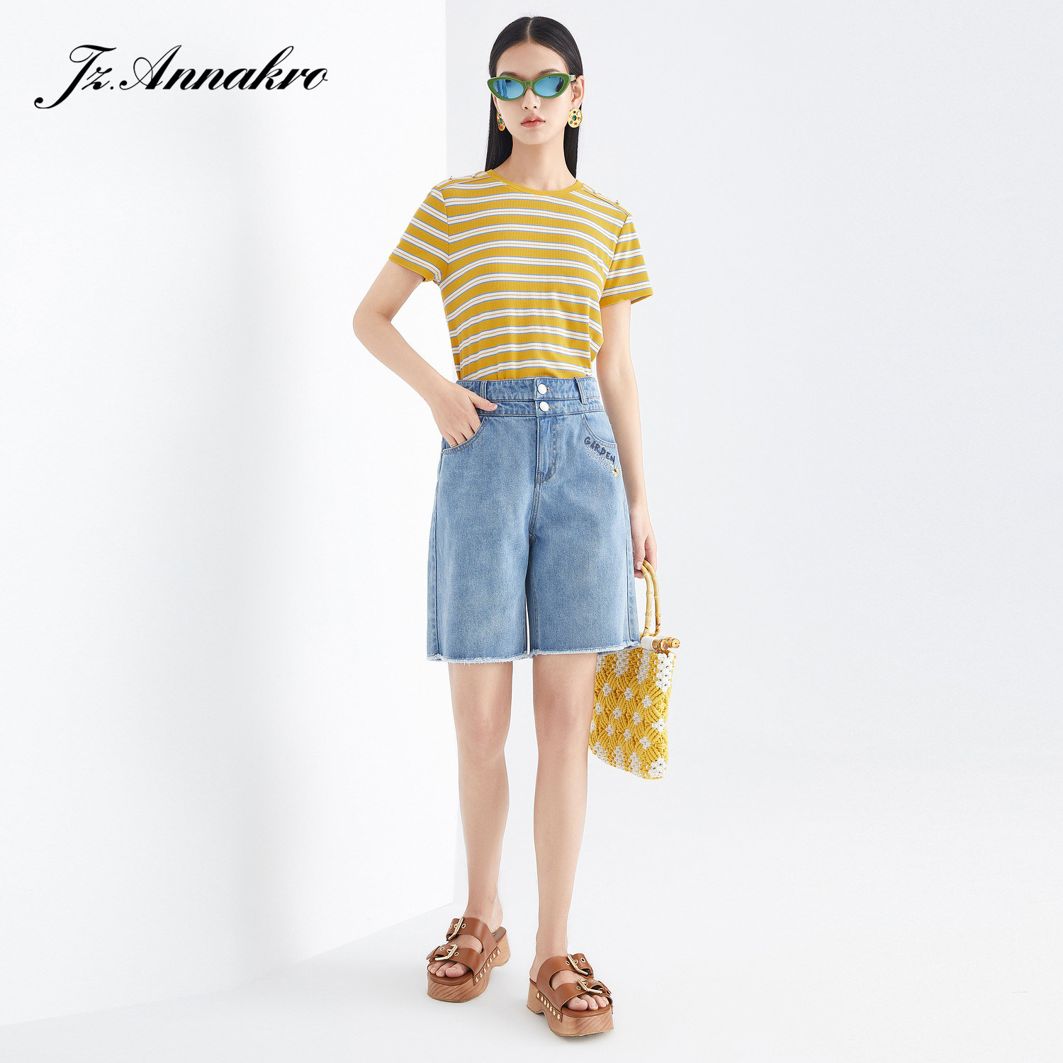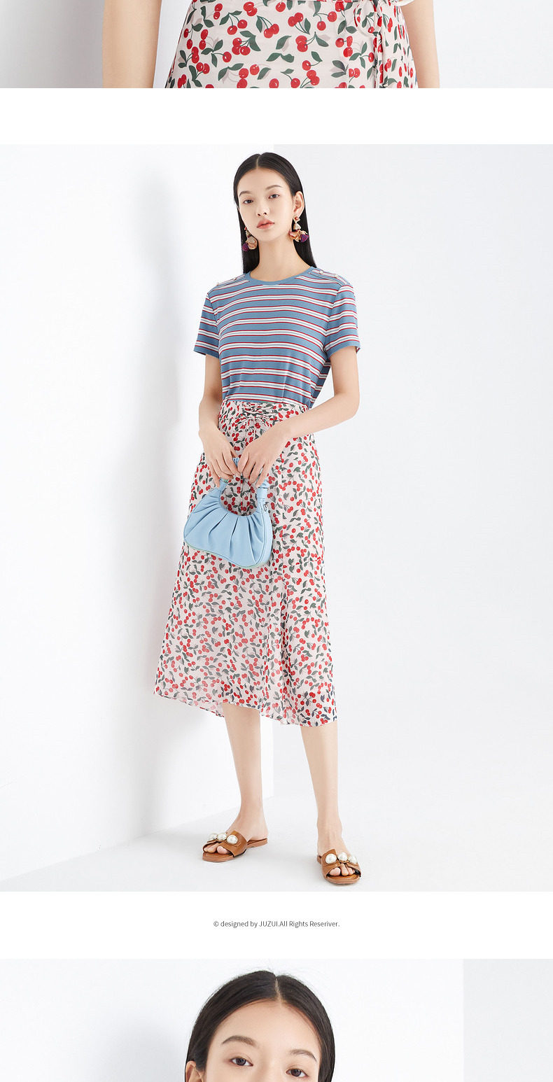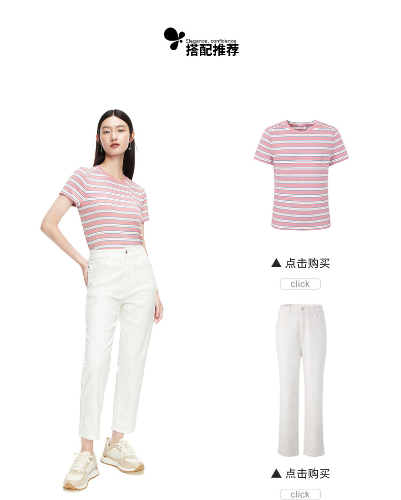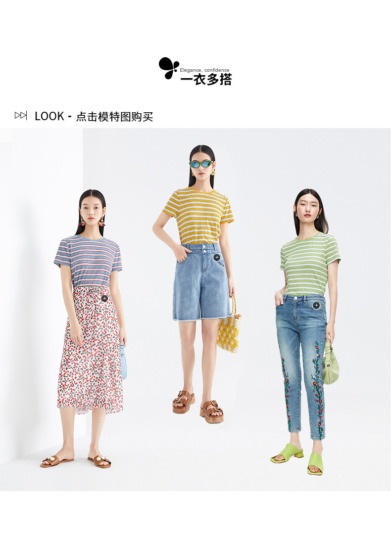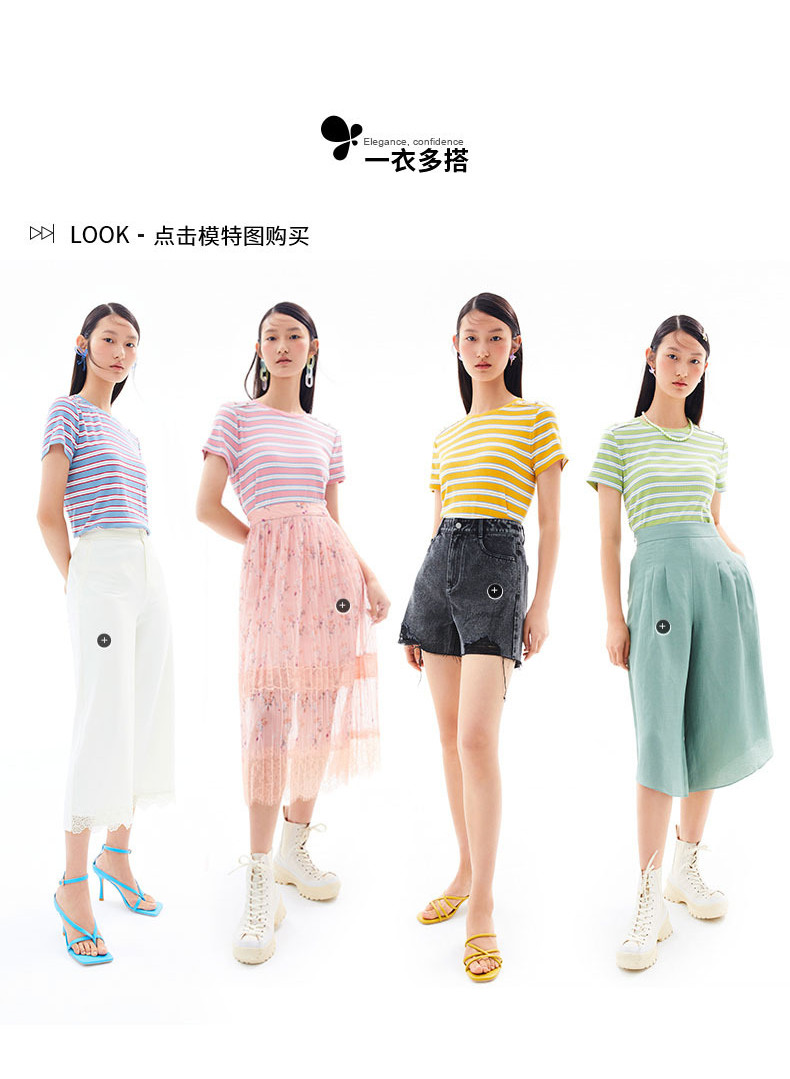 首页 > 玖姿专区 > 玖姿服饰 > 玖姿2021夏季新款安娜蔻系列时尚修身显瘦撞色条纹圆领针织女T恤