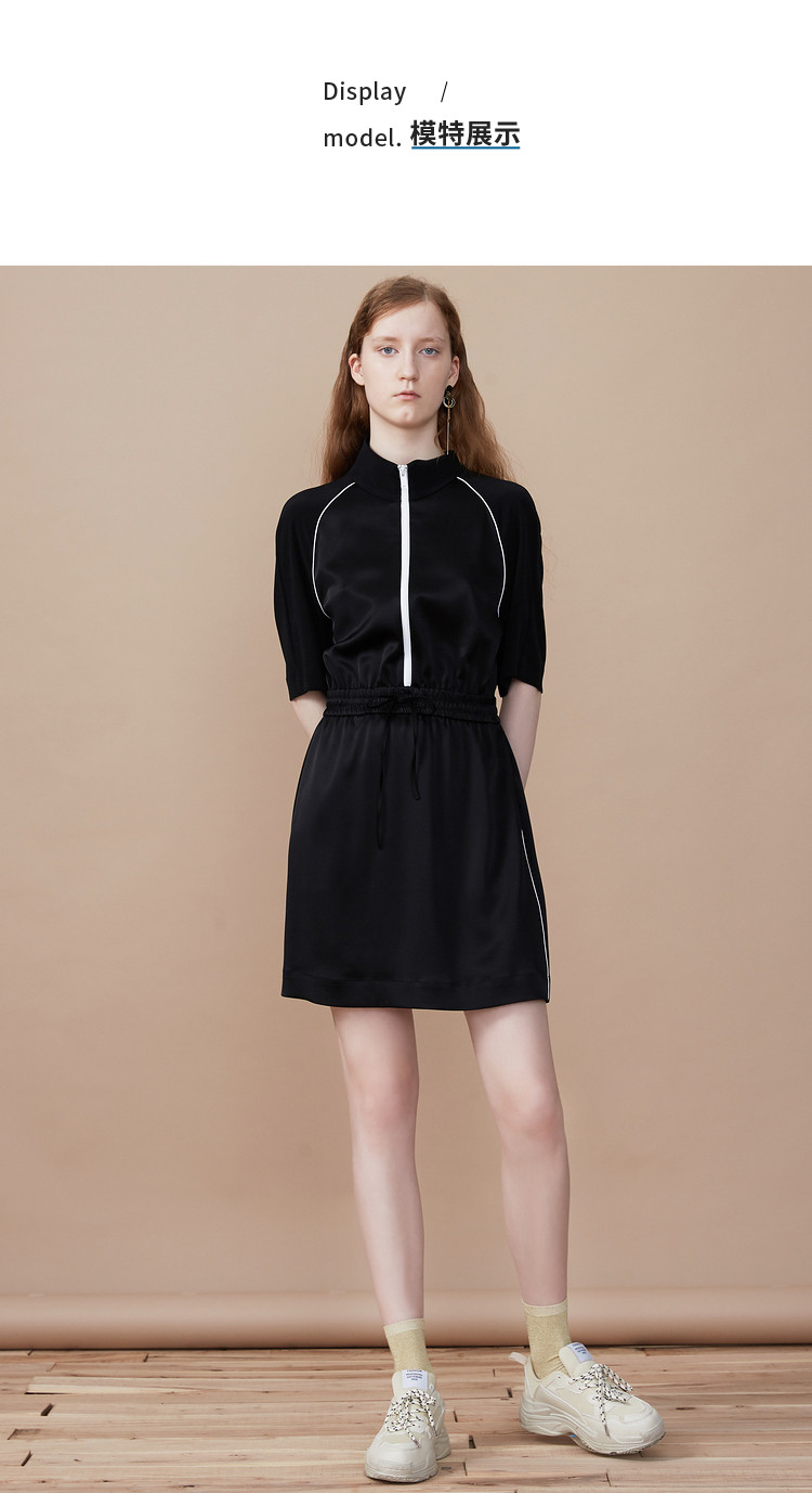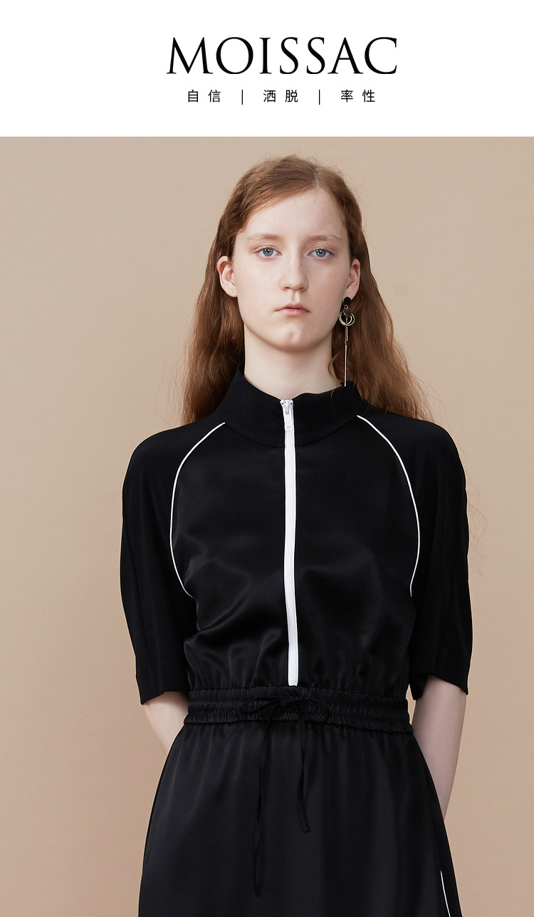 首页 > 玖姿专区 > 玖姿服饰 > MOISSAC/摩萨克女装2021夏季新款黑色休闲拉链收腰运动风女连衣裙