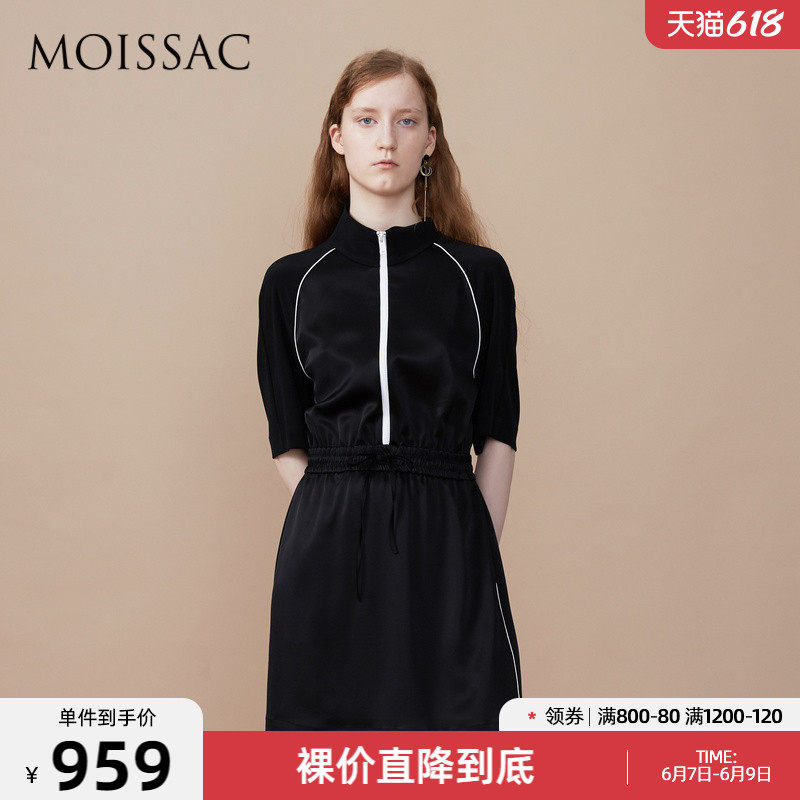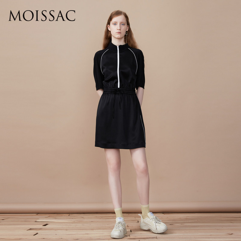 MOISSAC/摩萨克女装2021夏季新款黑色休闲拉链收腰运动风女连衣裙