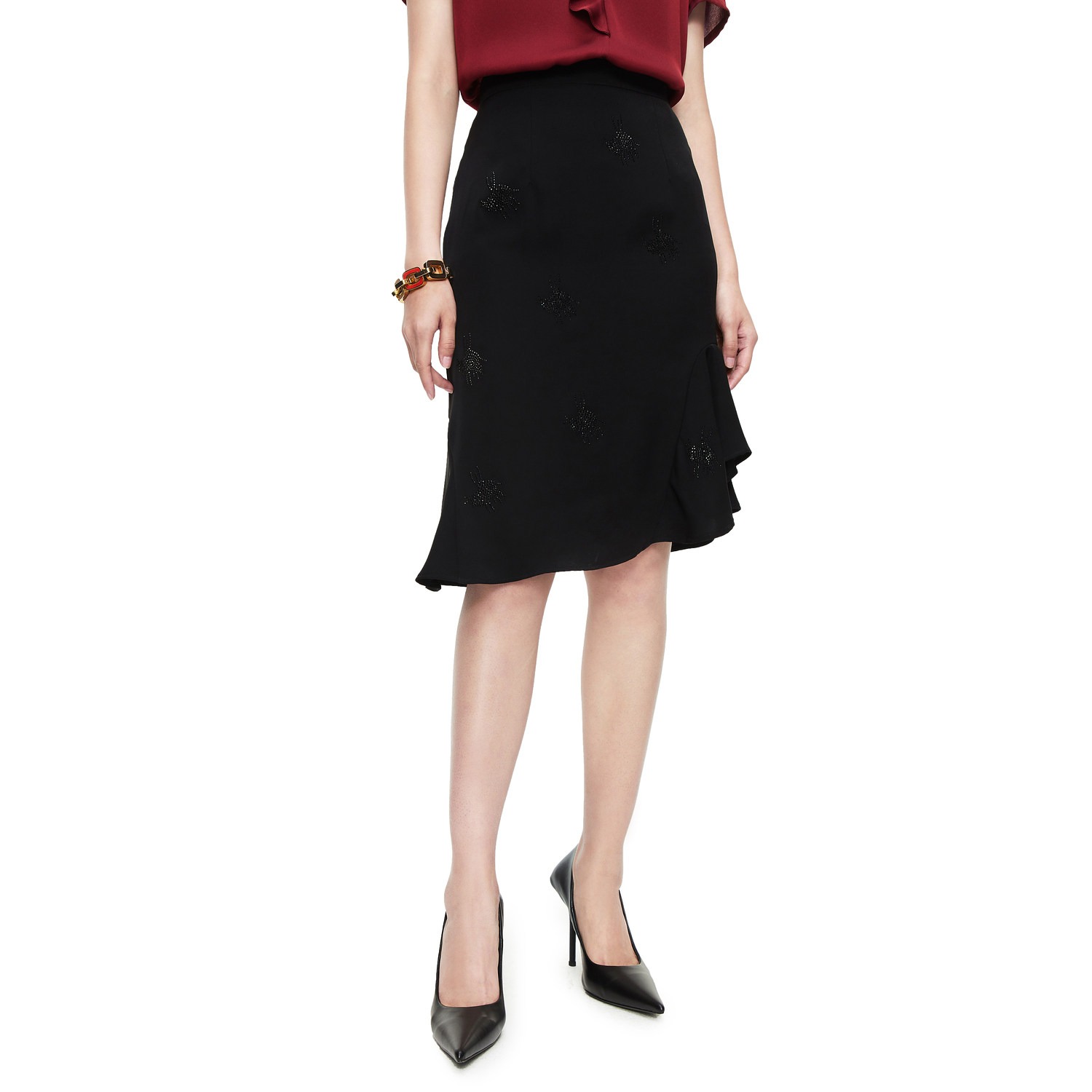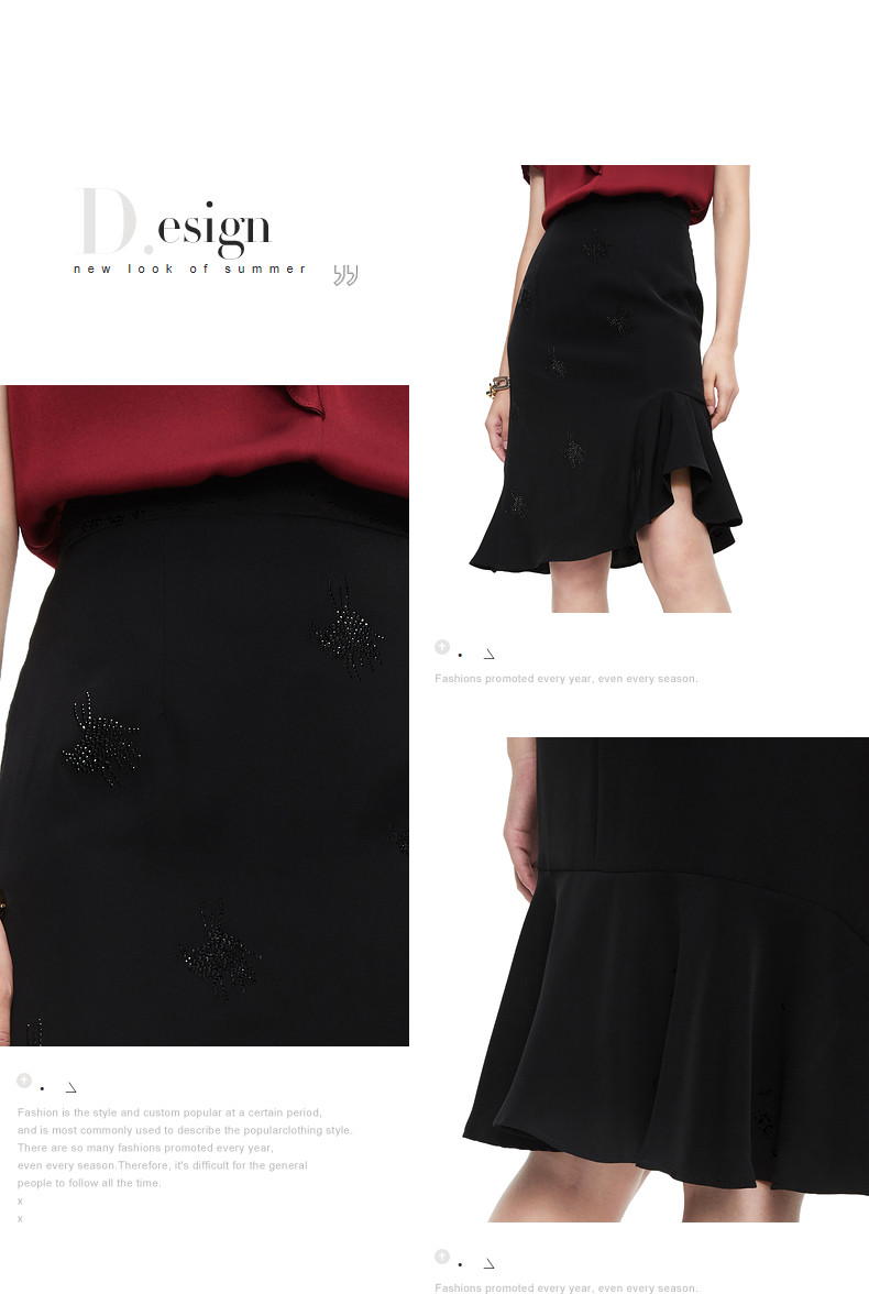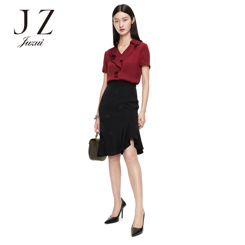 首页 > 玖姿专区 > 玖姿服饰 > JUZUI/玖姿官方旗舰店2021夏季新款黑色气质包臀修身不规则鱼尾裙