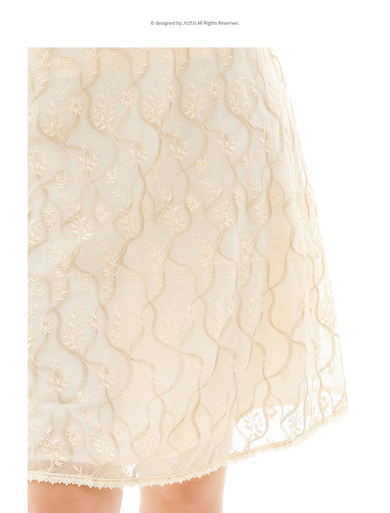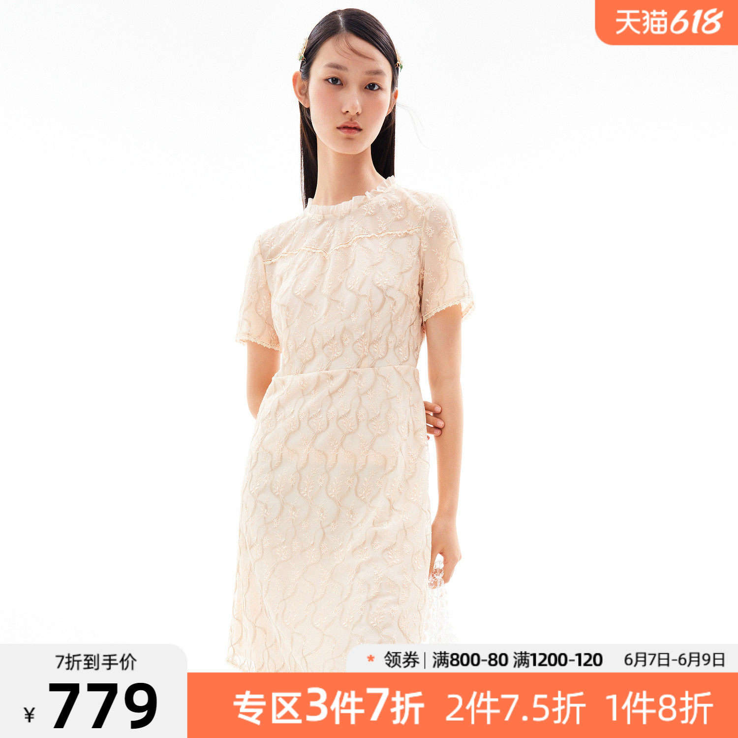 JUZUI/玖姿官方旗舰店2021夏季新款甜美优雅网纱绣花中长女连衣裙