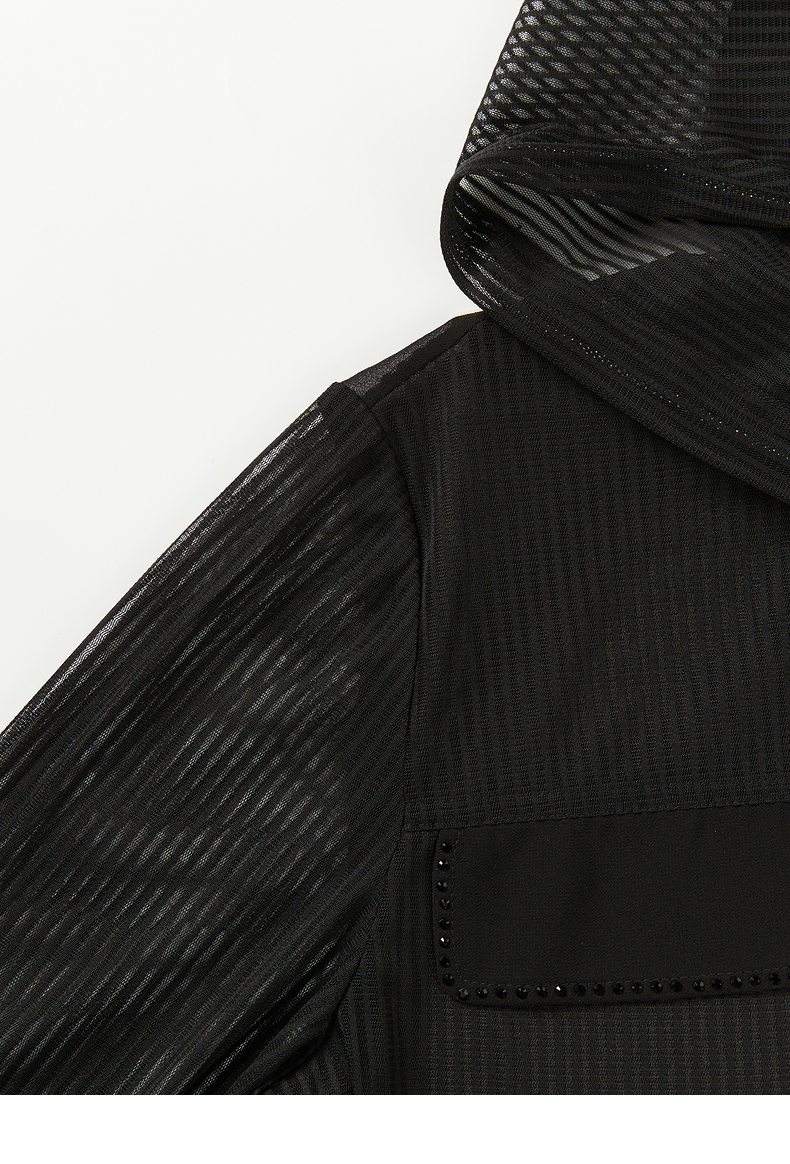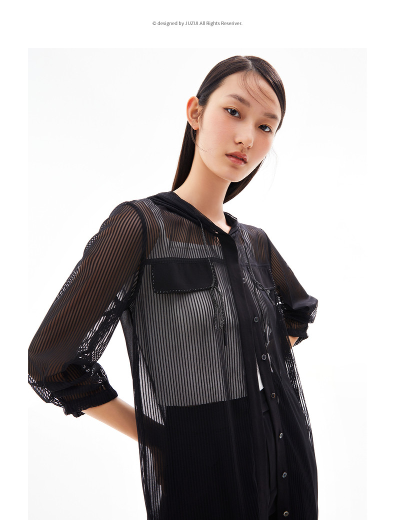 JUZUI/玖姿官方旗舰店2021夏季新款黑色连帽休闲网面速干女外套
