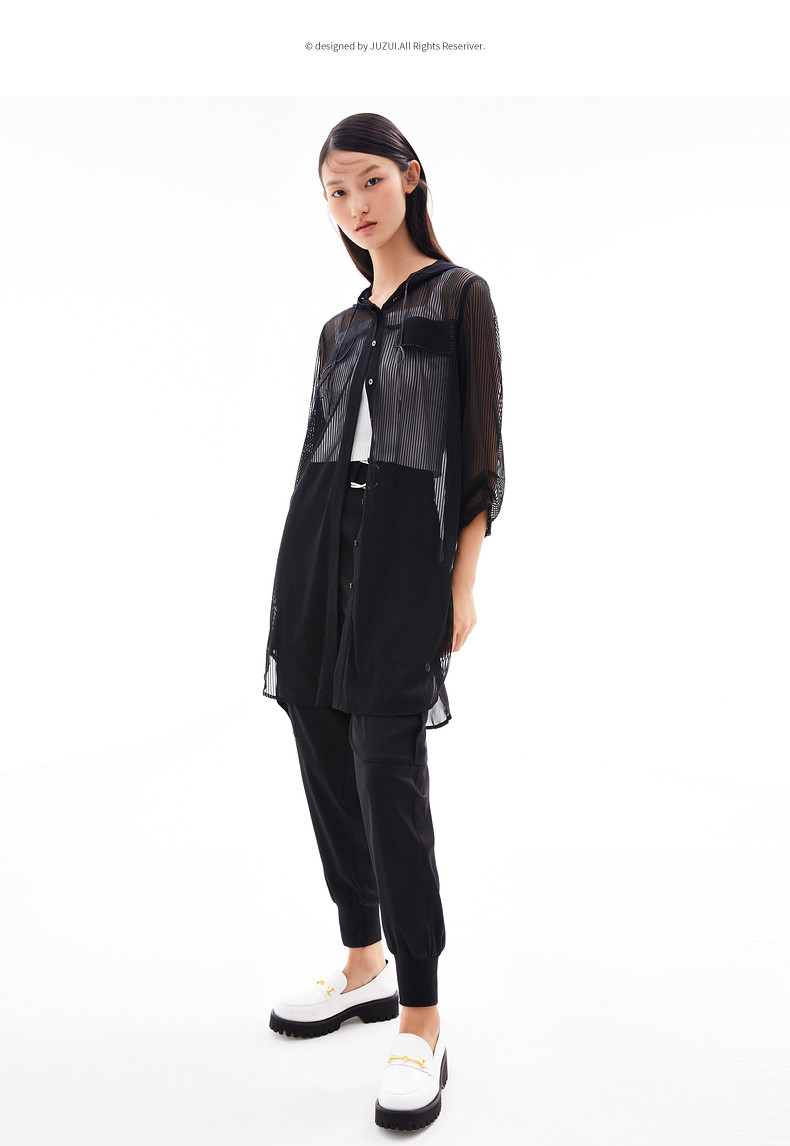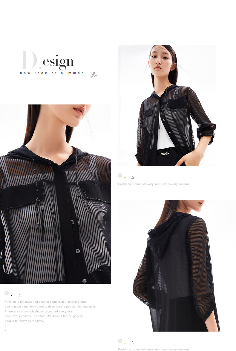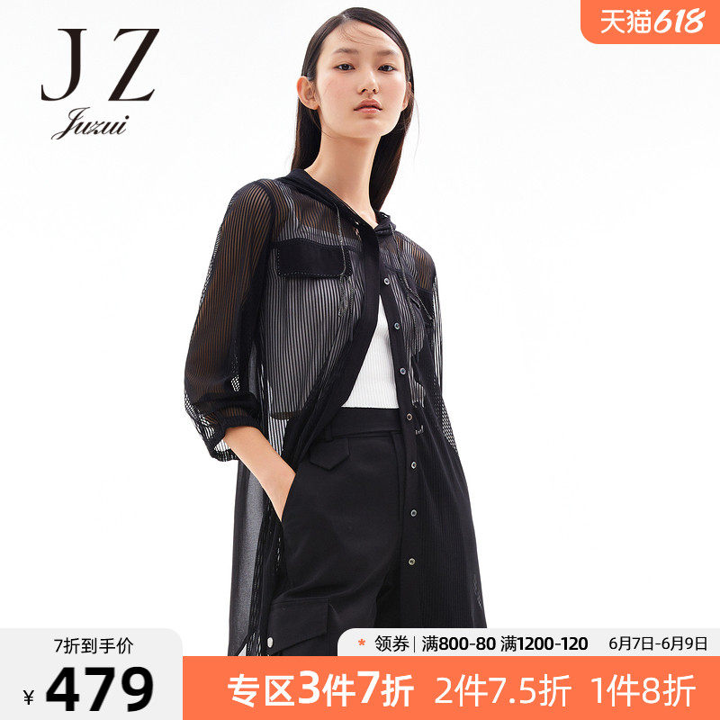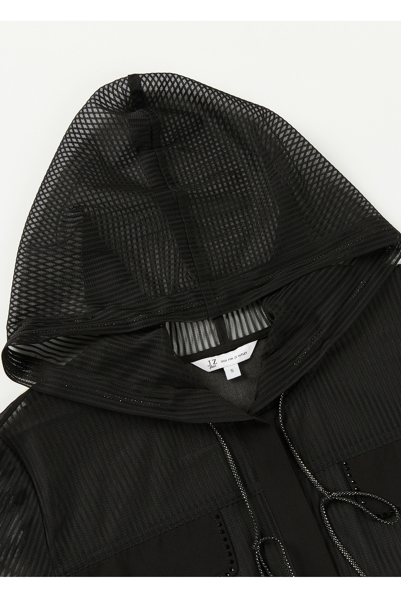 首页 > 玖姿专区 > 玖姿服饰 > JUZUI/玖姿官方旗舰店2021夏季新款黑色连帽休闲网面速干女外套