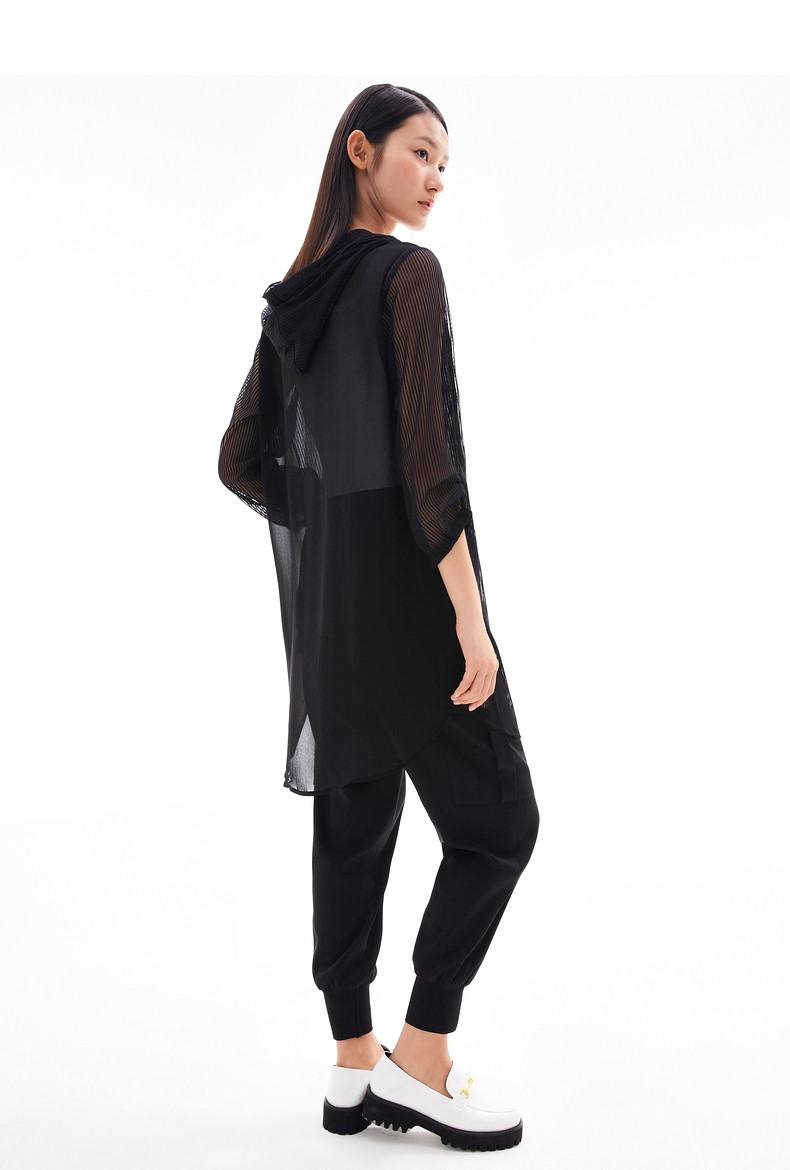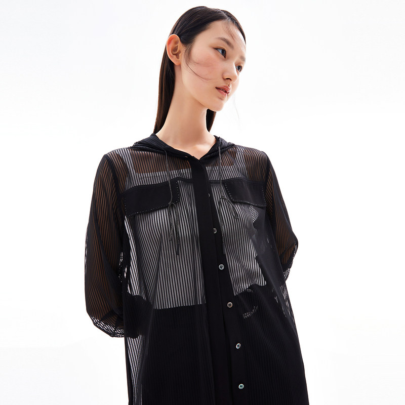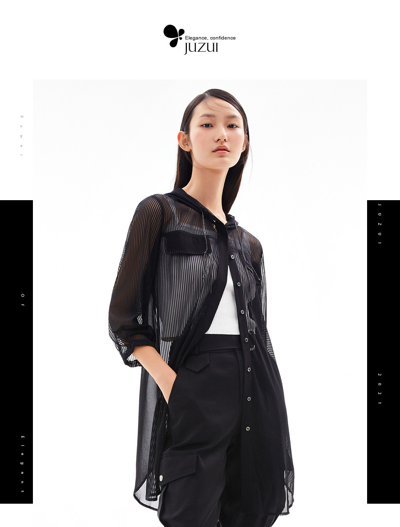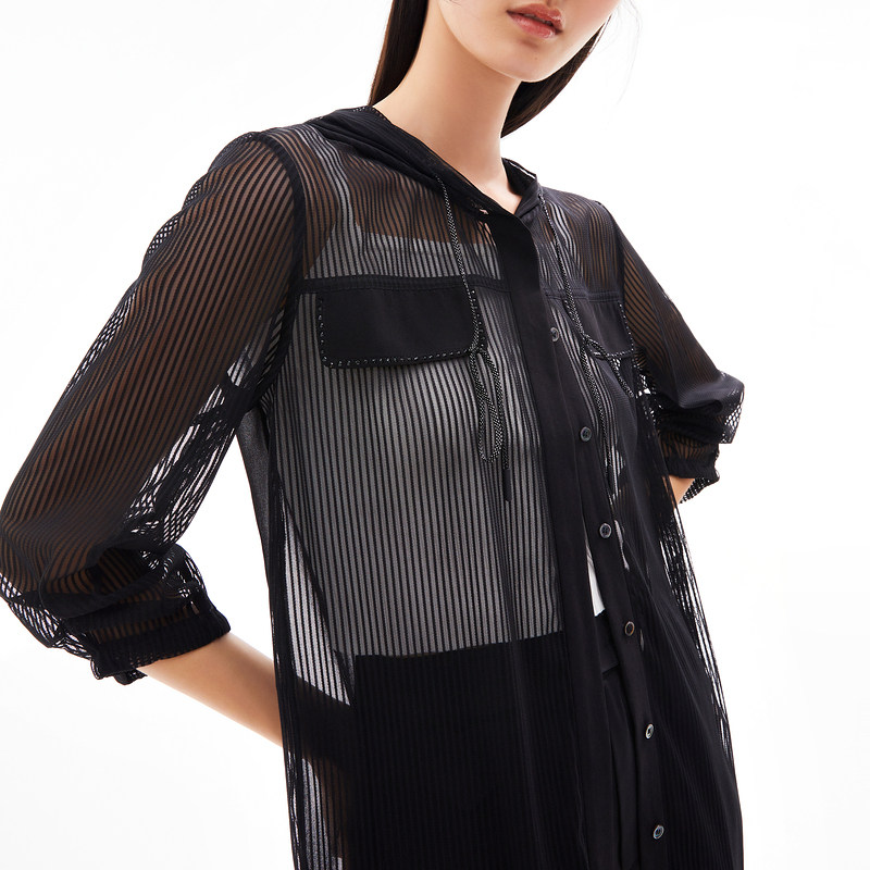 首页 > 玖姿专区 > 玖姿服饰 > JUZUI/玖姿官方旗舰店2021夏季新款黑色连帽休闲网面速干女外套