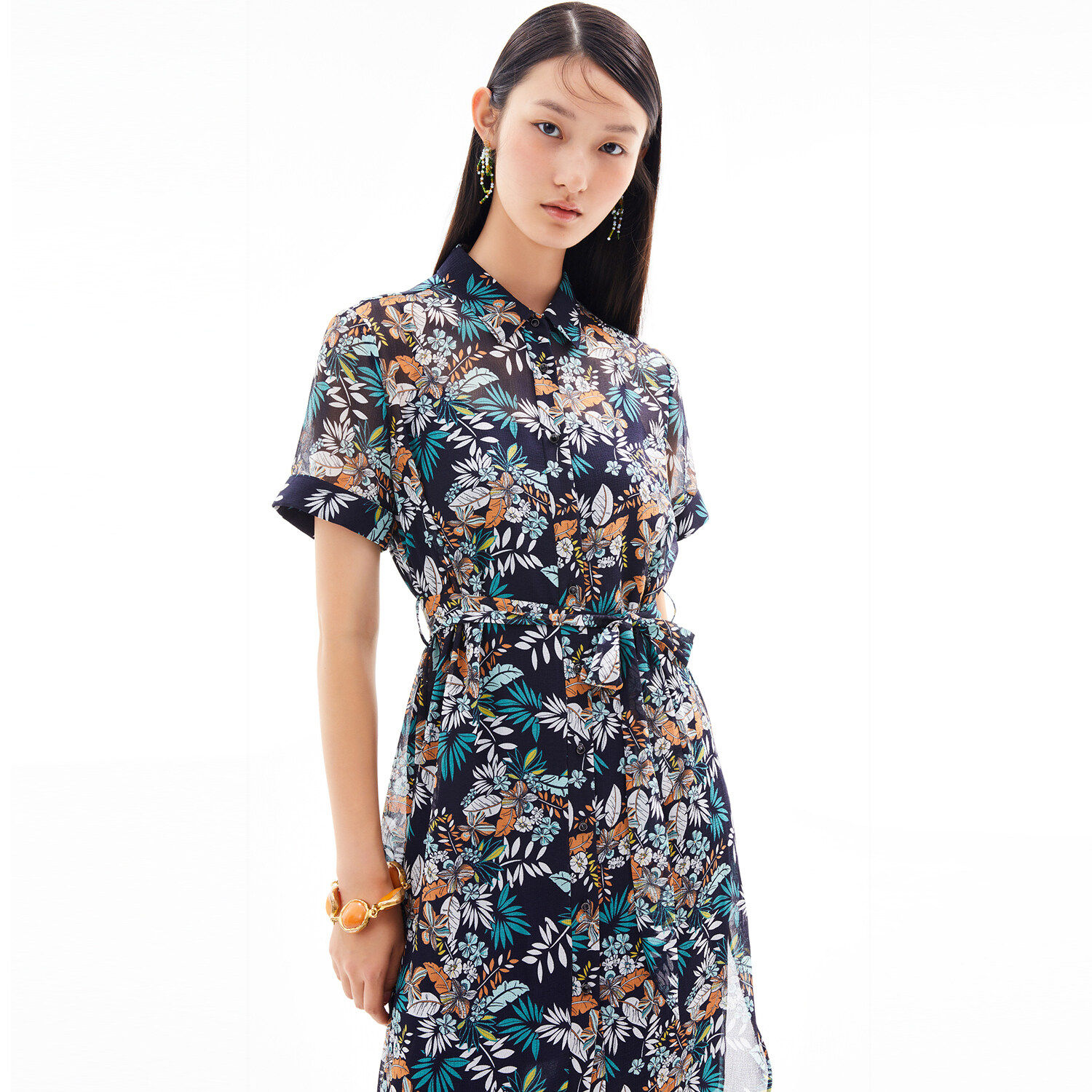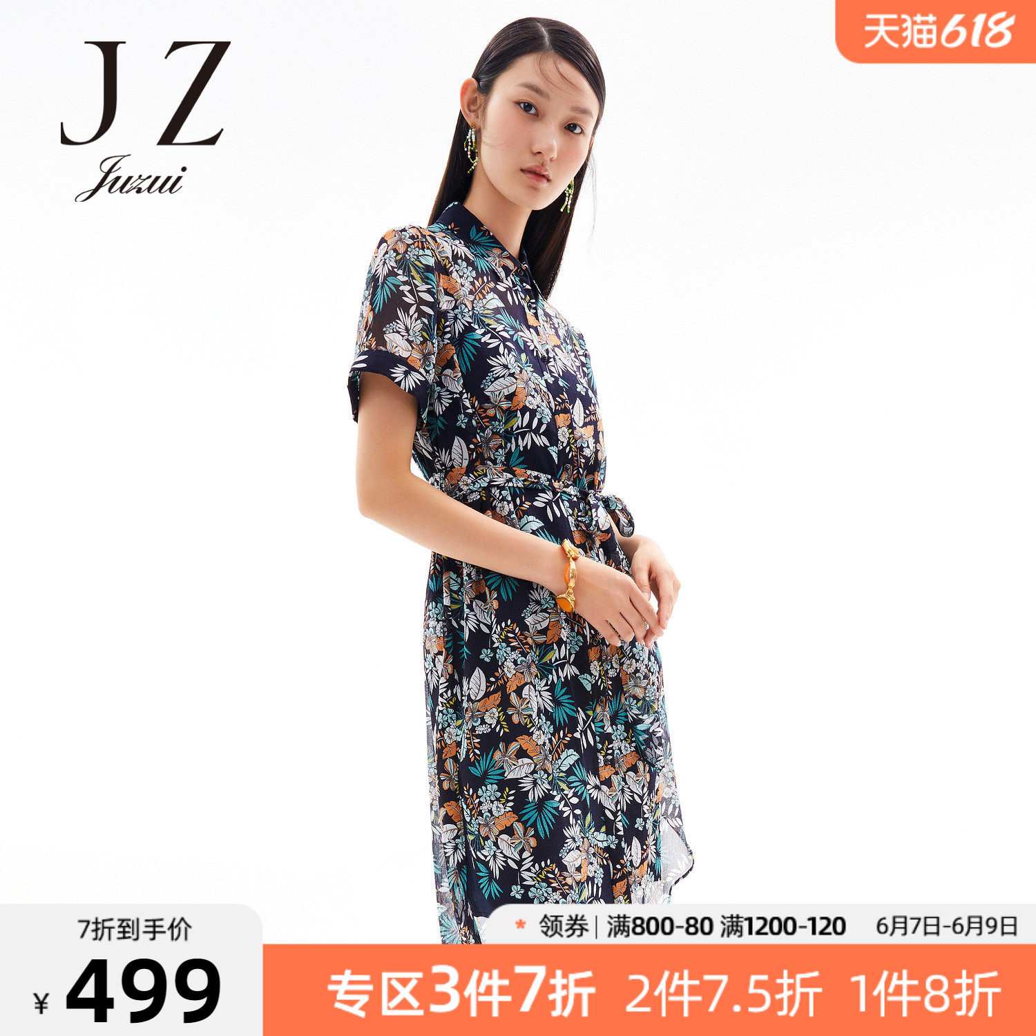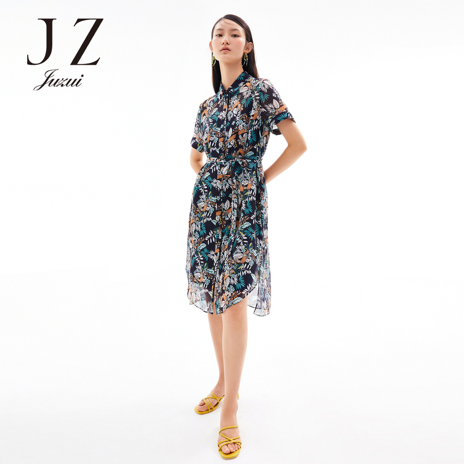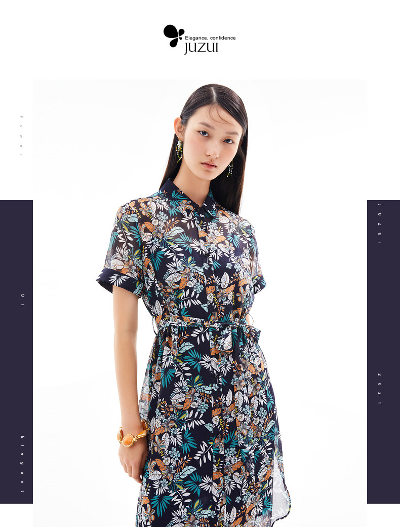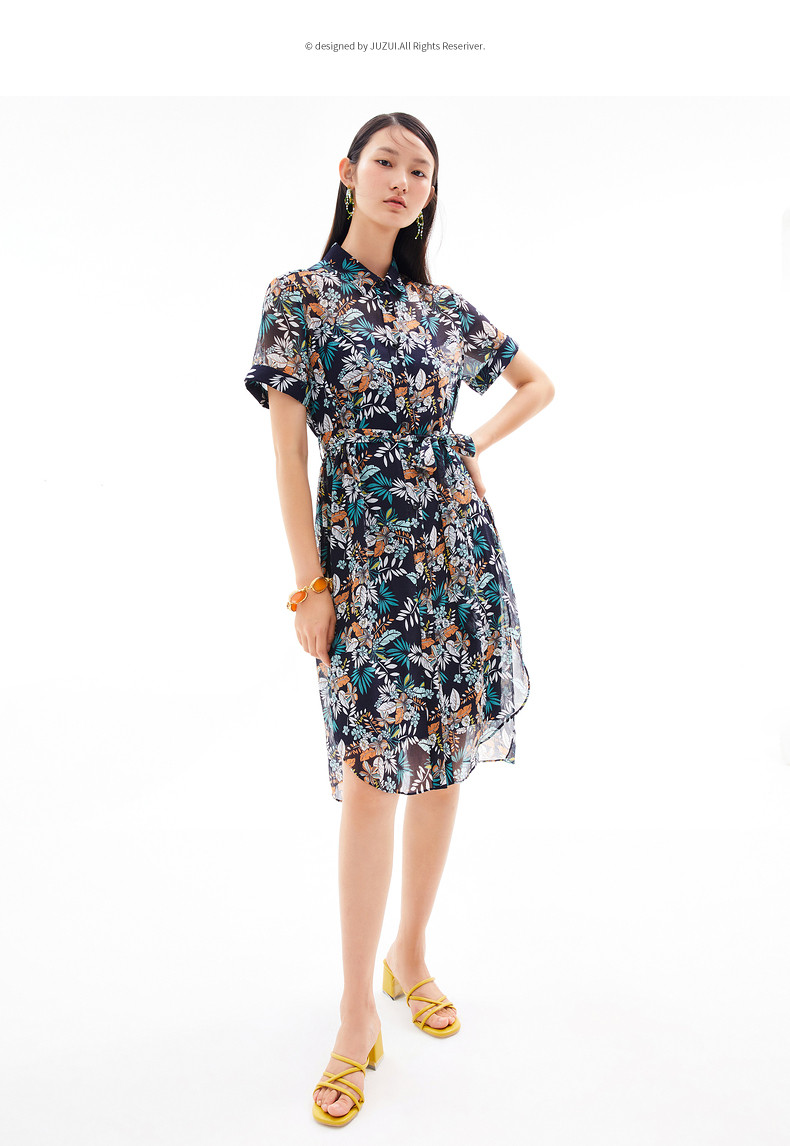 首页 > 玖姿专区 > 玖姿服饰 > JUZUI/玖姿官方旗舰店2021夏季新款度假风开衩中长女雪纺连衣裙