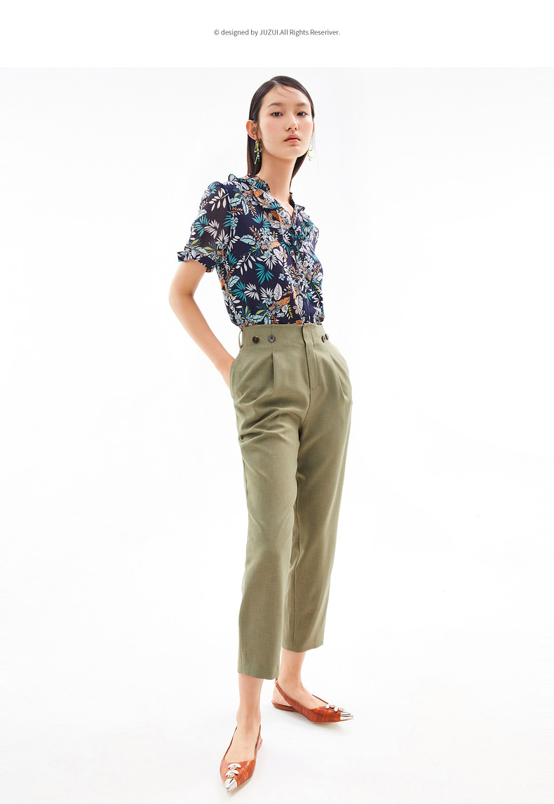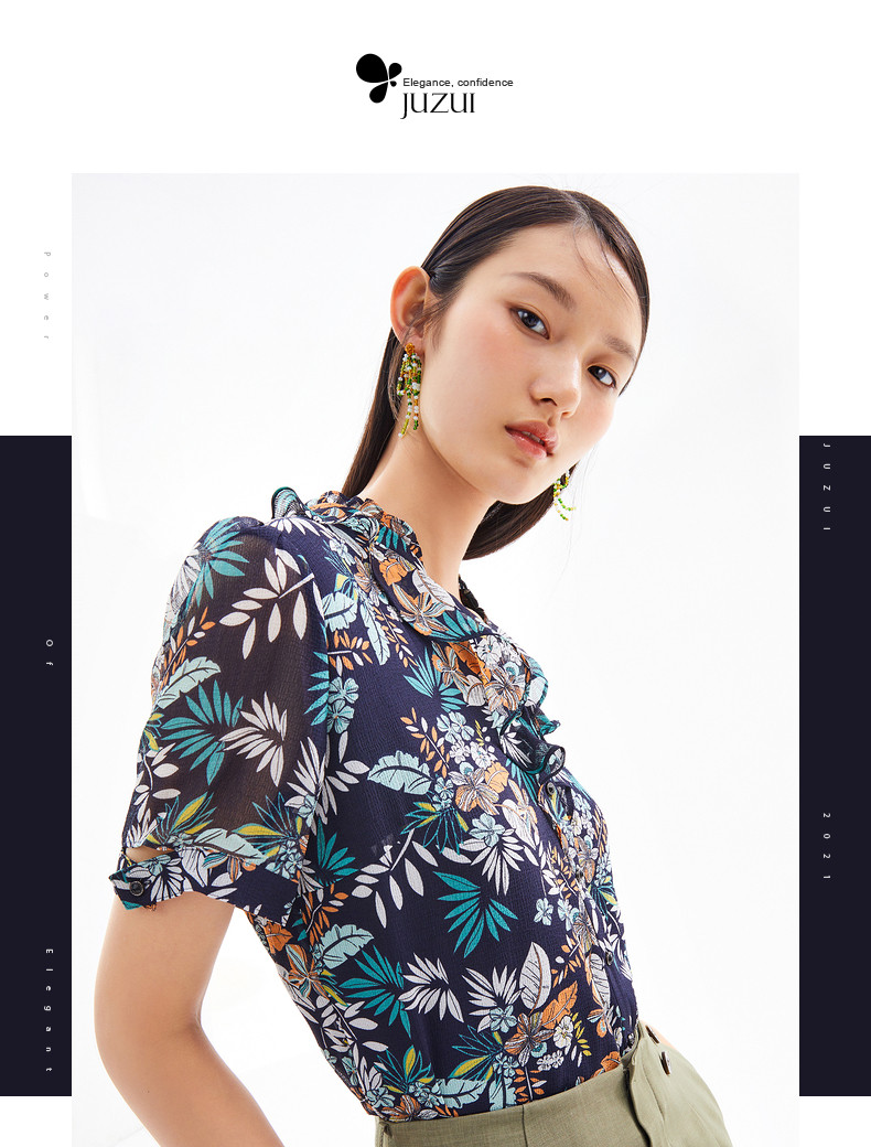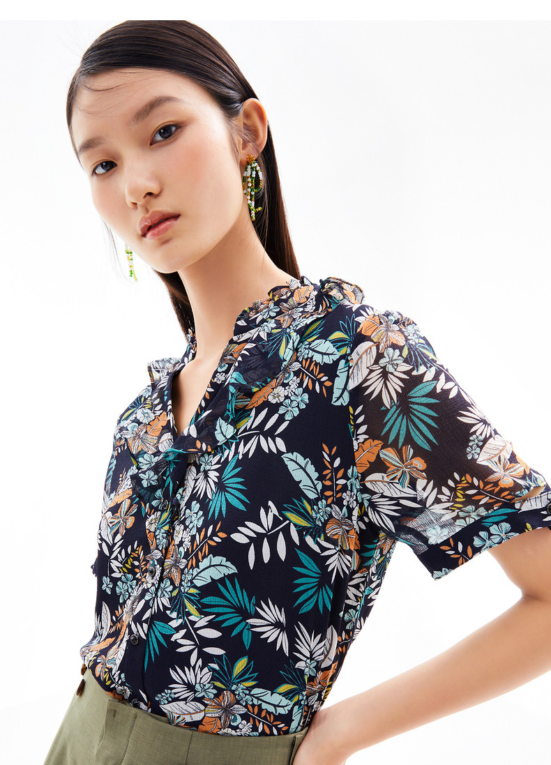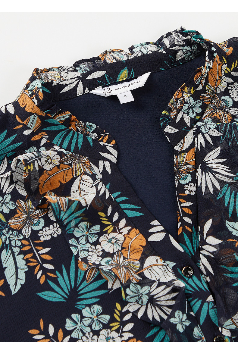 首页 > 玖姿专区 > 玖姿服饰 > JUZUI/玖姿官方旗舰店2021夏季新款度假风印花V字领飘逸女雪纺衫