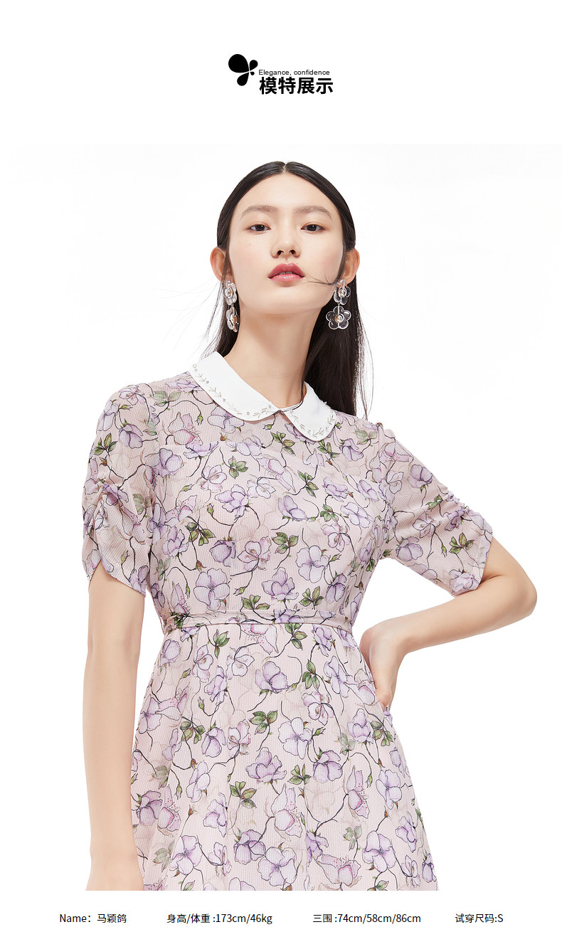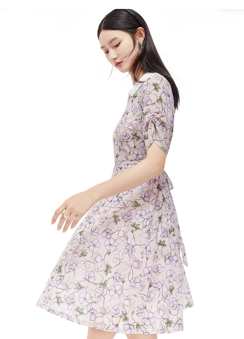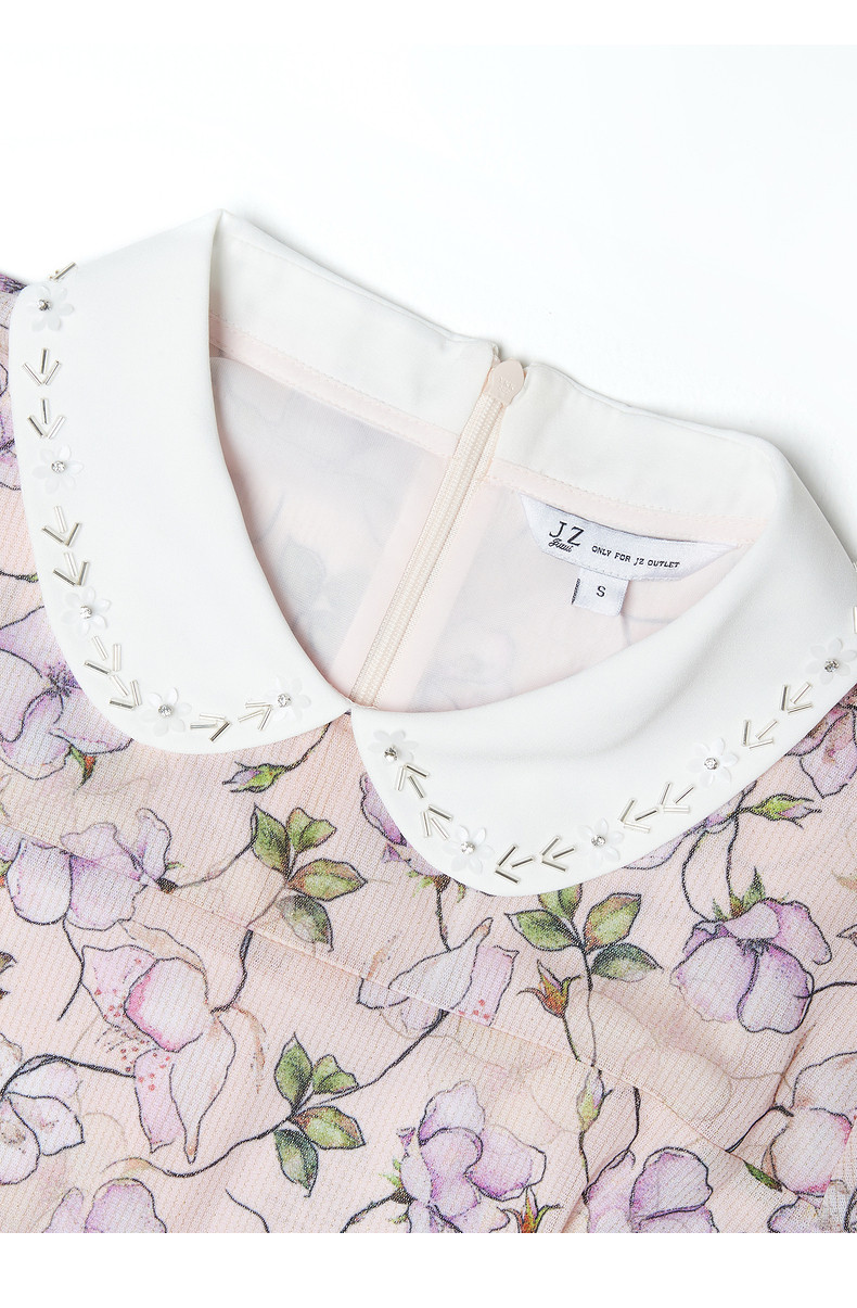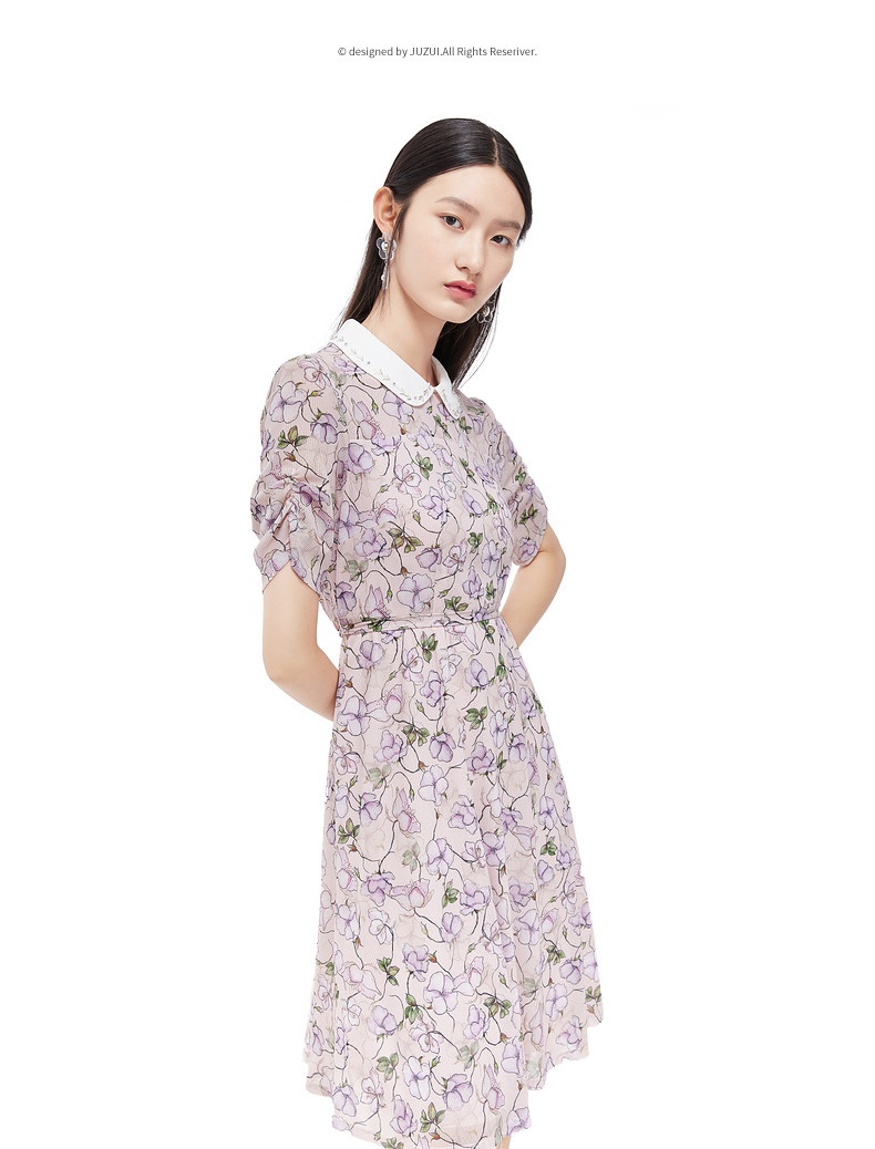 首页 > 玖姿专区 > 玖姿服饰 > JUZUI/玖姿官方旗舰店2021夏季新款翻领钉珠印花中长收腰女连衣裙