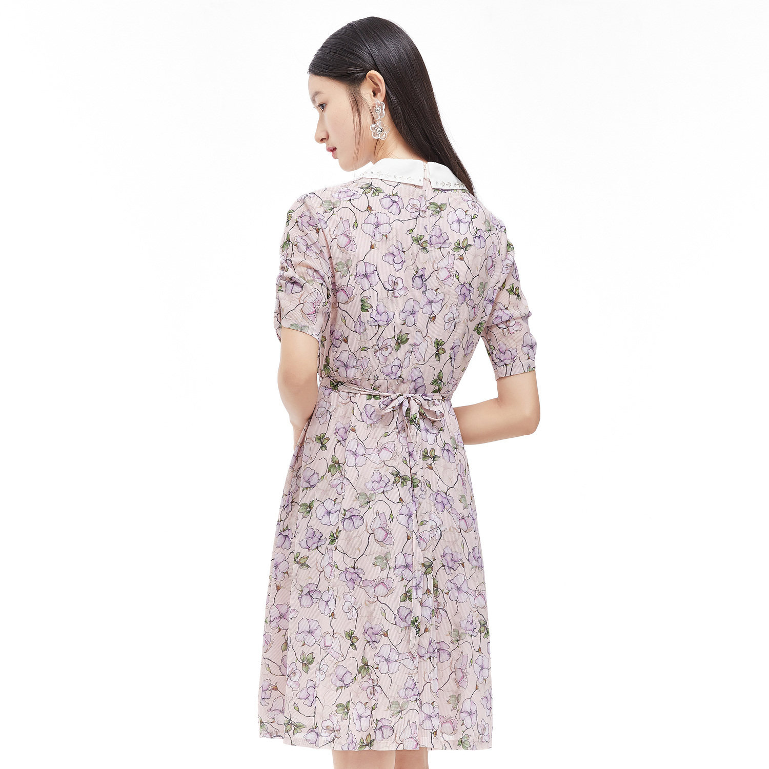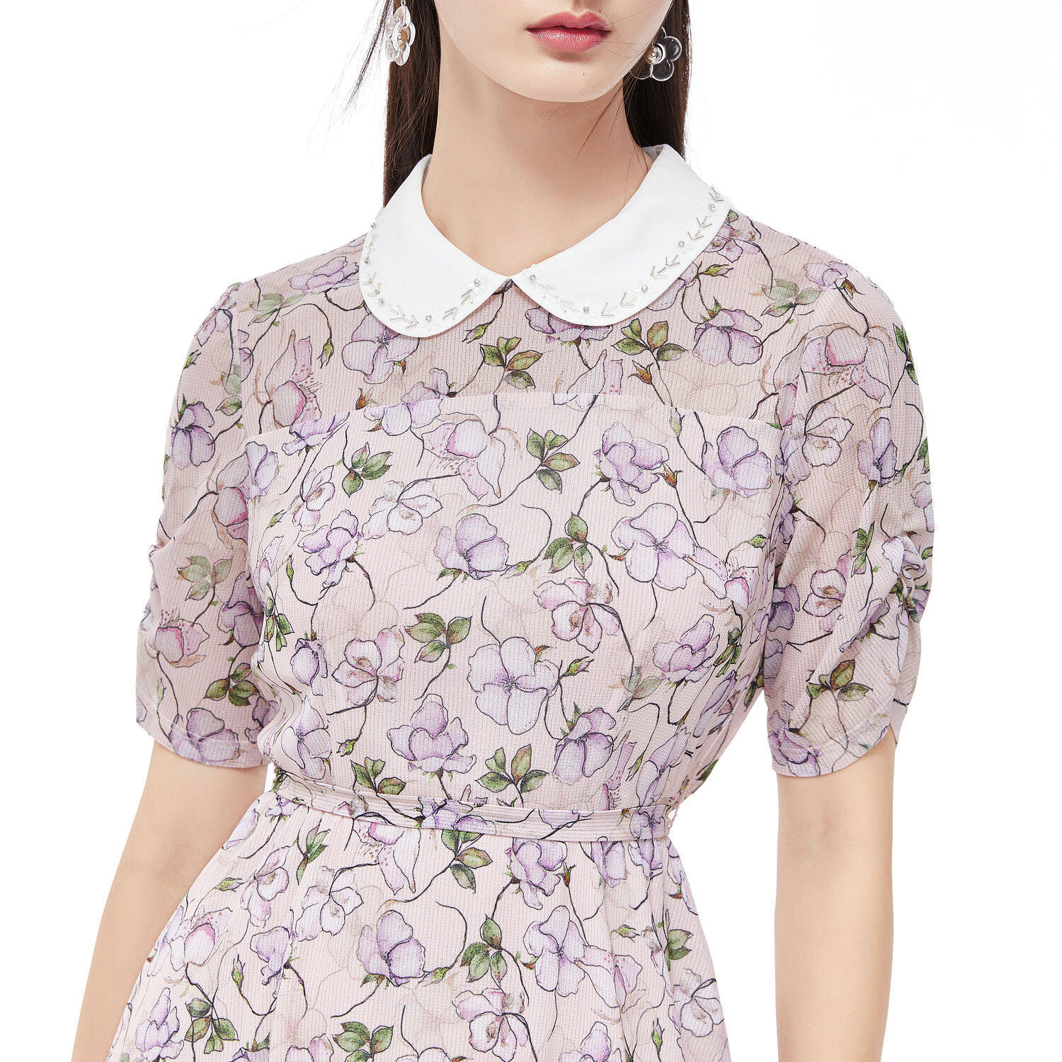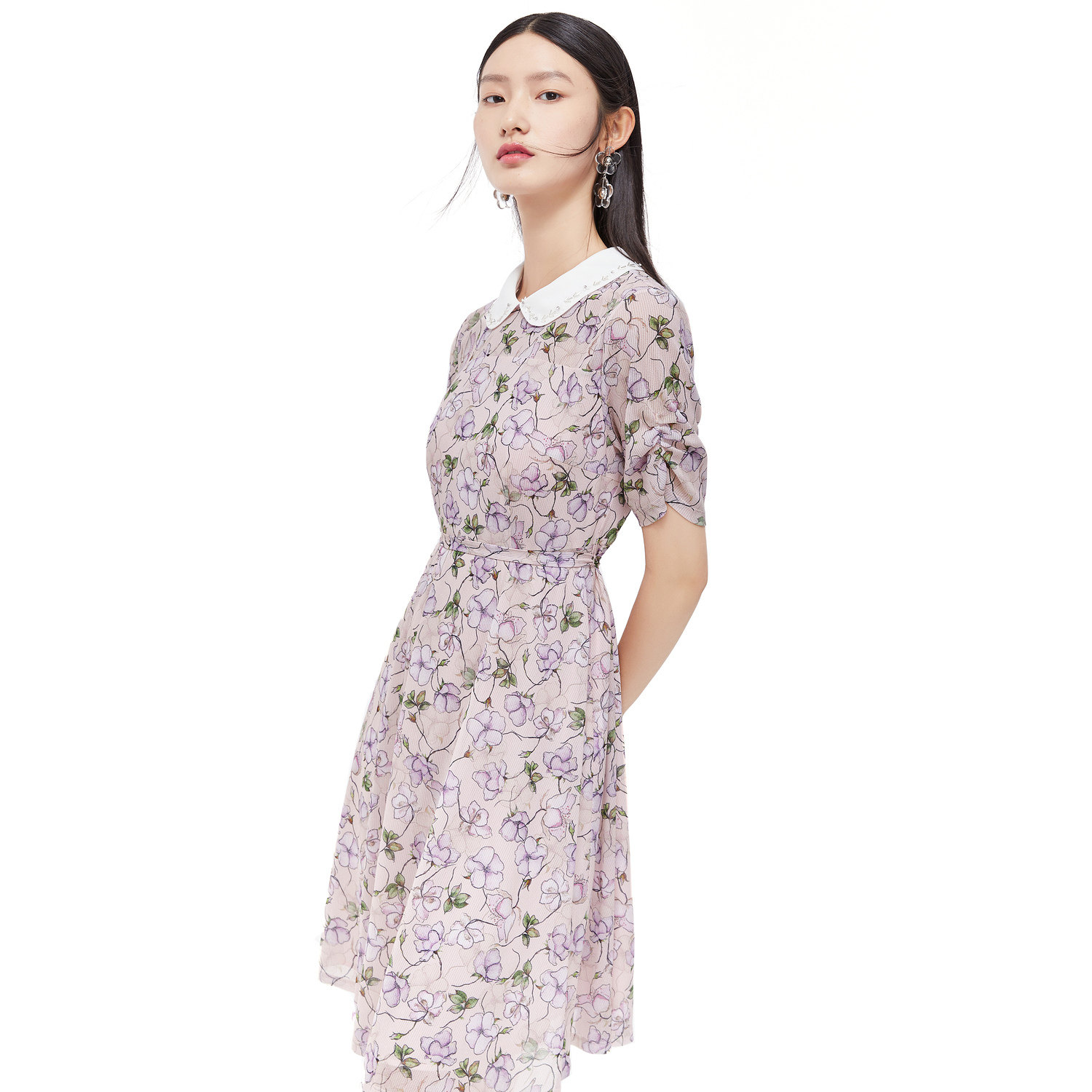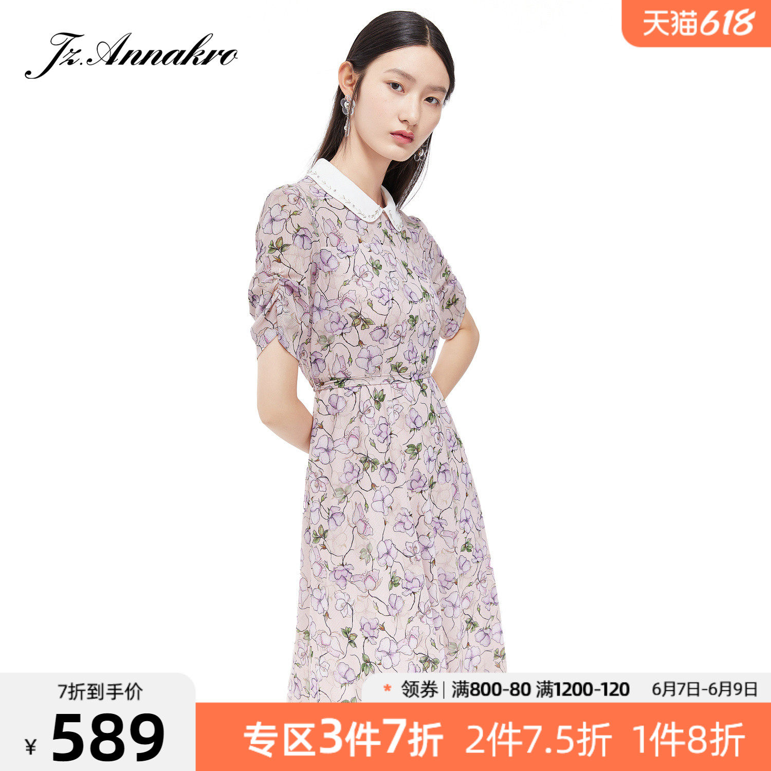 首页 > 玖姿专区 > 玖姿服饰 > JUZUI/玖姿官方旗舰店2021夏季新款翻领钉珠印花中长收腰女连衣裙