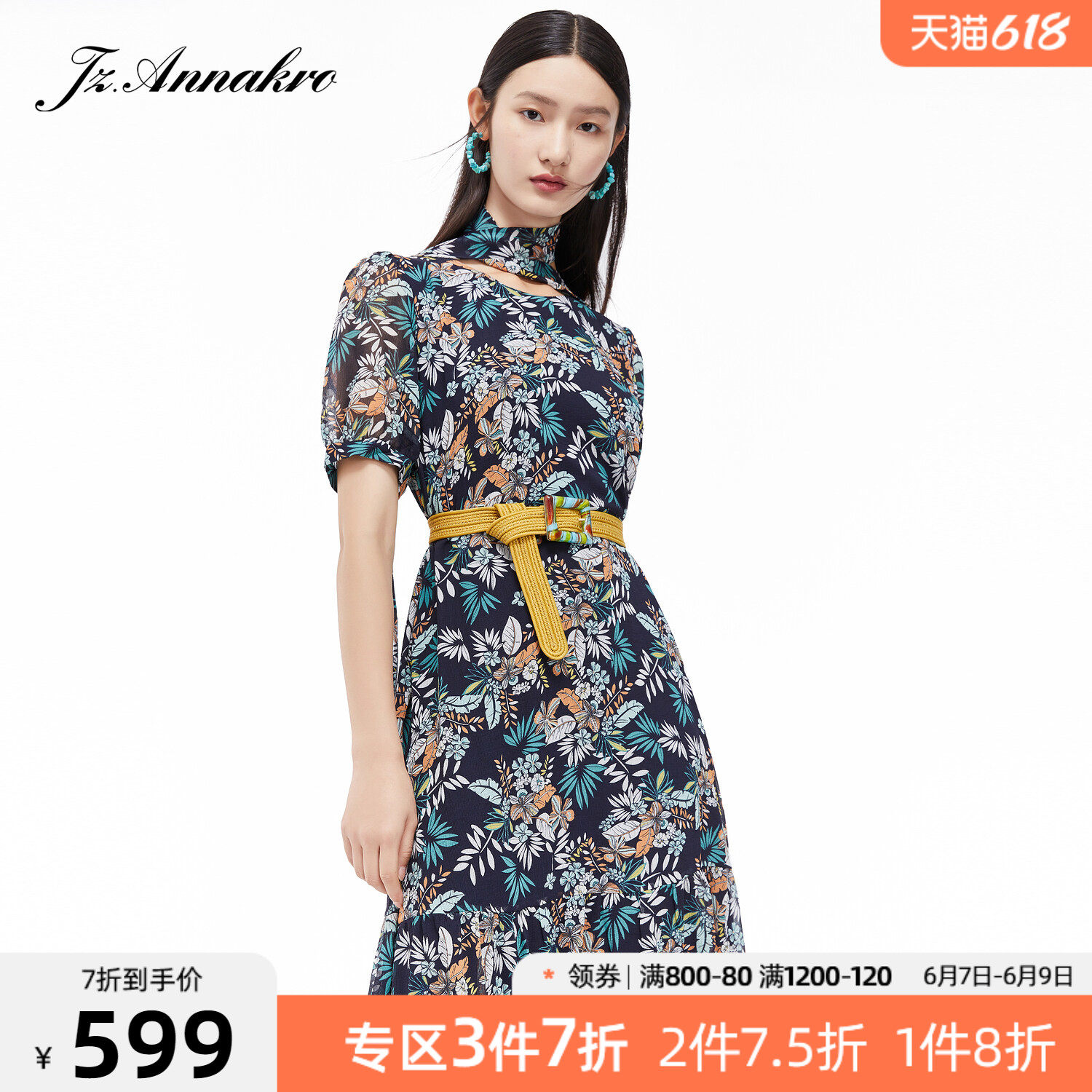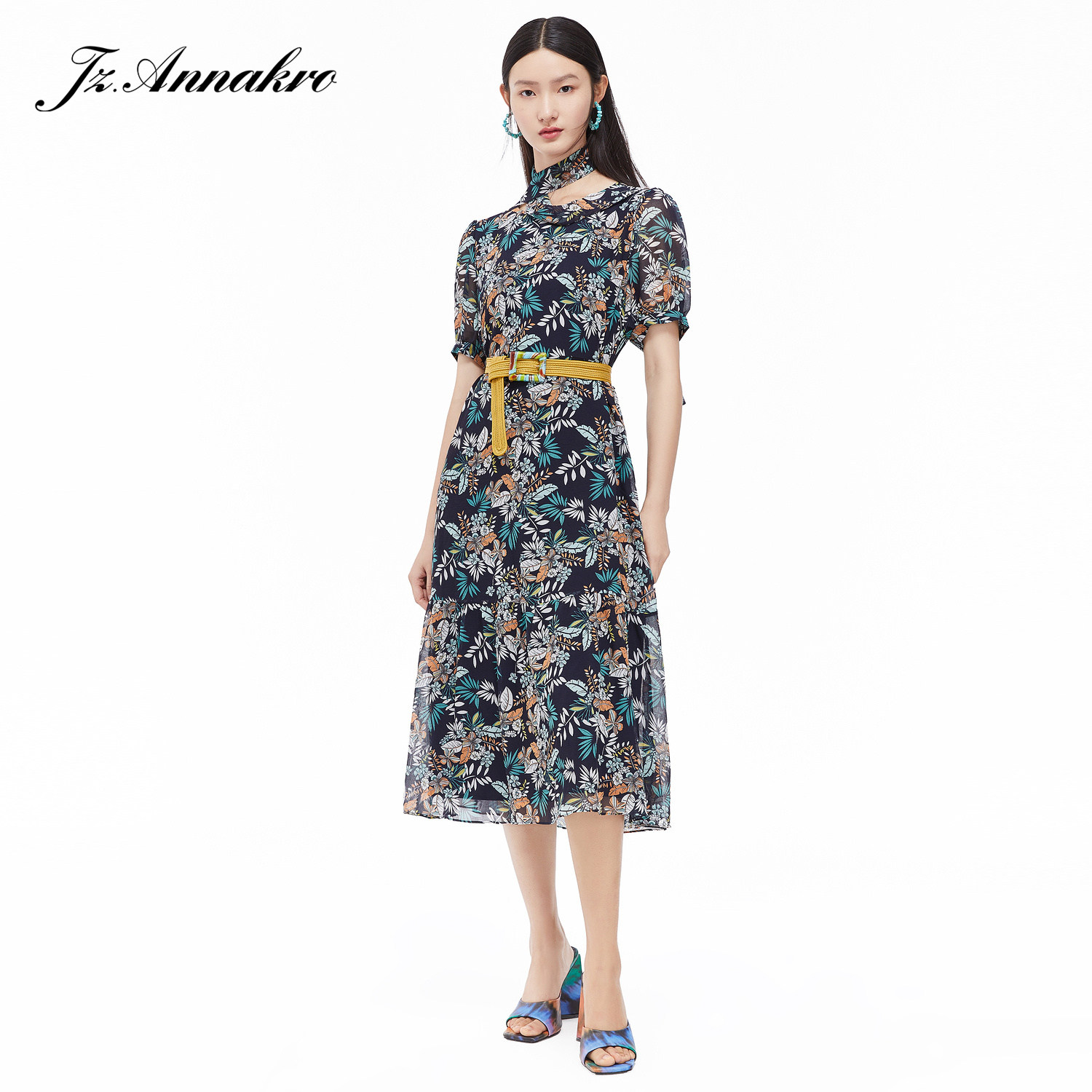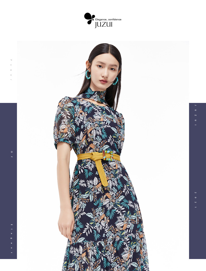 首页 > 玖姿专区 > 玖姿服饰 > JUZUI/玖姿官方旗舰店2021夏季新款优雅度假风气质女雪纺连衣裙