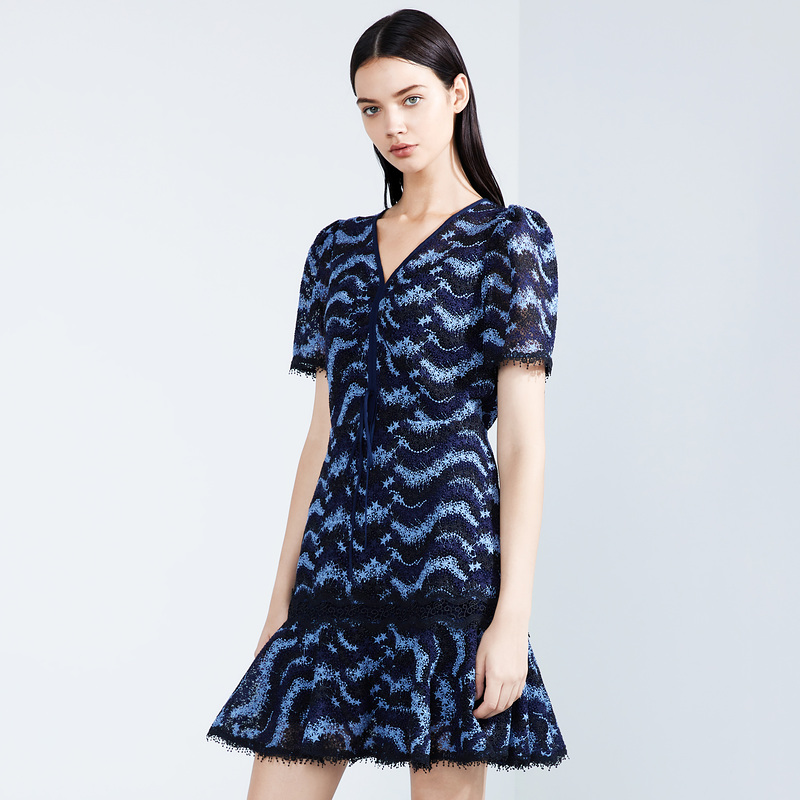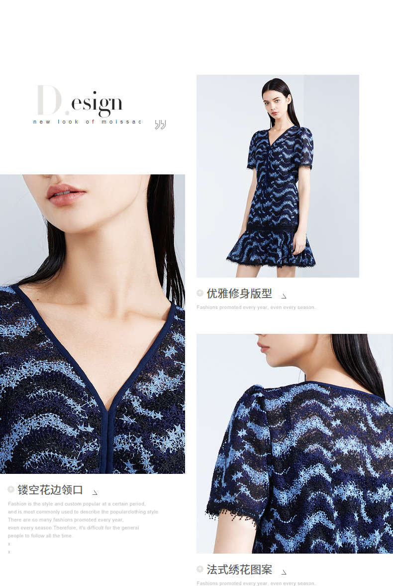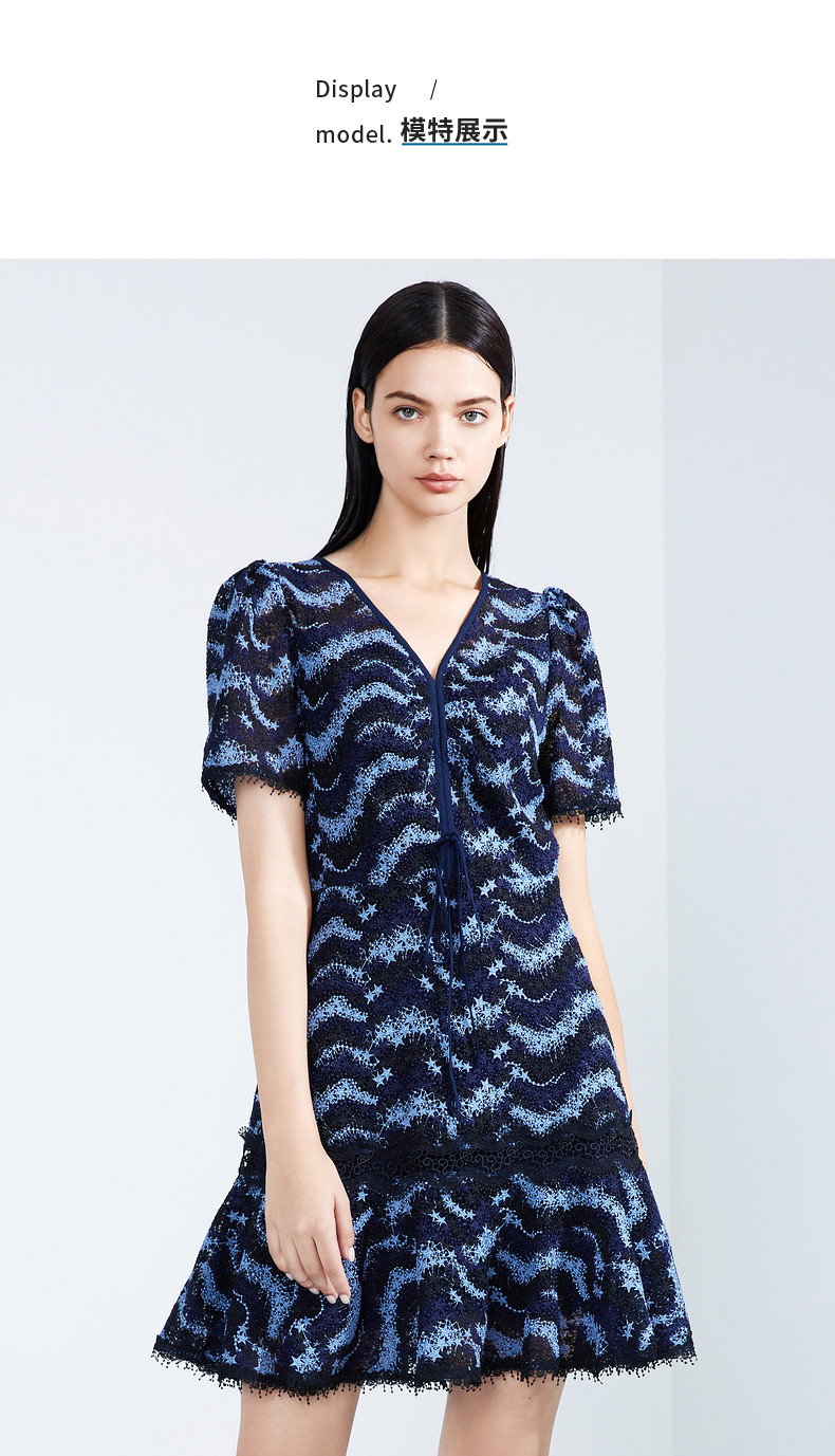 首页 > 玖姿专区 > 玖姿服饰 > MOISSAC/摩萨克2021夏季新款条纹蕾丝星星气质收腰中长款女连衣裙