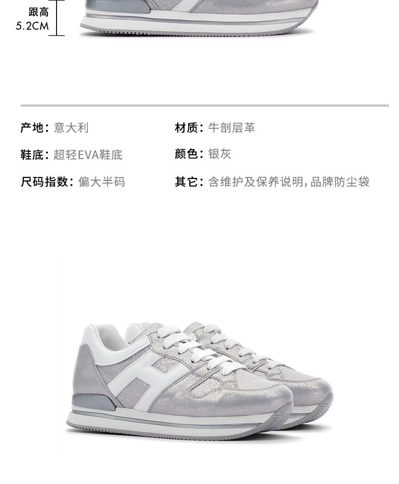 【春夏特惠】HOGAN女鞋2021春夏新品H222系列厚底双杠小白鞋