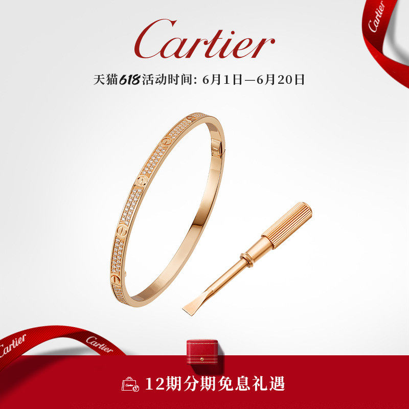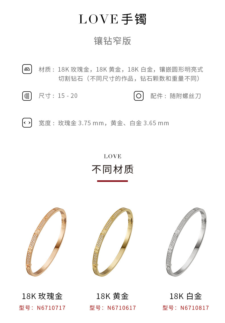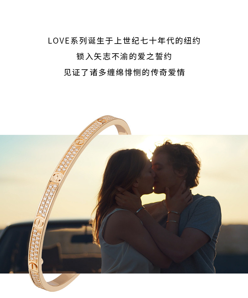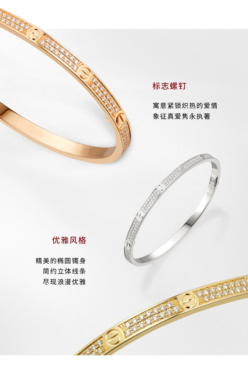 Cartier卡地亚LOVE系列 玫瑰金黄金白金铺镶钻 窄版手镯