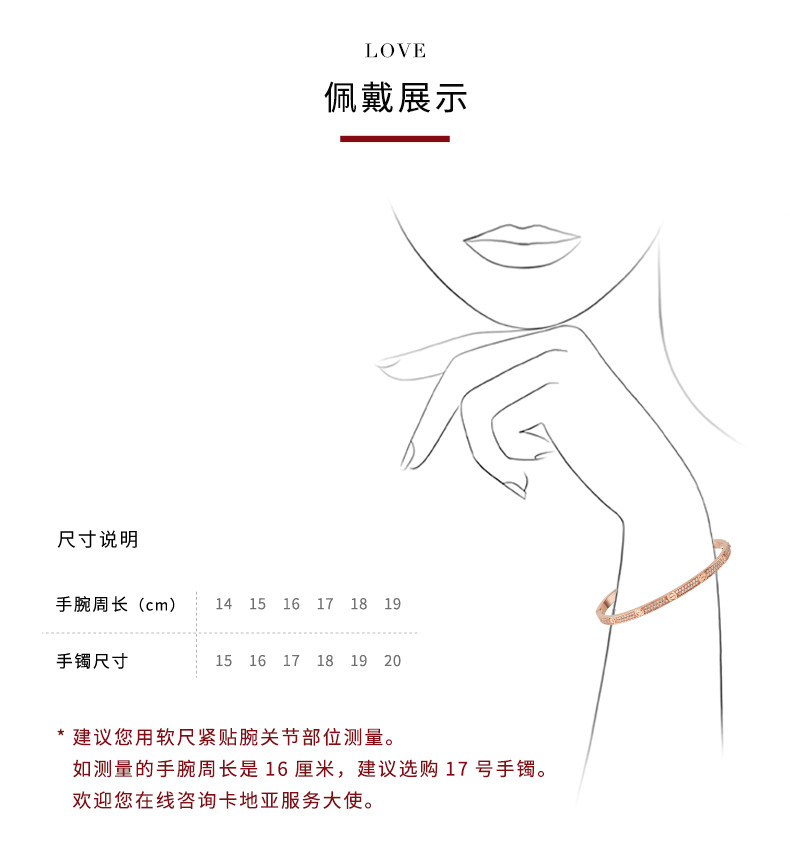 首页 > 周大福专区 > 周大福 > Cartier卡地亚LOVE系列 玫瑰金黄金白金铺镶钻 窄版手镯