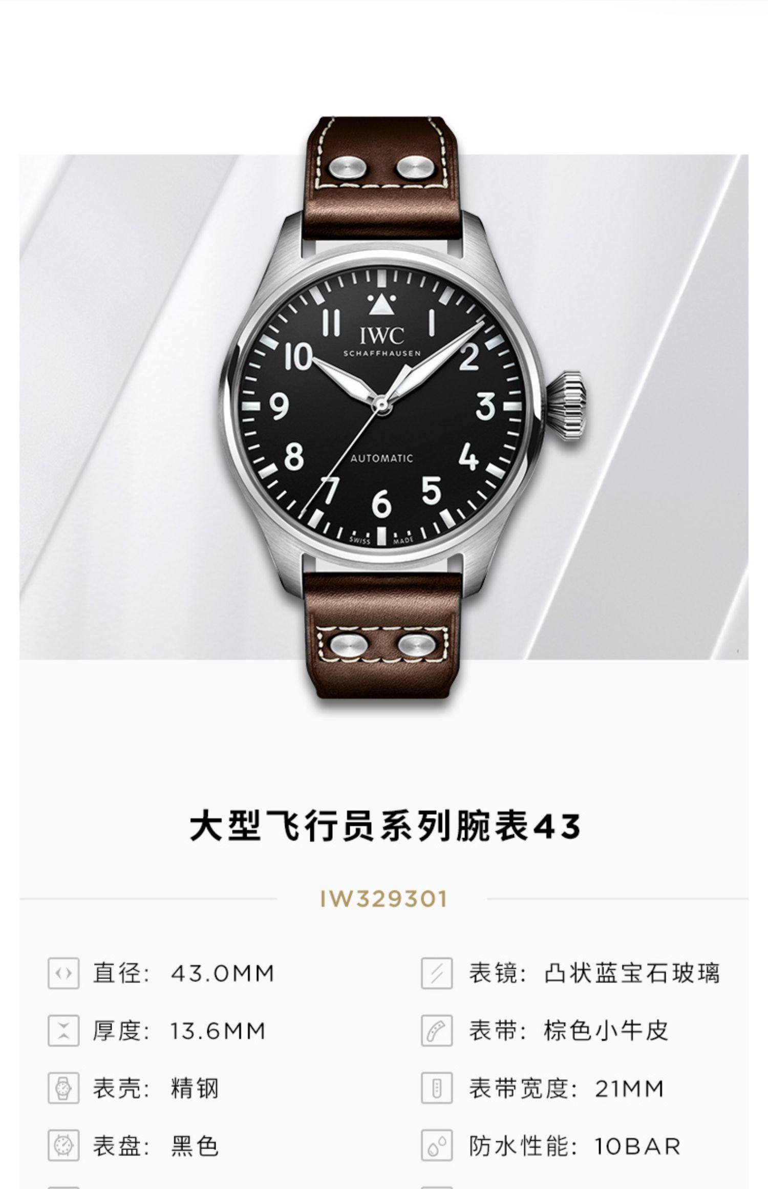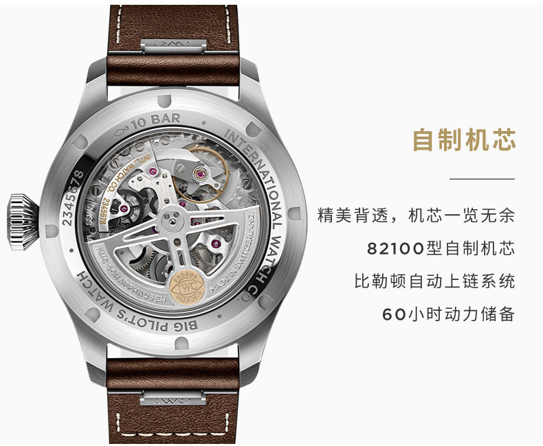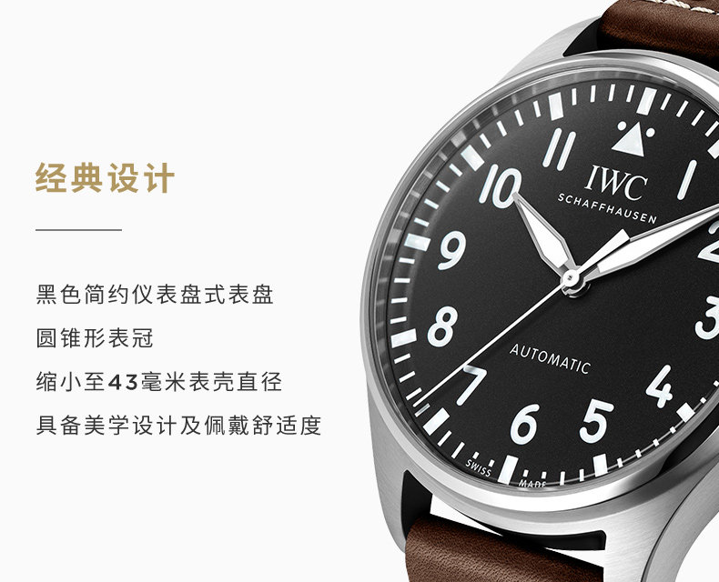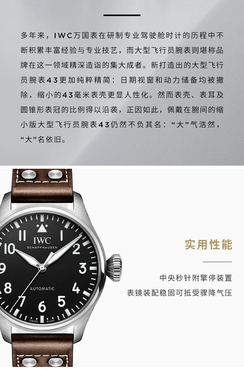 IWC万国官方旗舰大型飞行员系列腕表43棕色小牛皮表带手表男