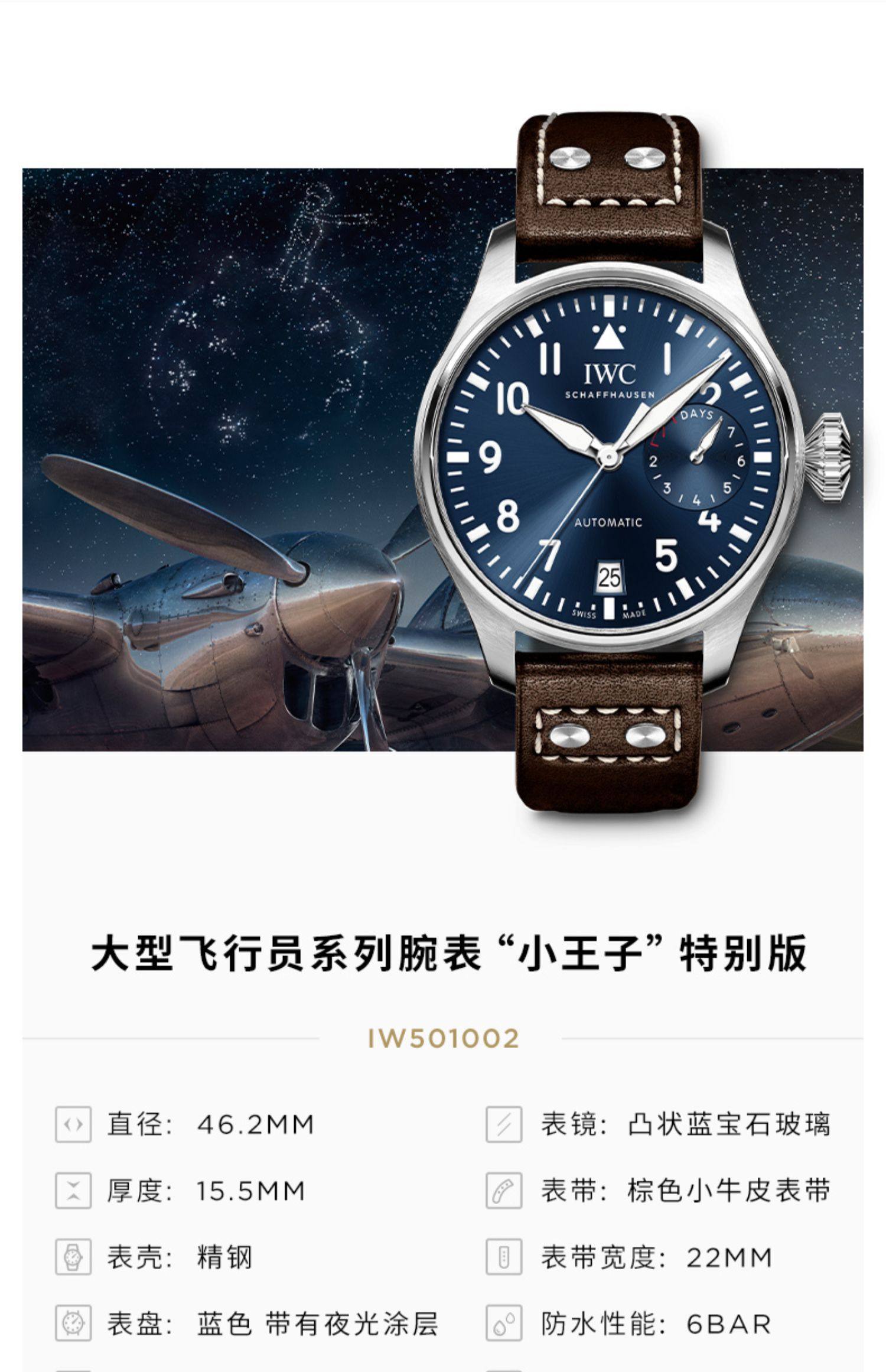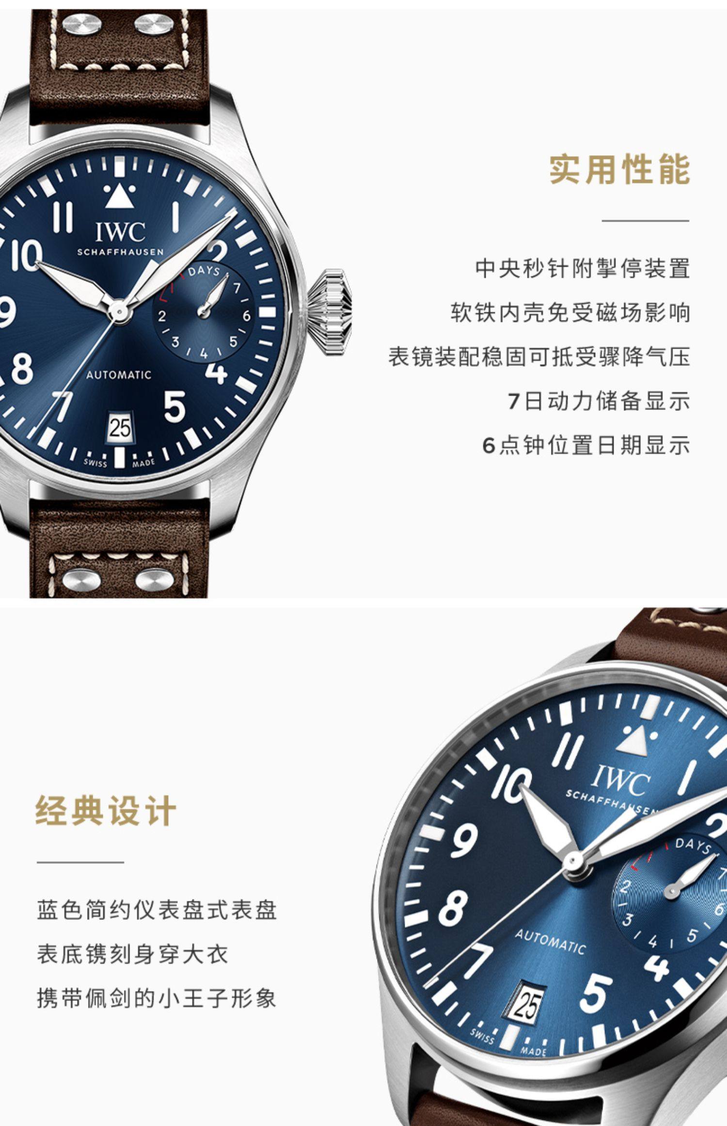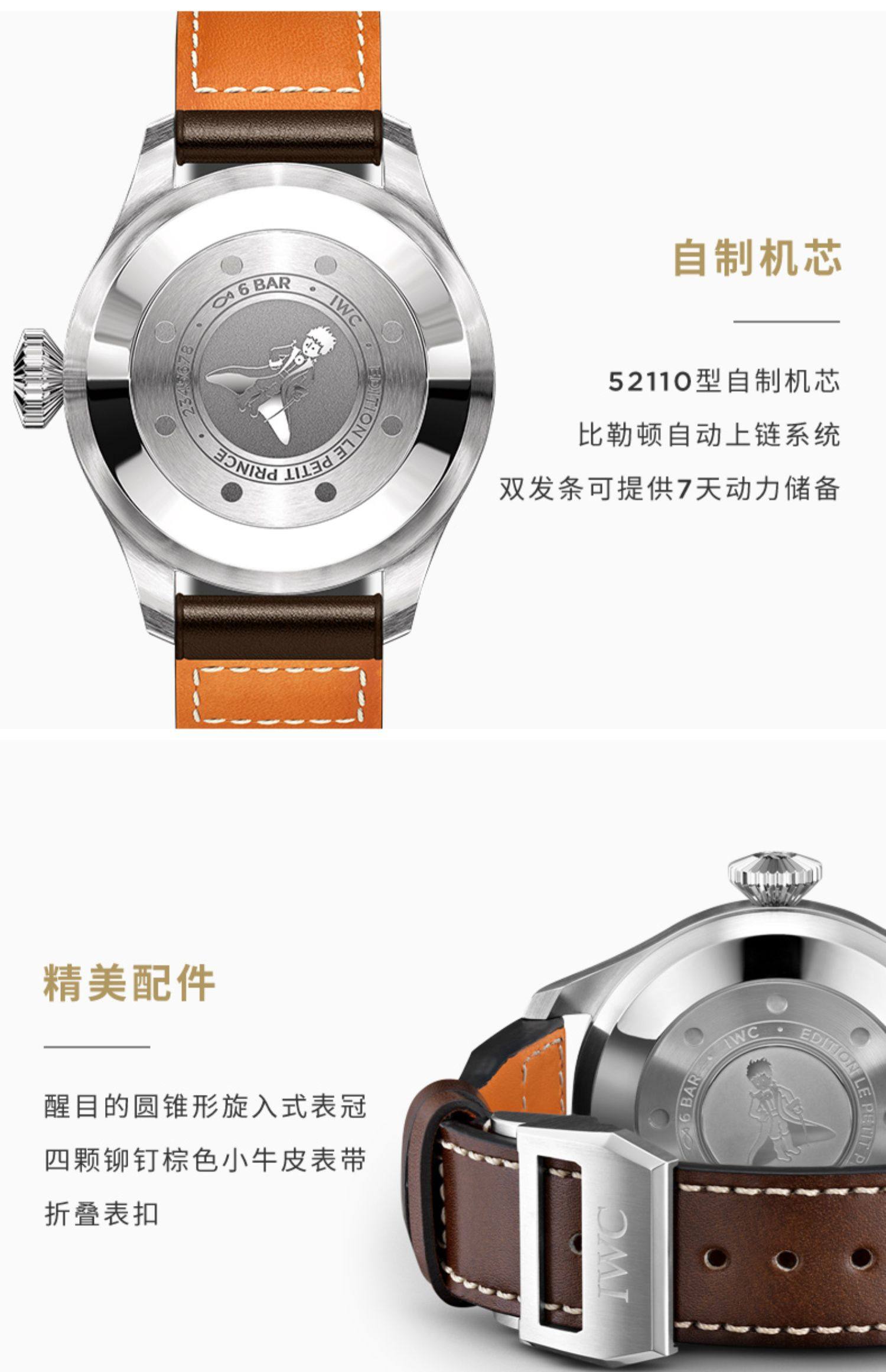 IWC万国官方旗舰大型飞行员系列“小王子”特别版小牛皮手表男