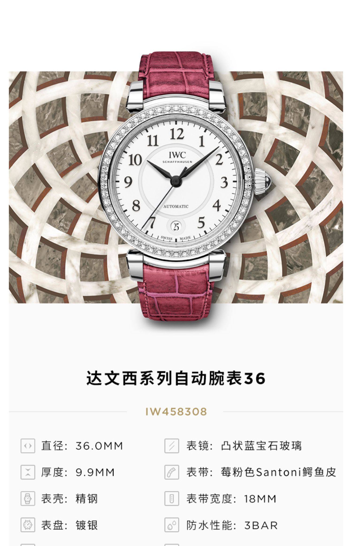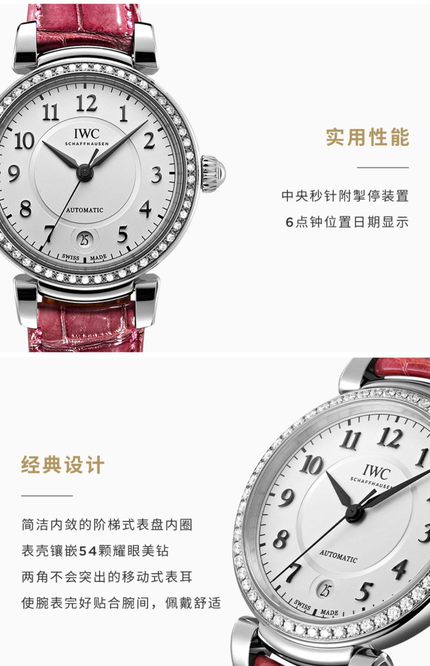 IWC万国手表官方旗舰达文西系列自动腕表36鳄鱼皮表带手表女