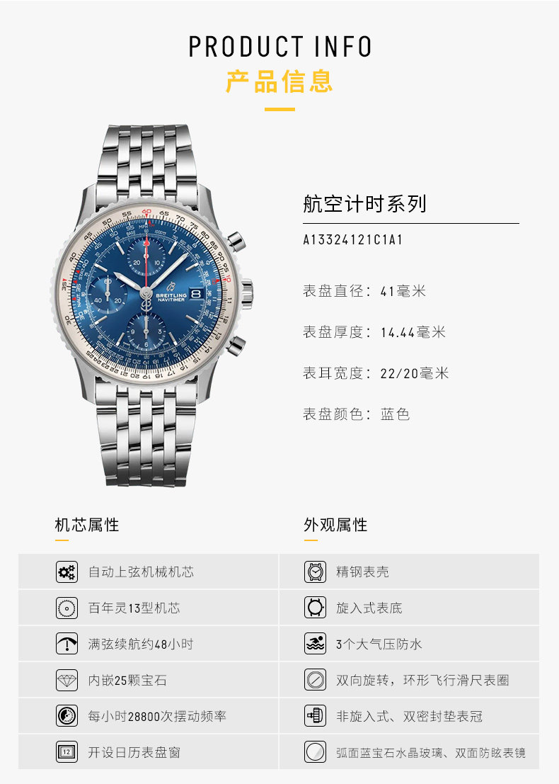 首页 > 手表专区 > 百年灵航空计时瑞士全自动机械手表男女款简约气质官方正品腕表