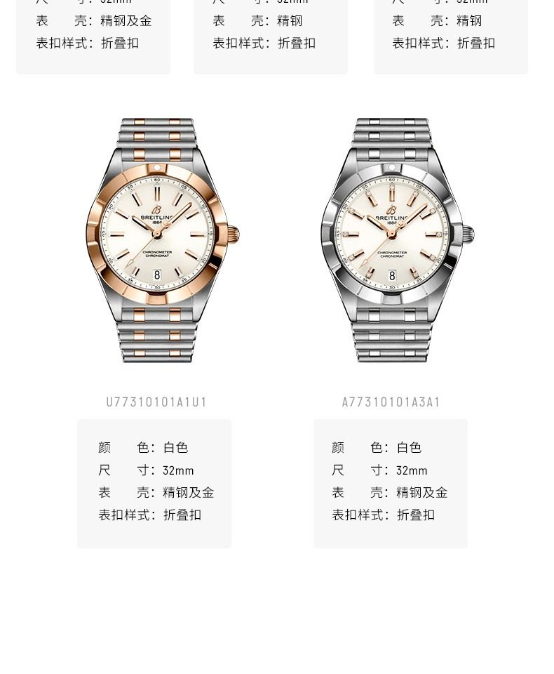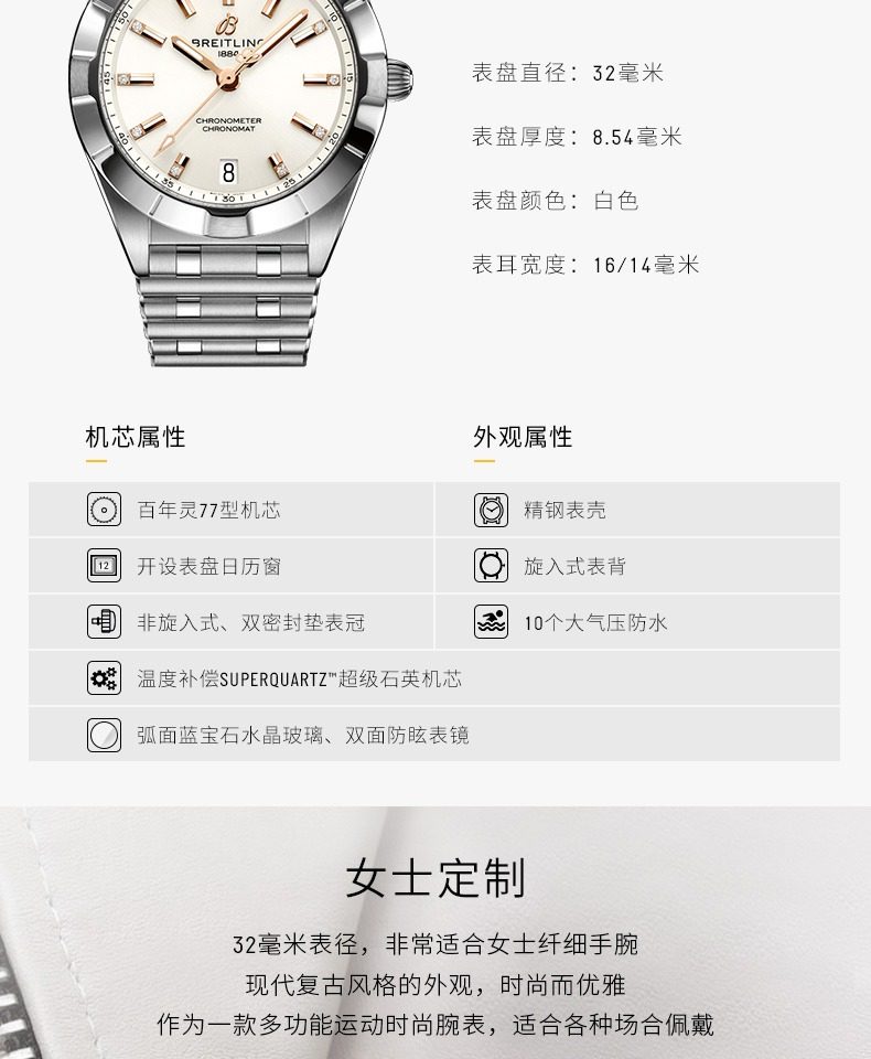 首页 > 手表专区 > 百年灵机械计时腕表32mm瑞士腕表18K金女款运动时尚新品手表