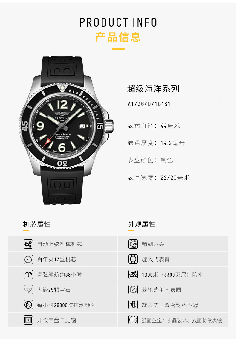 首页 > 手表专区 > 百年灵超级海洋瑞士手表男全自动机械表防水男女款正品中国机长表
