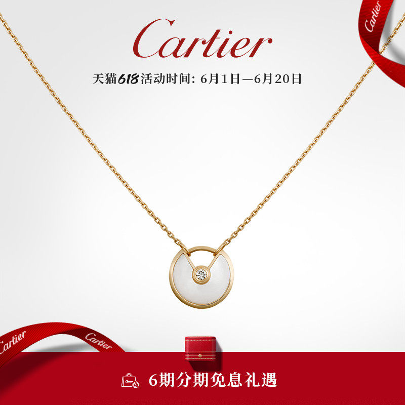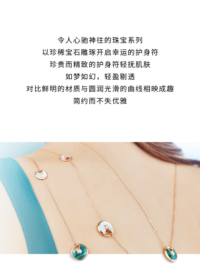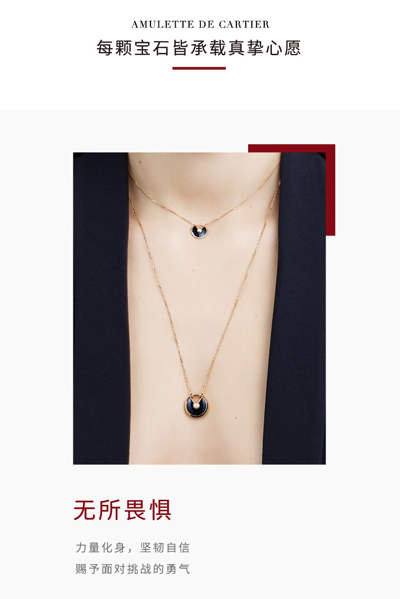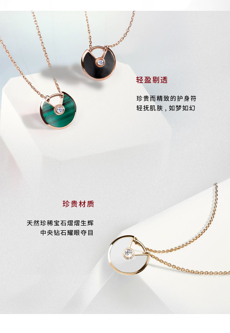 Cartier卡地亚Amulette系列 玫瑰金黄金宝石钻石项链