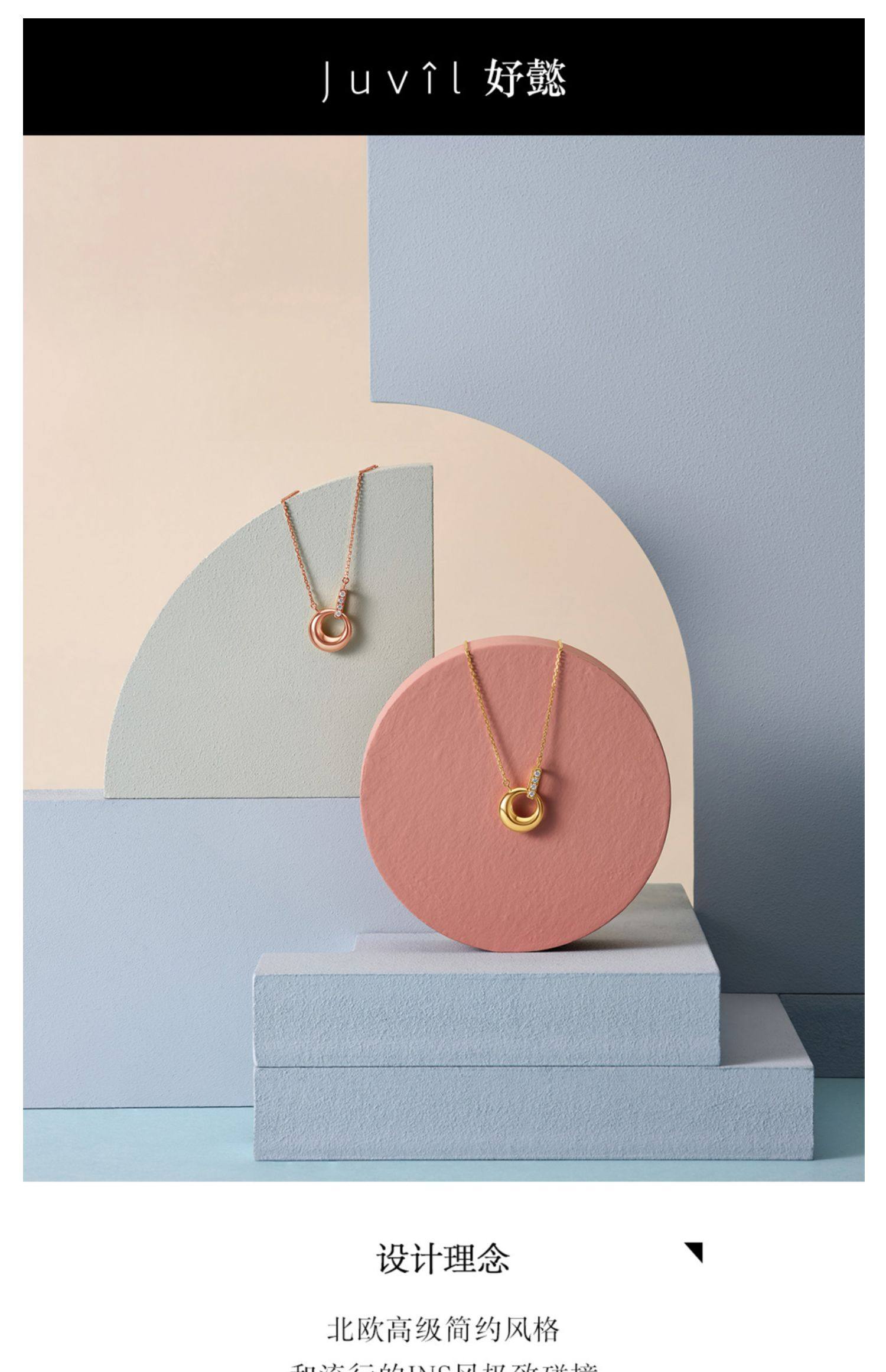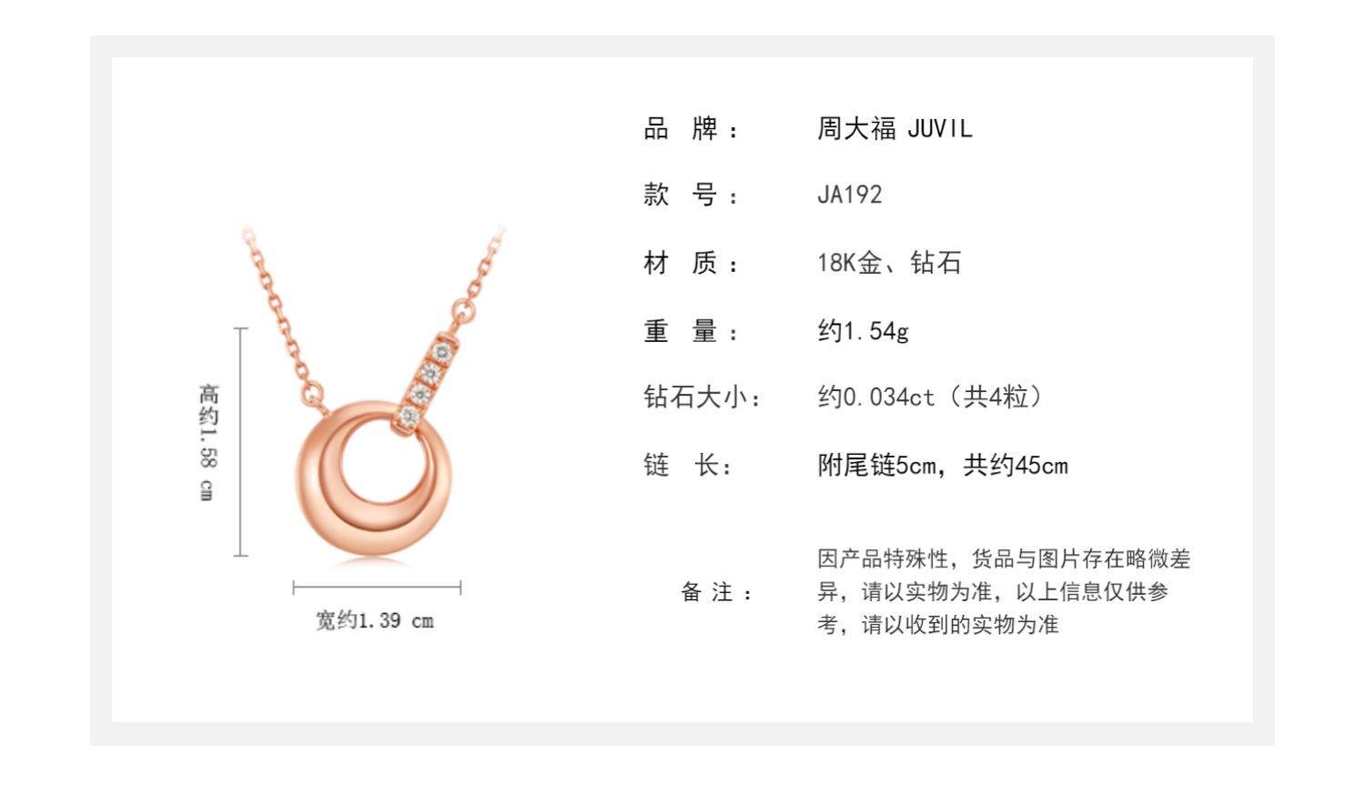 周大福JUVIL INS风18K玫瑰金镶钻项链吊坠JA192送礼精选