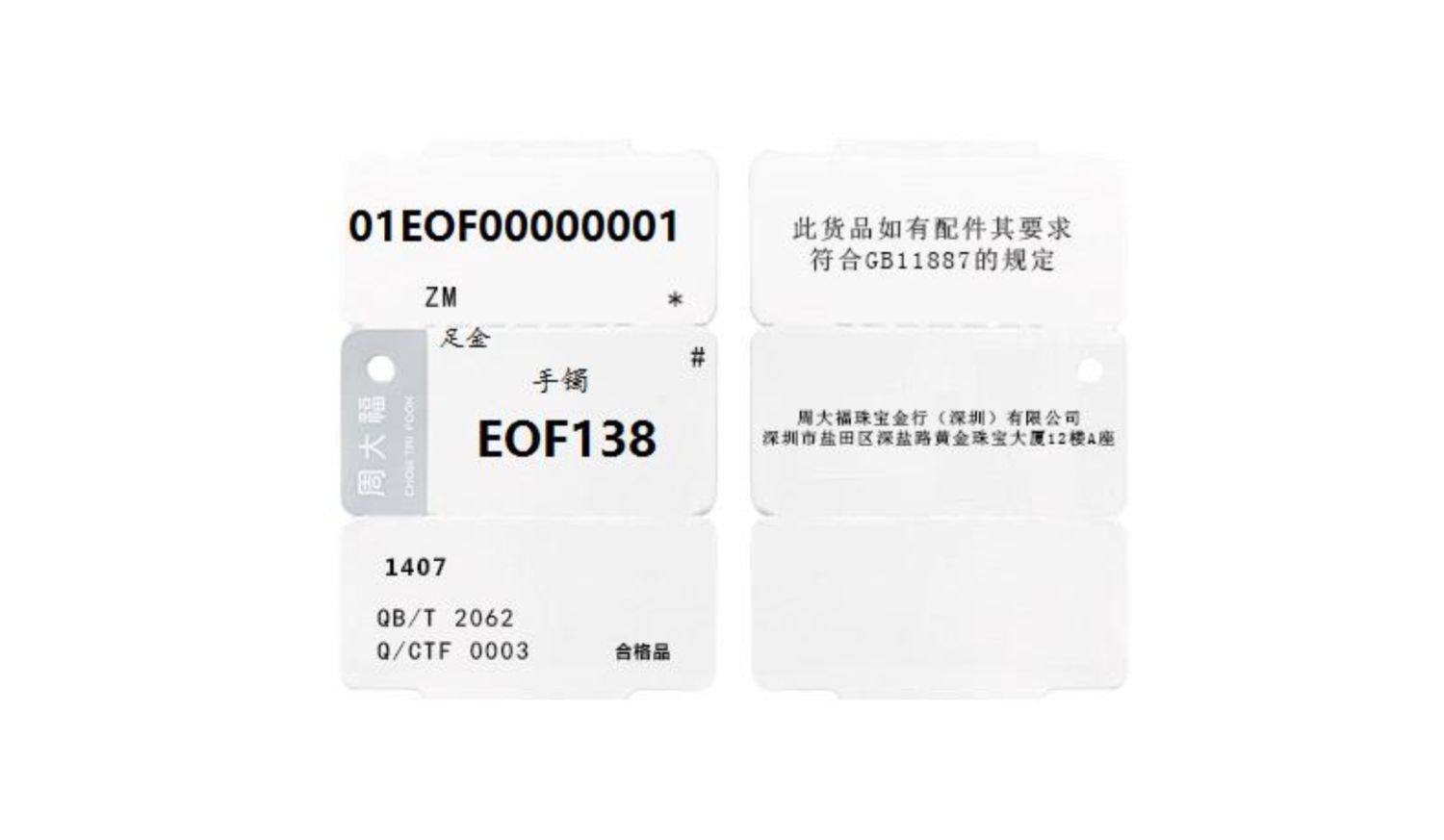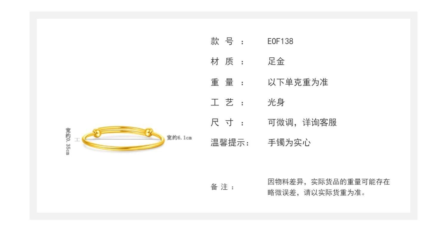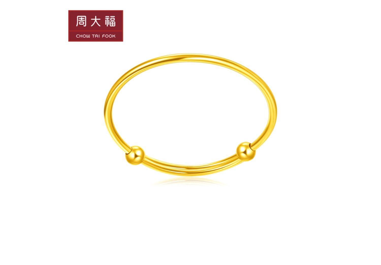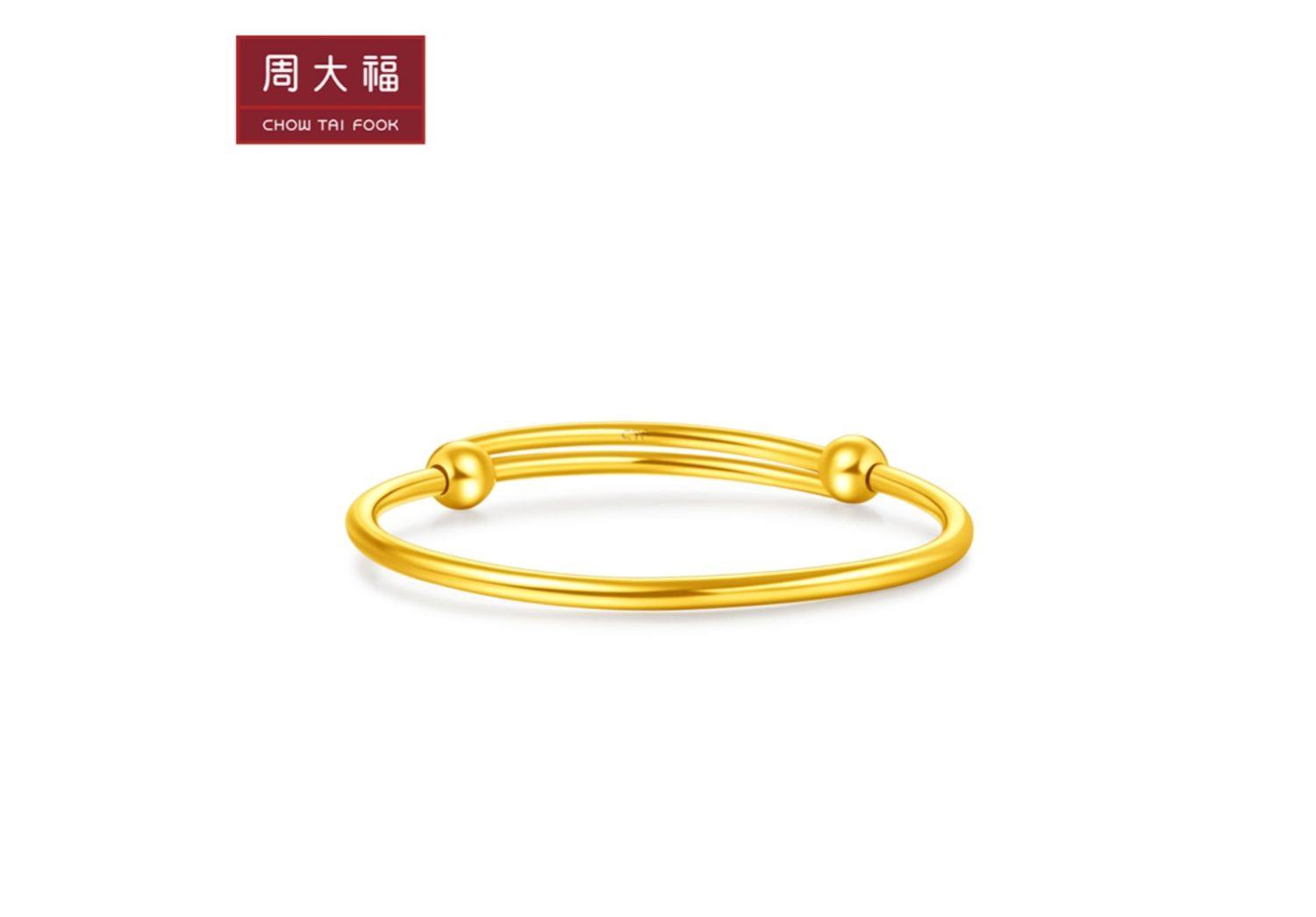 新款 周大福珠宝首饰简单几何足金黄金手镯计价EOF138