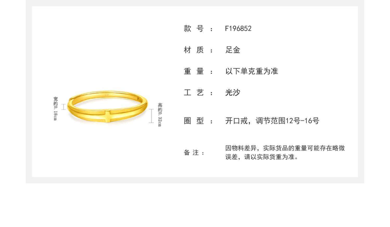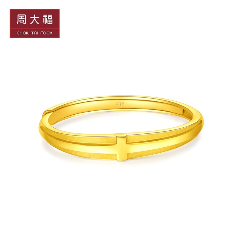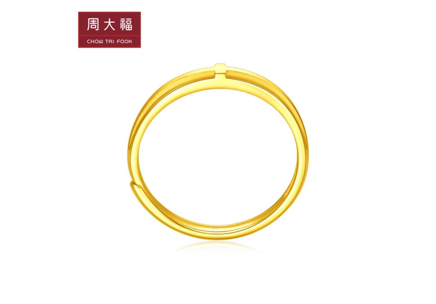 新款 周大福珠宝首饰几何十字足金黄金戒指计价EOF434