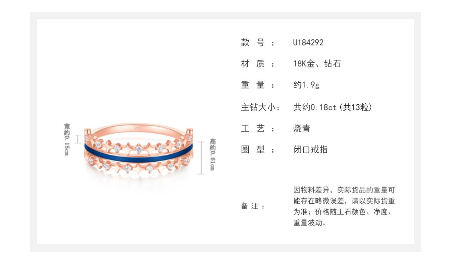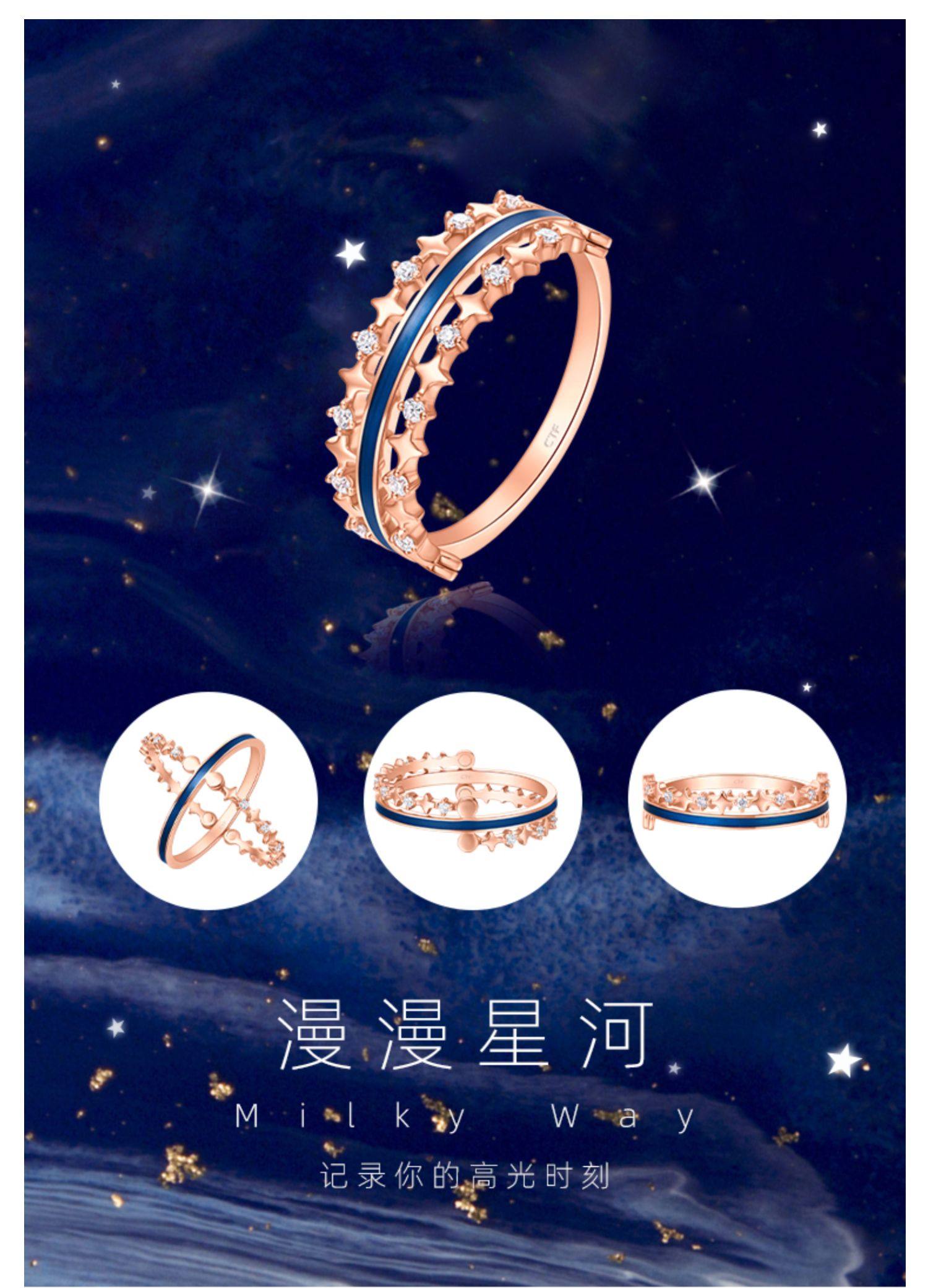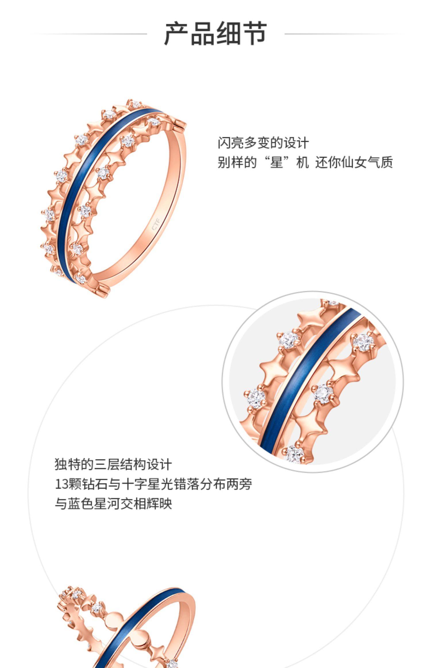 预售新款 周大福珠宝首饰漫漫星河一款多戴18K金钻石戒指U184292