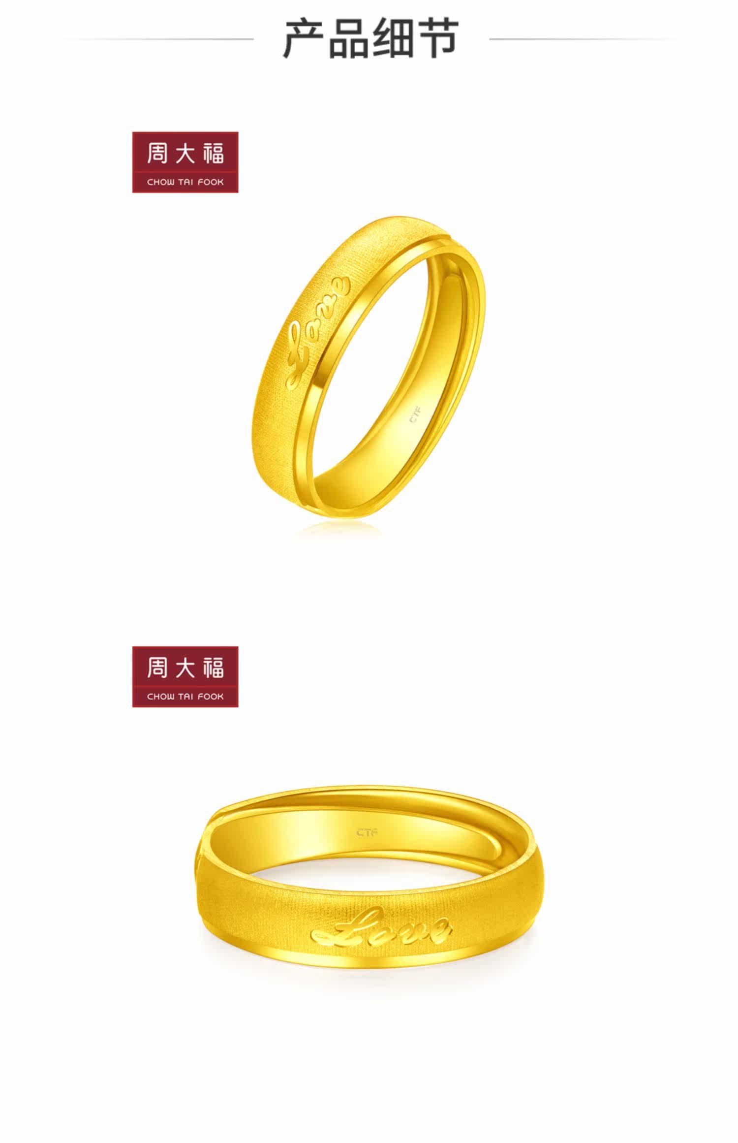 新款 周大福珠宝首饰love字母足金黄金戒指计价F214784