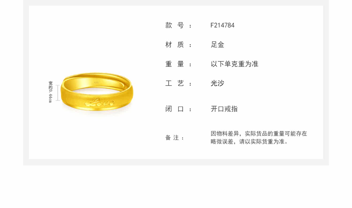 首页 > 周大福专区 > 周大福 > 新款 周大福珠宝首饰love字母足金黄金戒指计价F214784