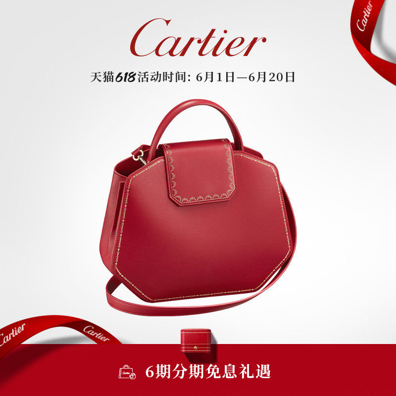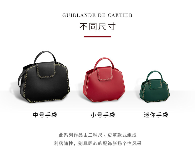 Cartier卡地亚Guirlande系列小号手袋 小牛皮镀金装饰手提包