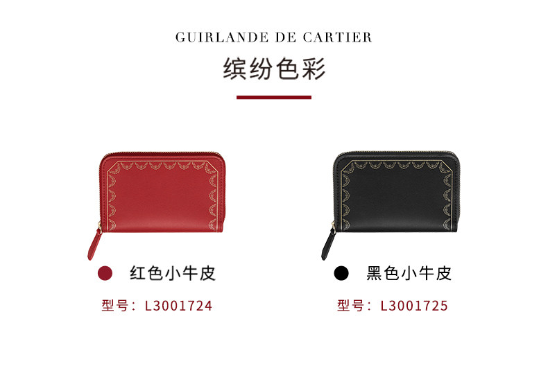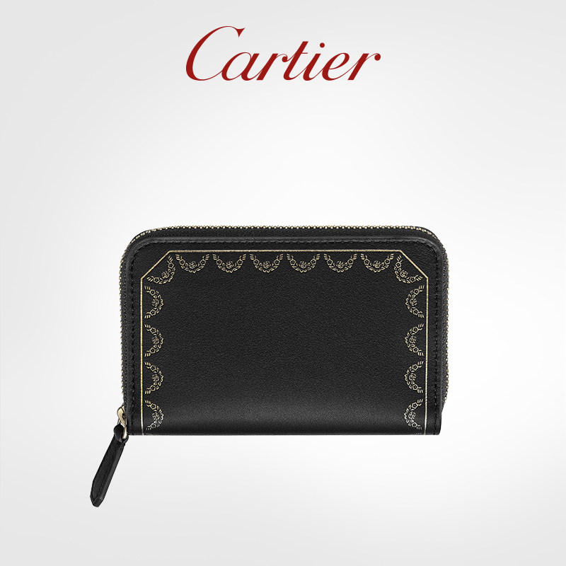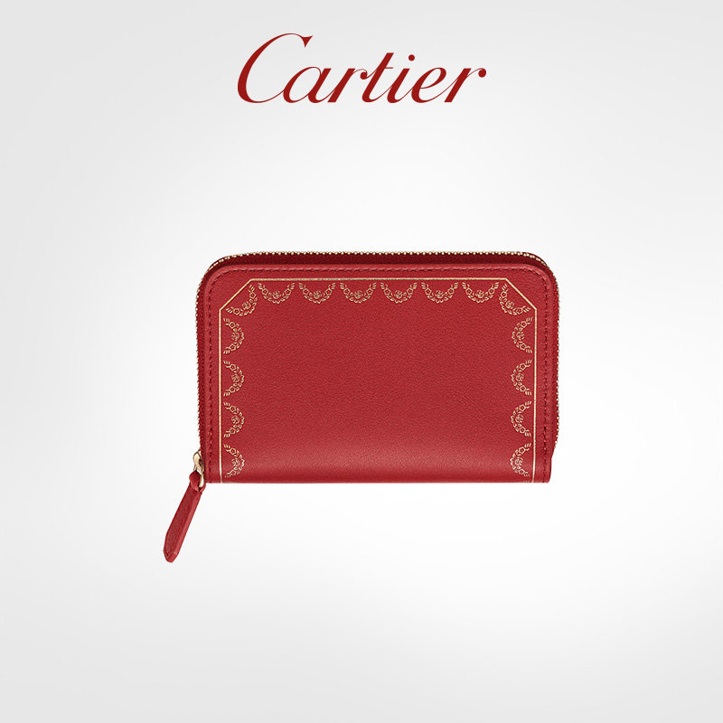 Cartier卡地亚Guirlande系列拉链卡片夹 小牛皮镀金装饰卡包