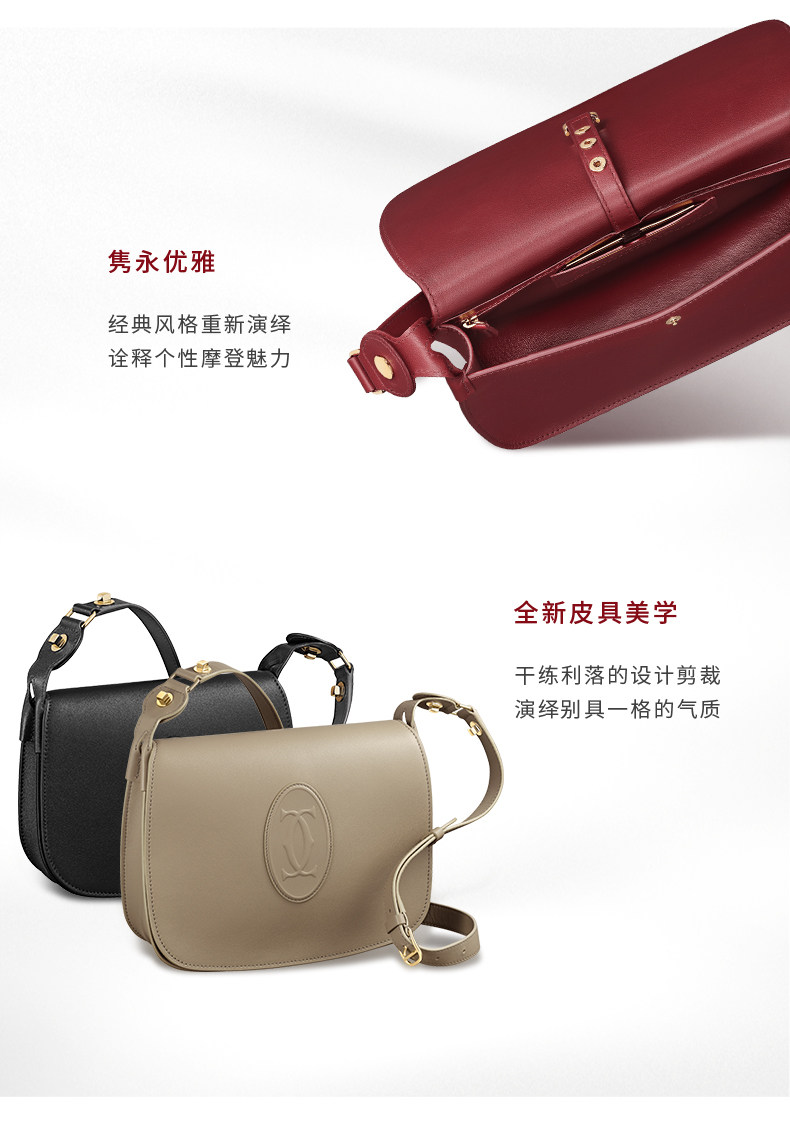 Cartier卡地亚Must系列小号马鞍包 小牛皮镀金装饰 双C标志单肩包