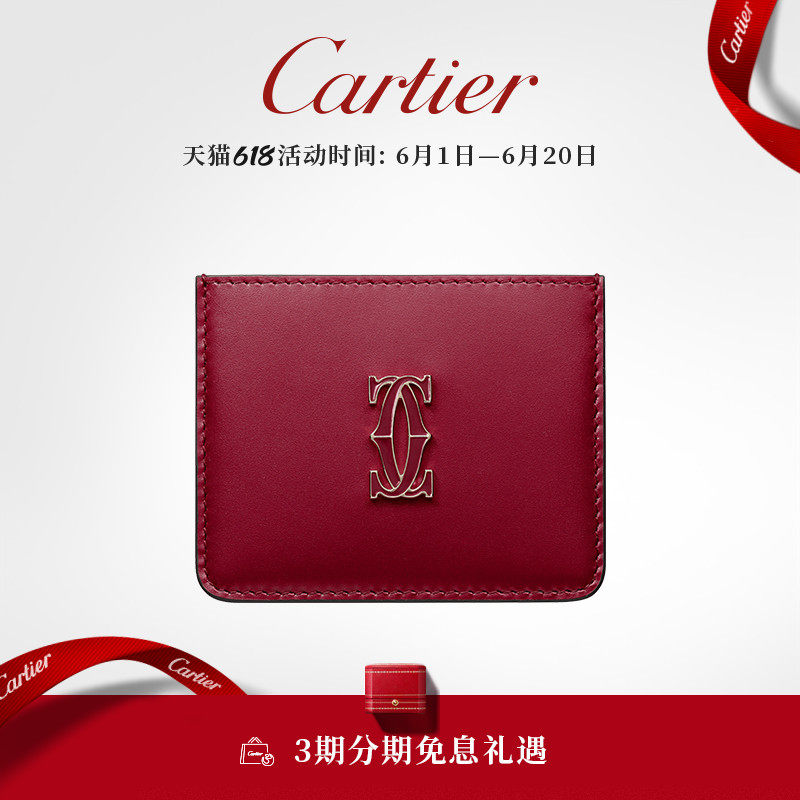 Cartier卡地亚Double C系列单卡皮夹 小牛皮珐琅饰面卡包