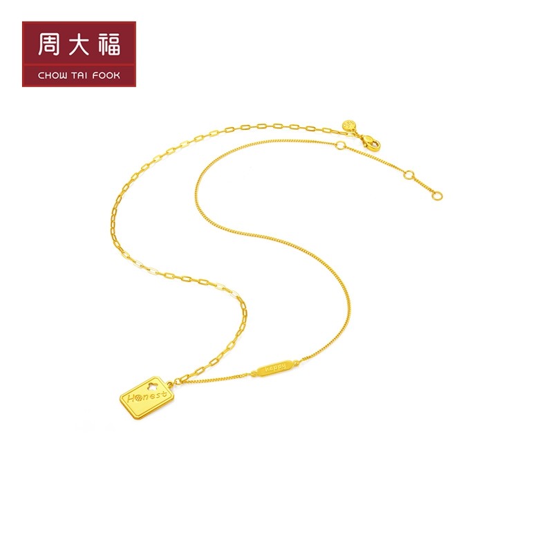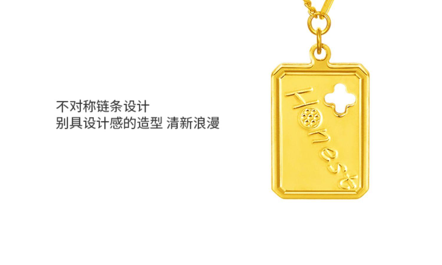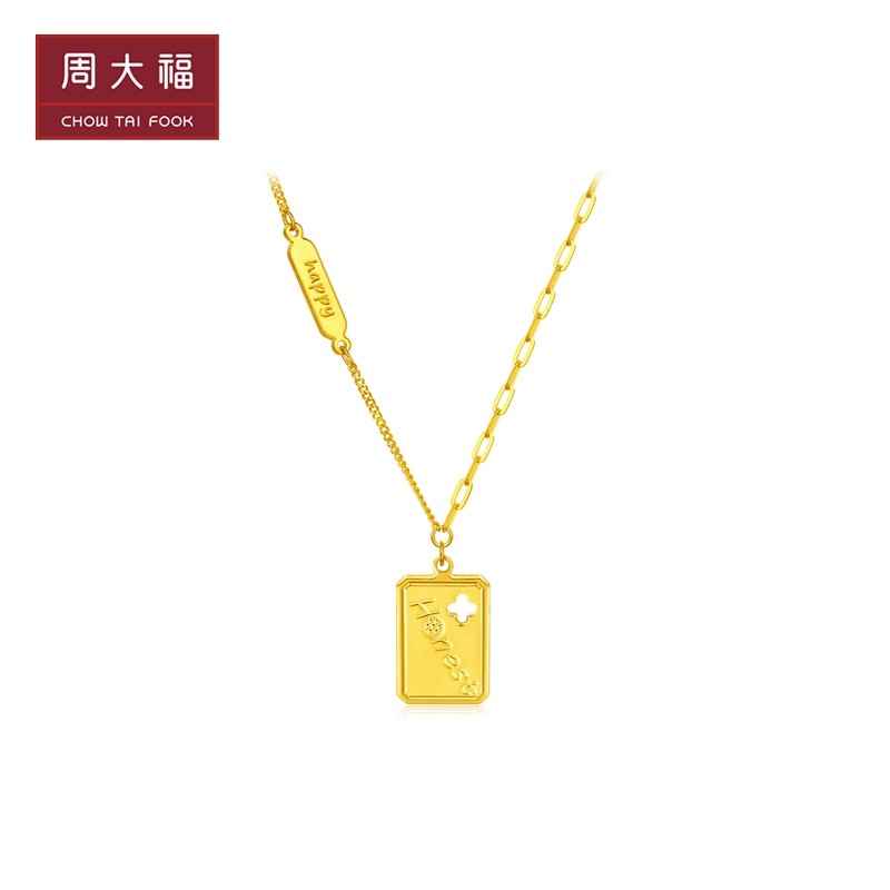 新款 周大福珠宝首饰方牌字母镂空足金黄金项链吊坠计价F224796