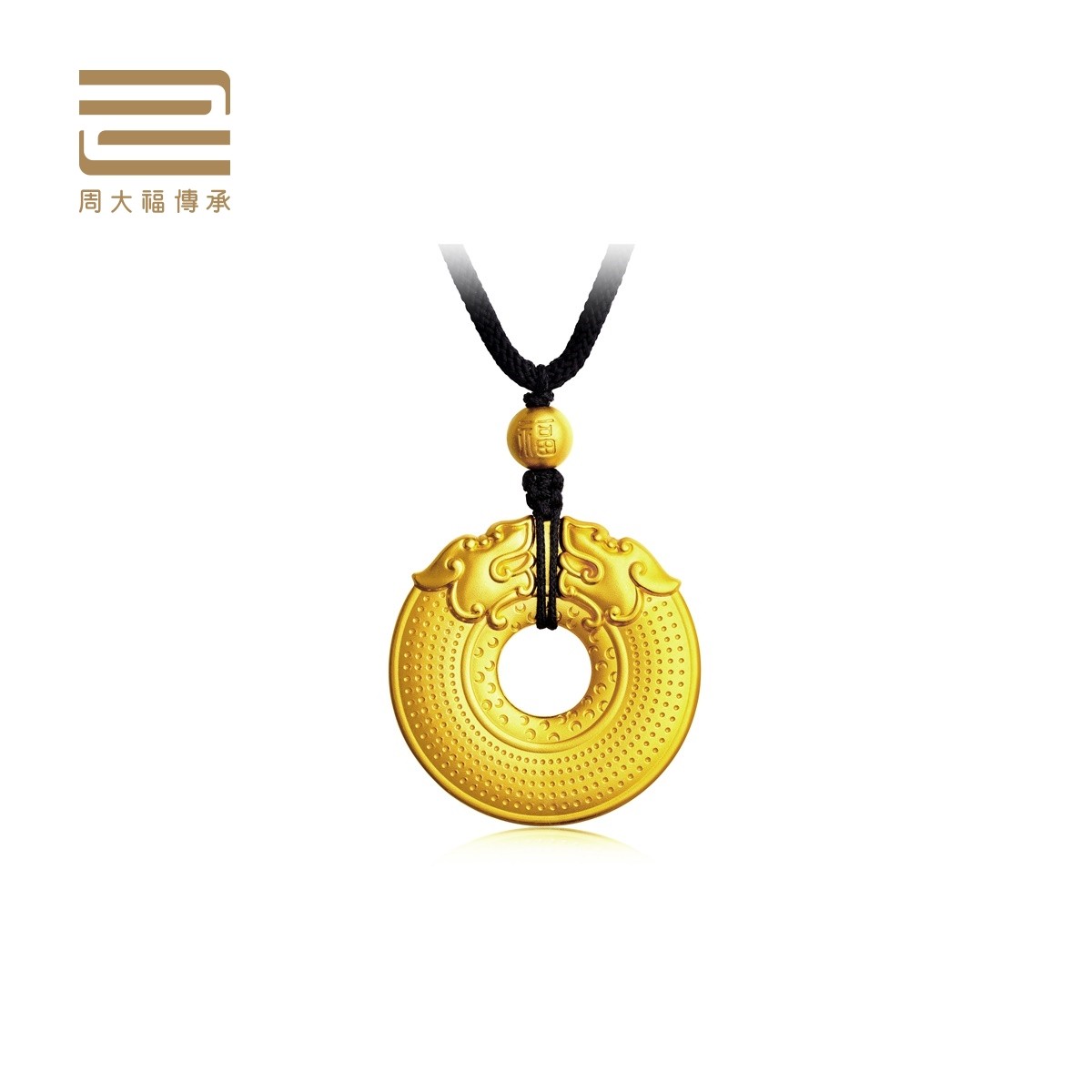新款 周大福传承系列双龙平安扣玉环足金黄金吊坠计价F223694