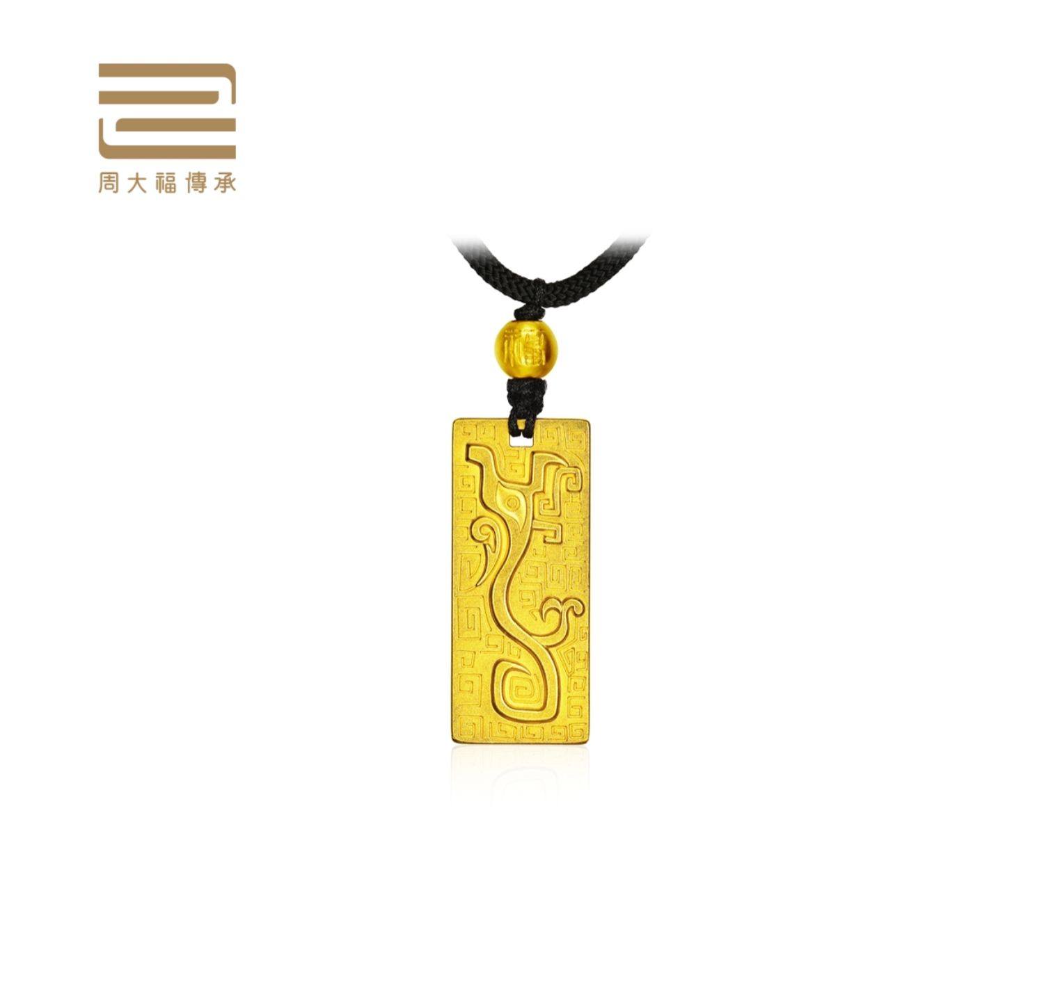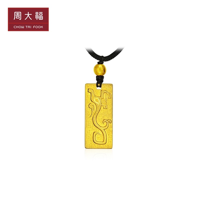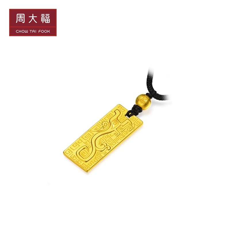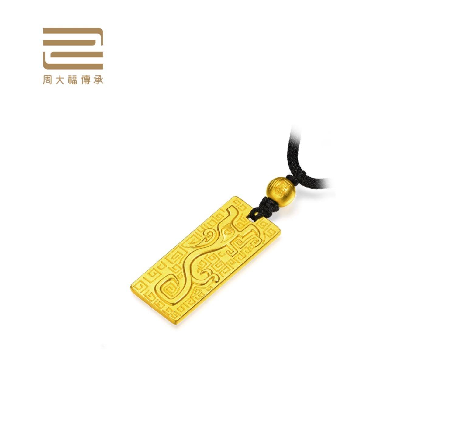 新款 周大福传承系列扶摇神兽图腾足金黄金吊坠计价F223655