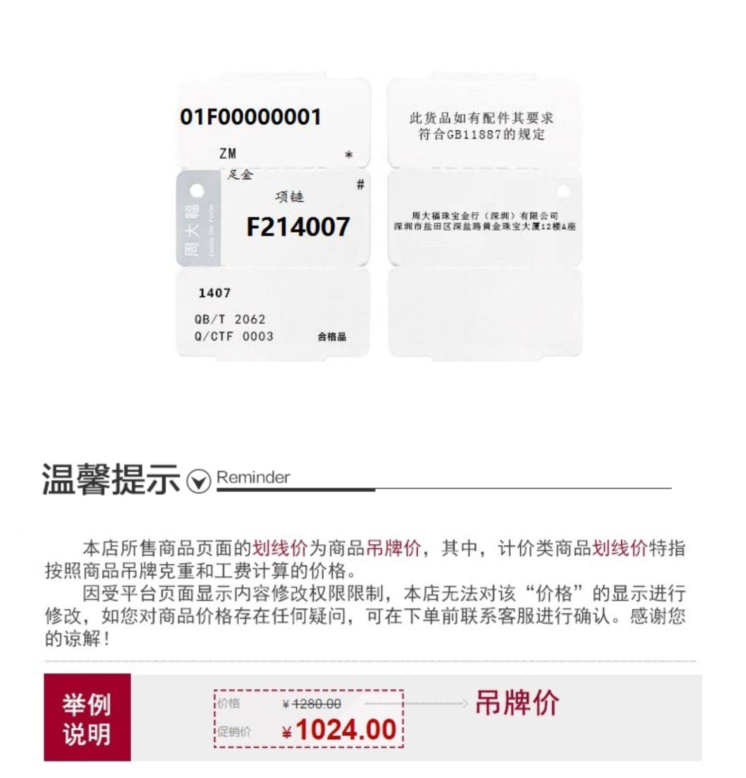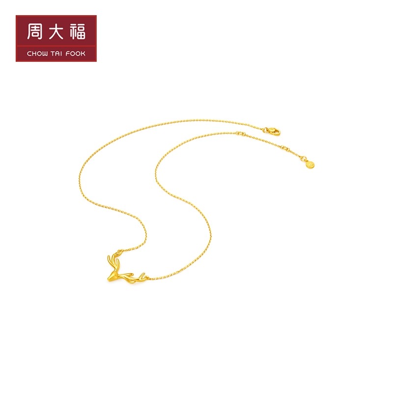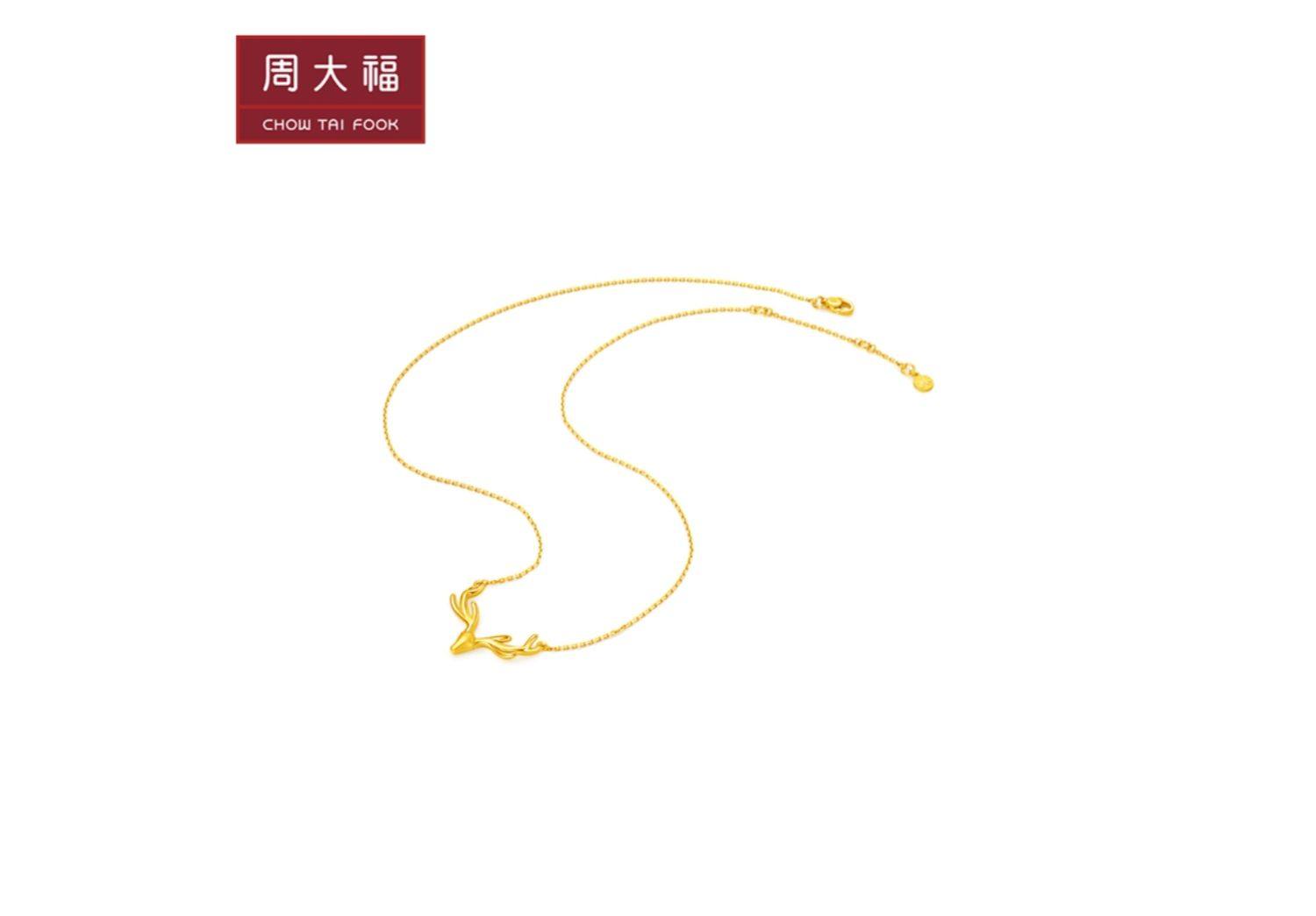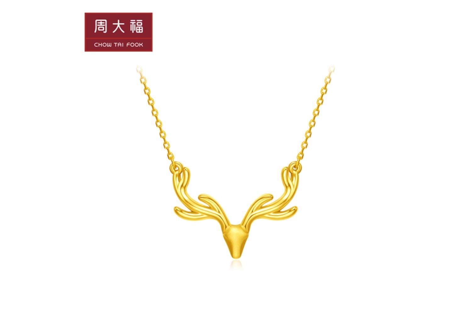 新款 周大福珠宝首饰鹿角足金黄金项链吊坠计价F214007