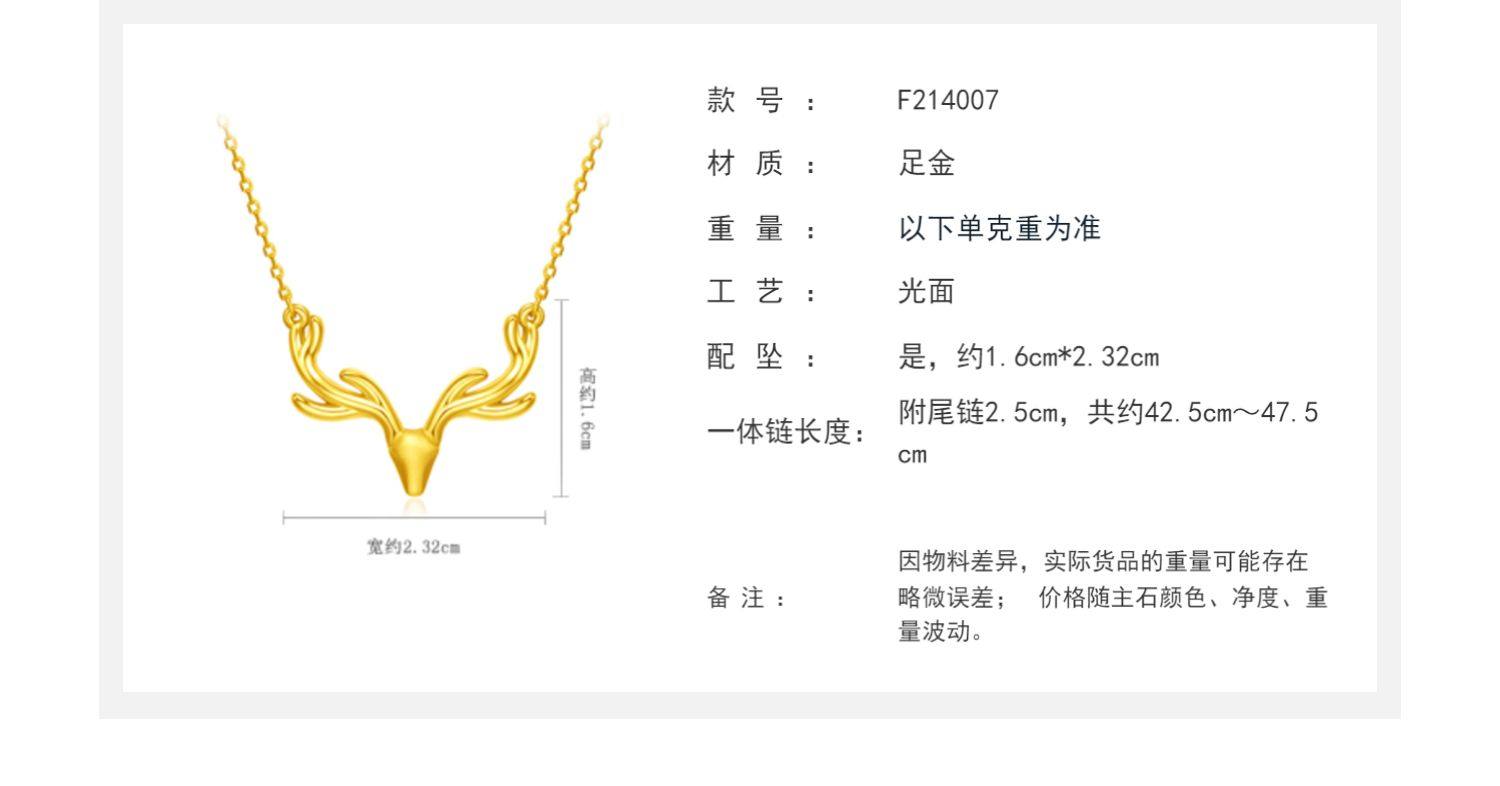 首页 > 周大福专区 > 周大福 > 新款 周大福珠宝首饰鹿角足金黄金项链吊坠计价F214007