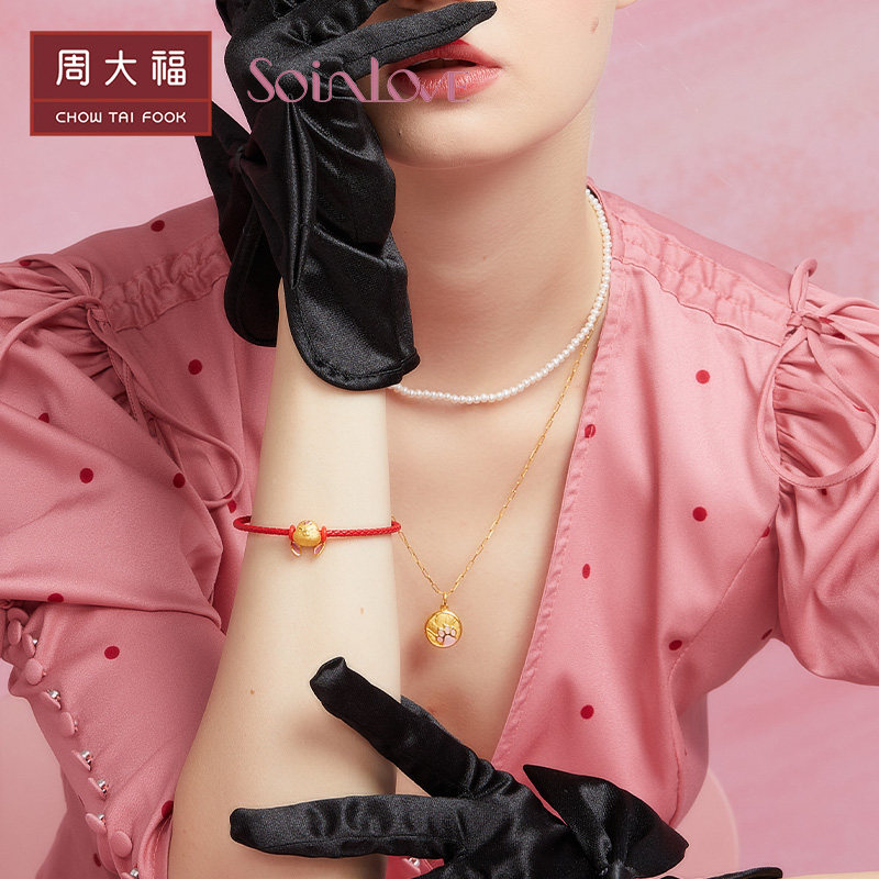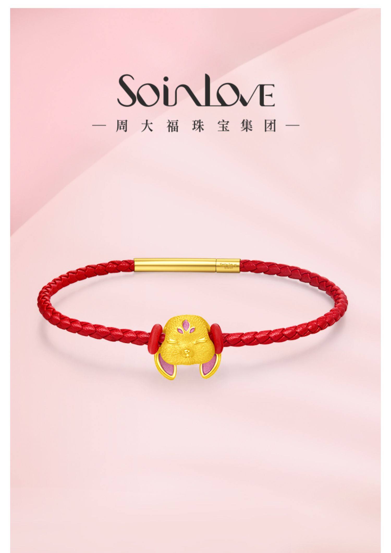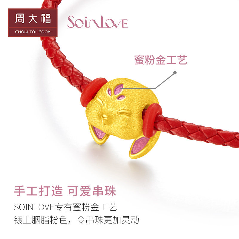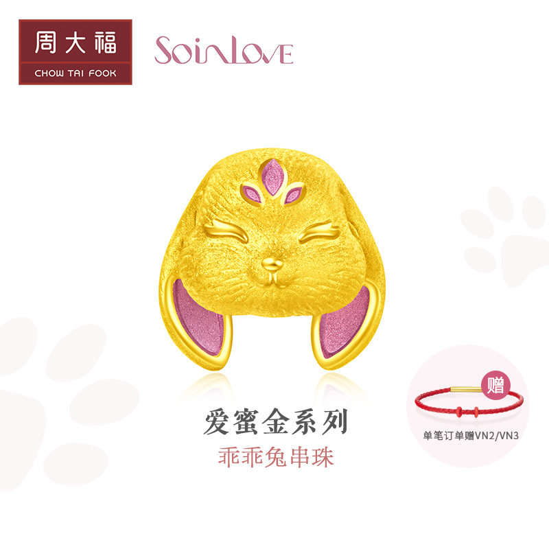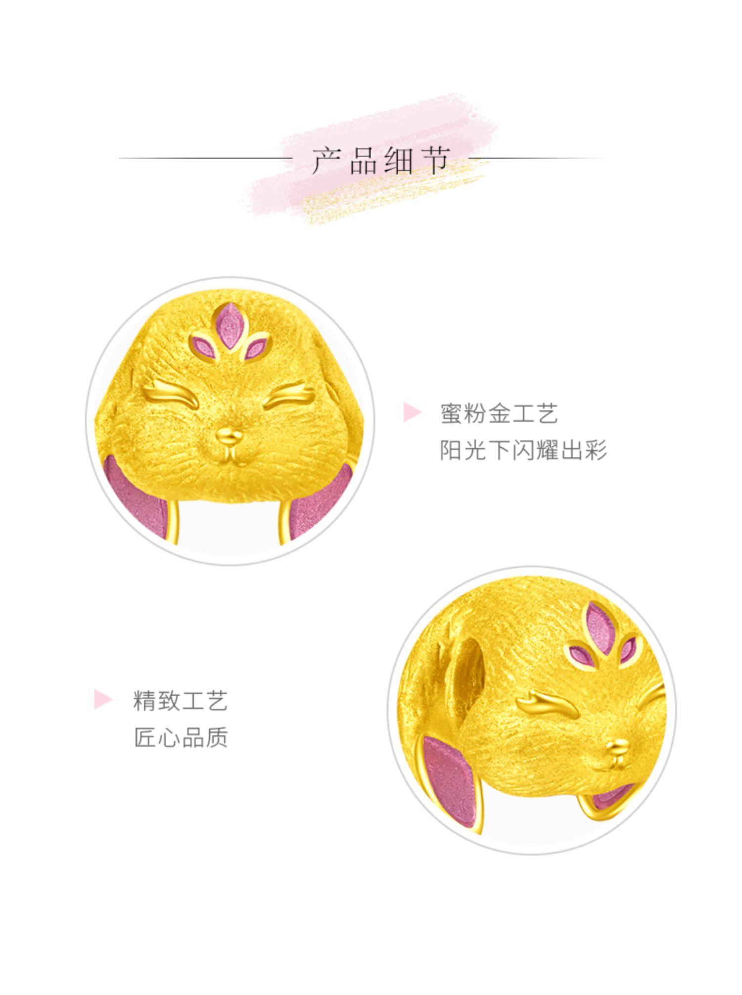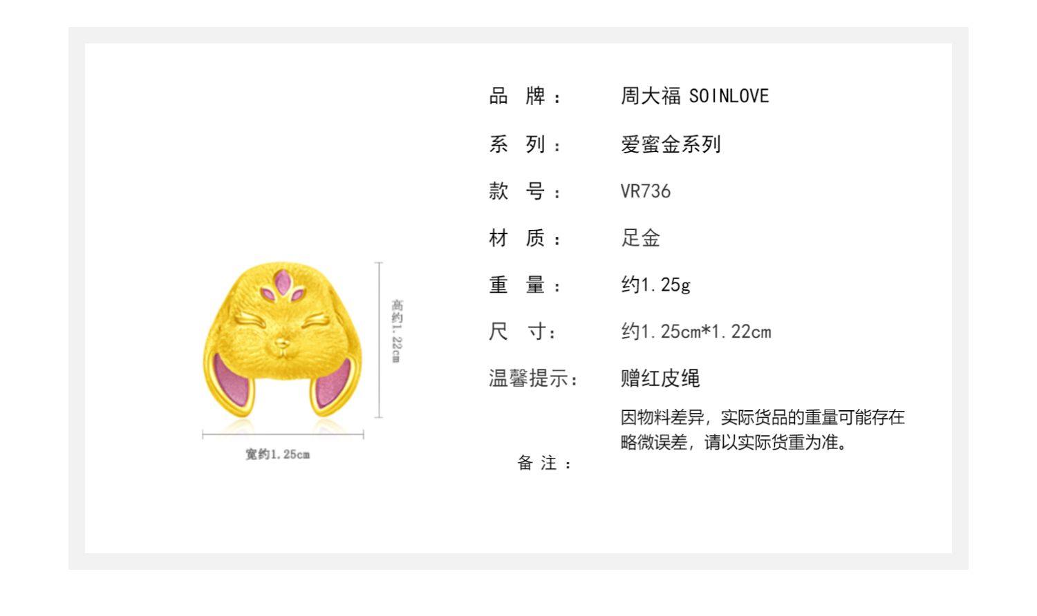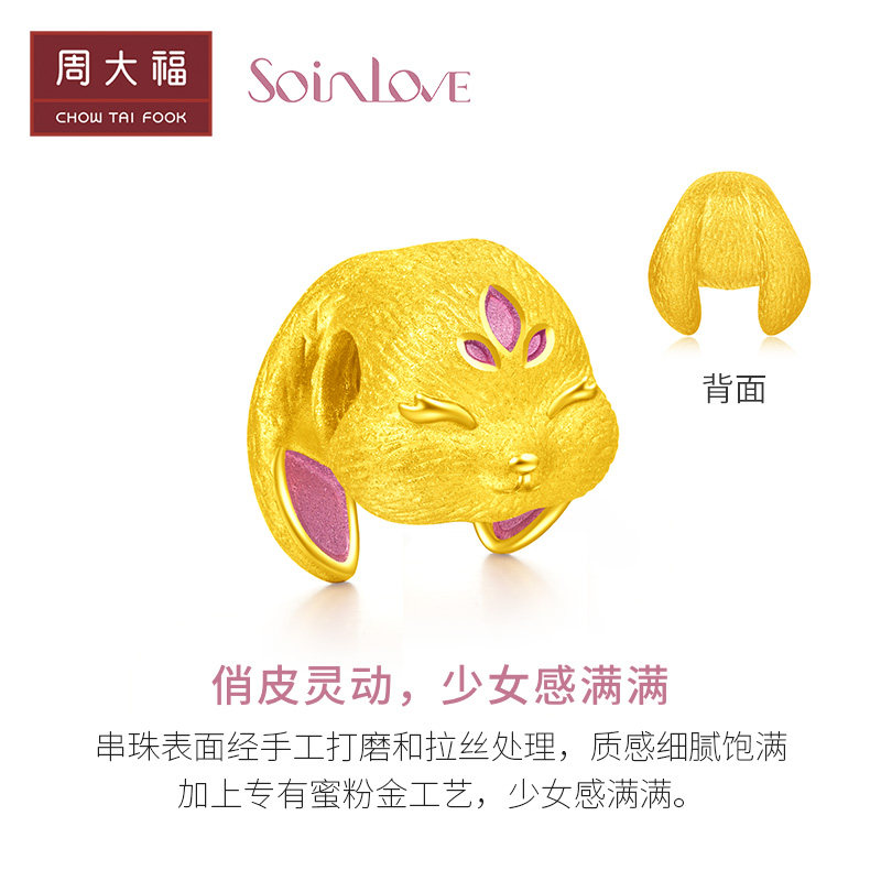 周大福SOINLOVE爱蜜金系列双面女孩乖乖兔足金黄金吊坠VR736