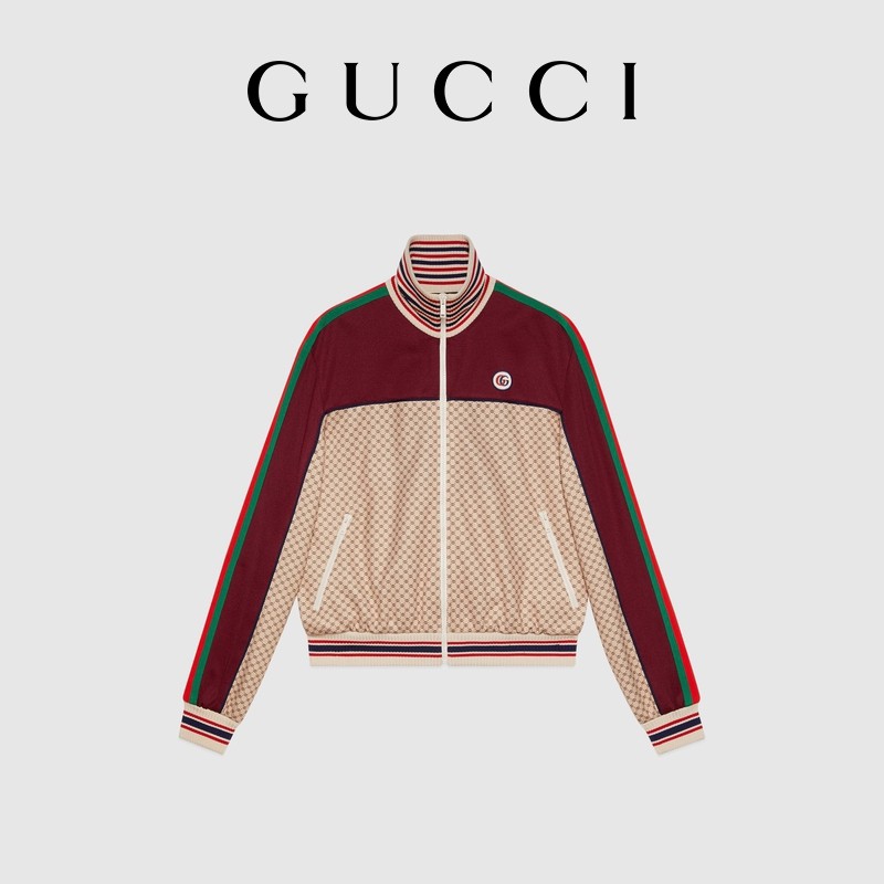 [新品]GUCCI古驰互扣式双G印花针织夹克
