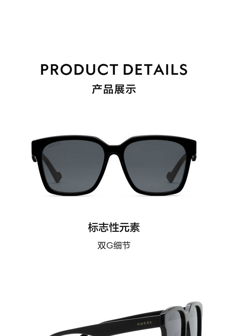 [新品]GUCCI古驰贴合设计方形镜框太阳眼镜