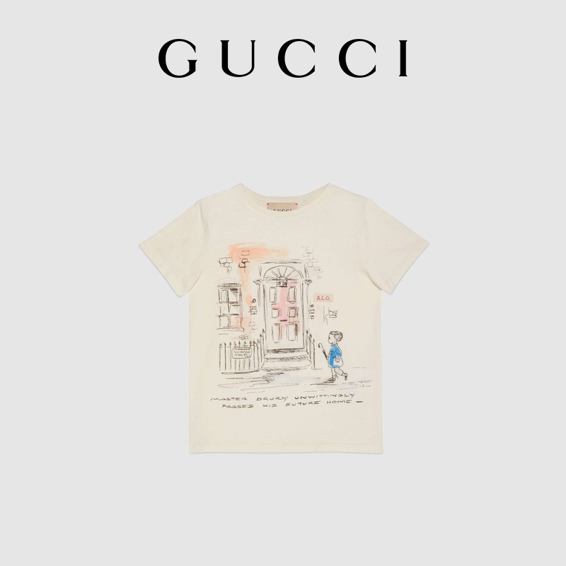 [新品]GUCCI古驰儿童插画印花棉布T恤